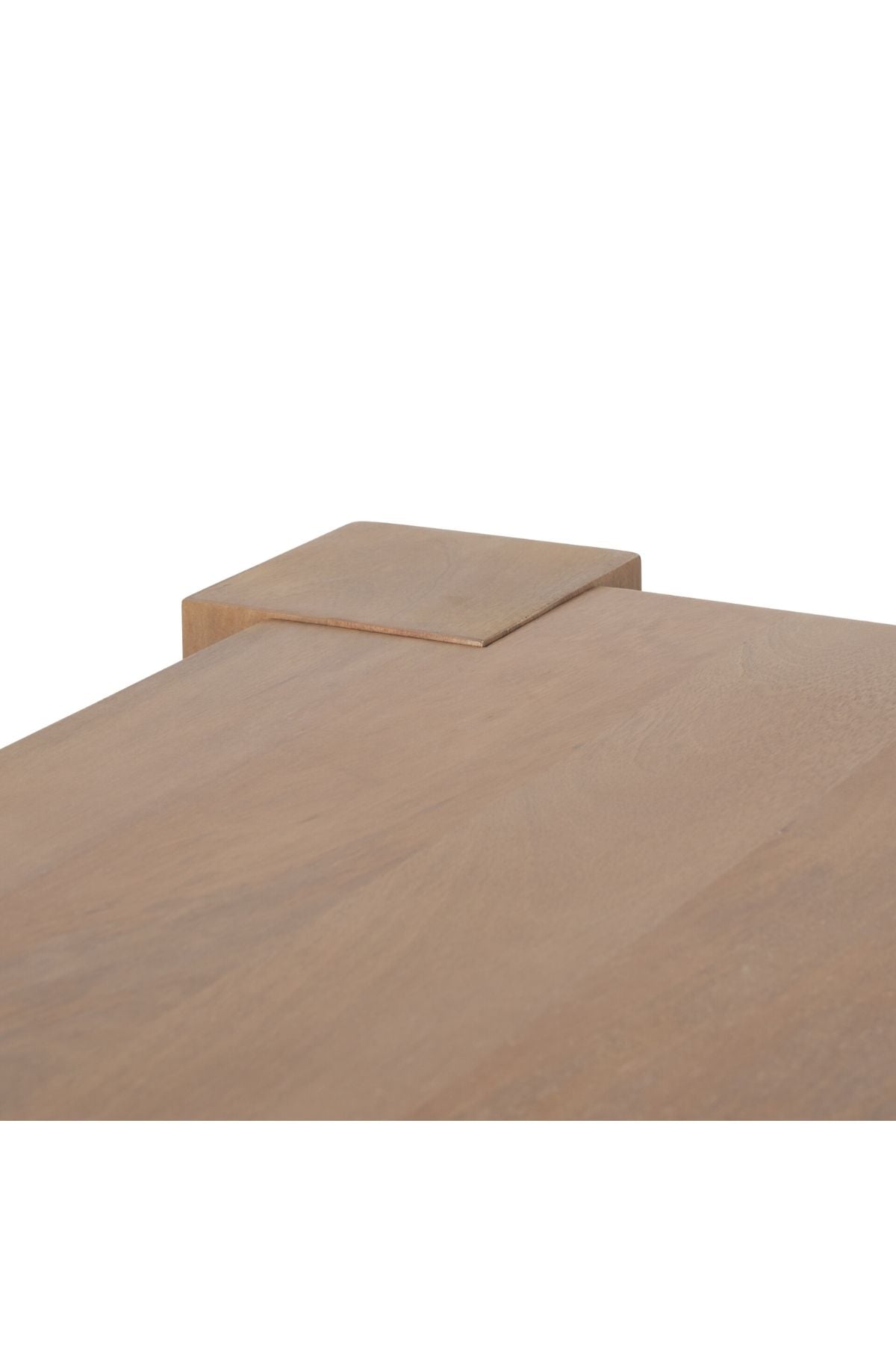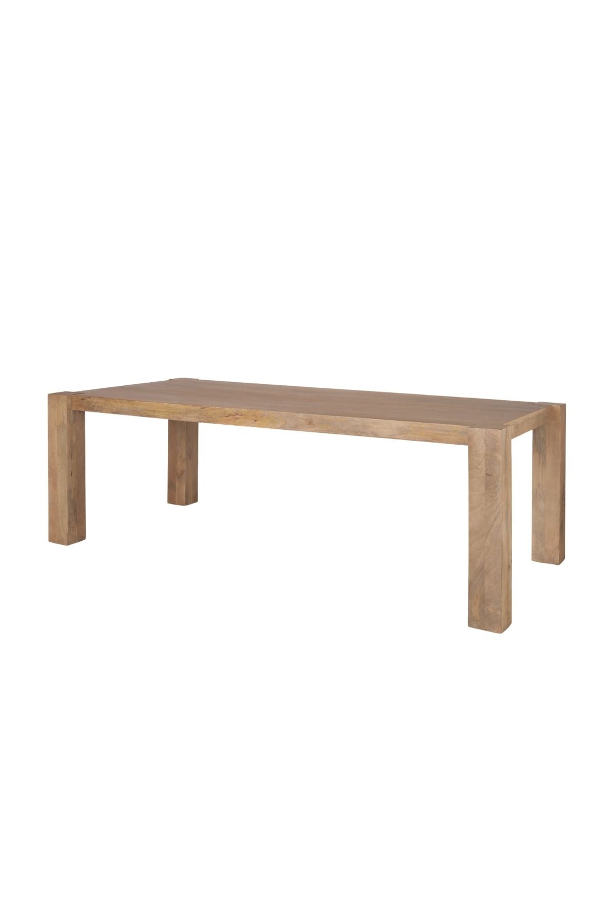 Meet the Beth Dining Table. Skillfully constructed from durable mango wood and features a square tabletop supported by four square post-like legs. Beth is enriched with a gentle light brown stain and complemented by subtle white pickling.