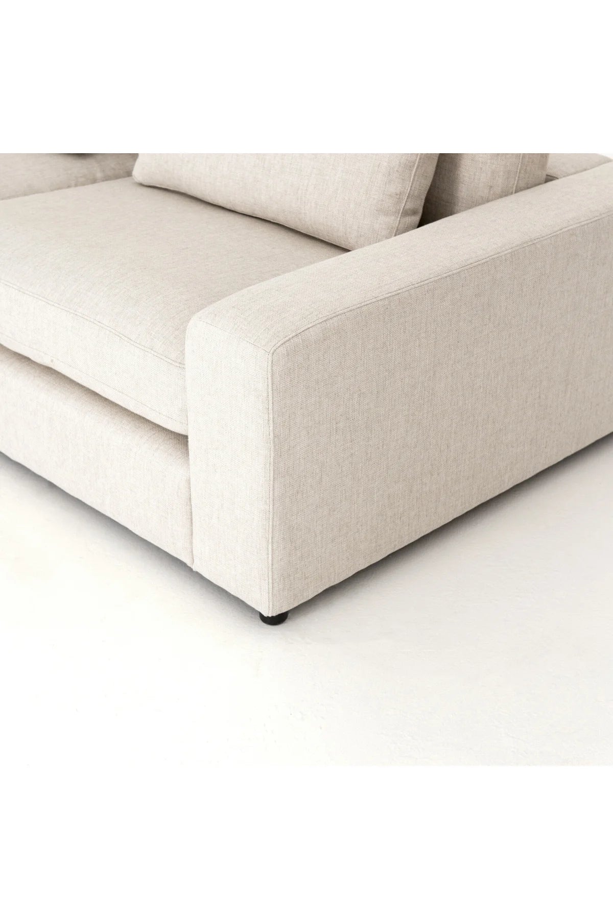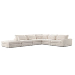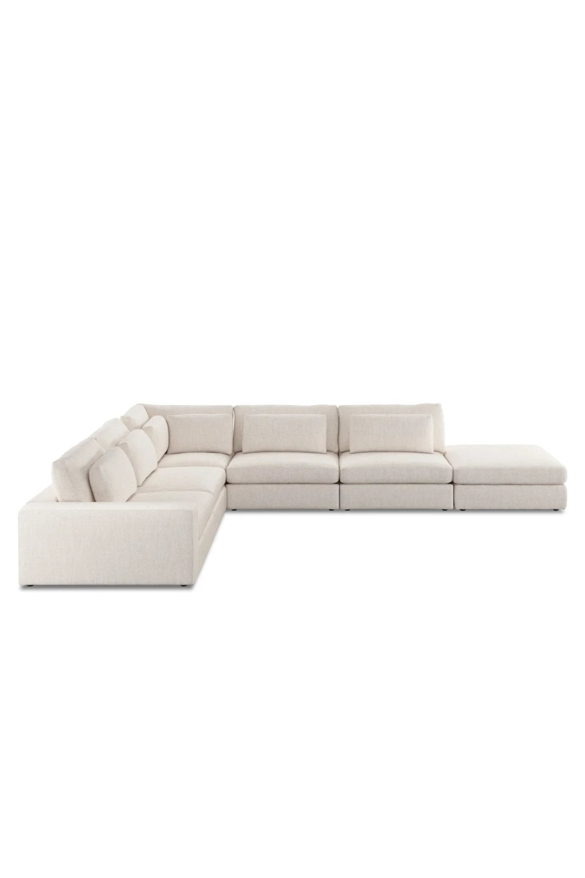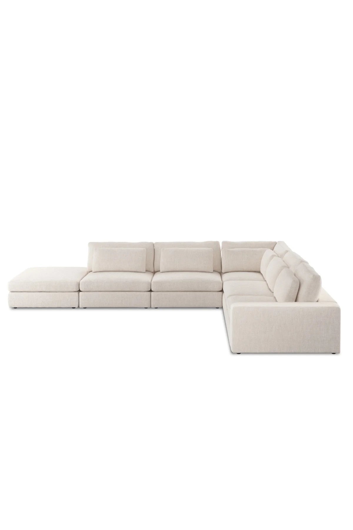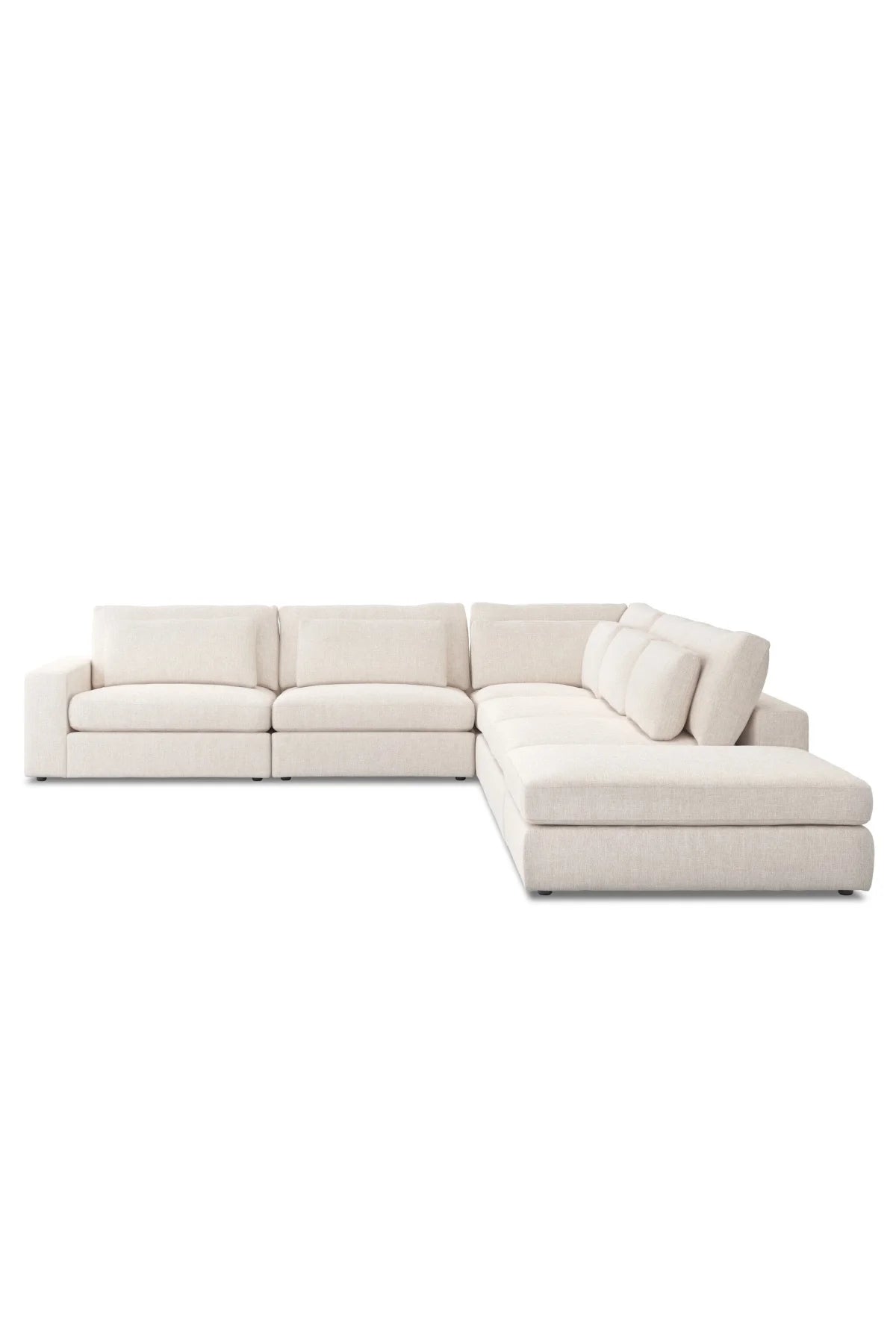 Meet the Bloor 5-Piece Sectional. Deep, low seating says relax. A flexible, one-armed chair is covered in an inviting, durable light grey woven fabric. Modular components allow the perfect combination for any space.