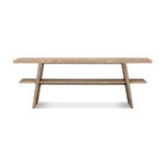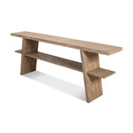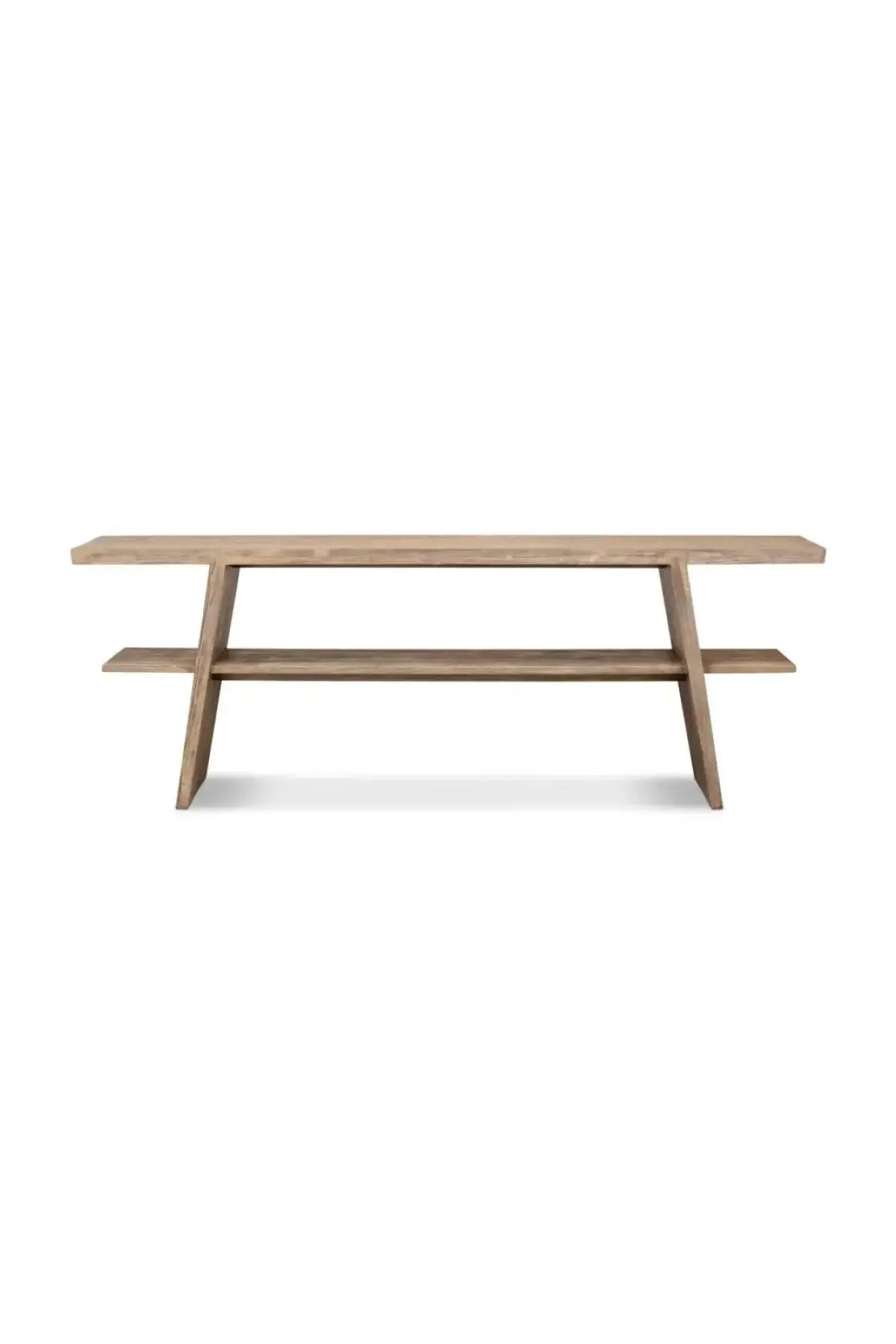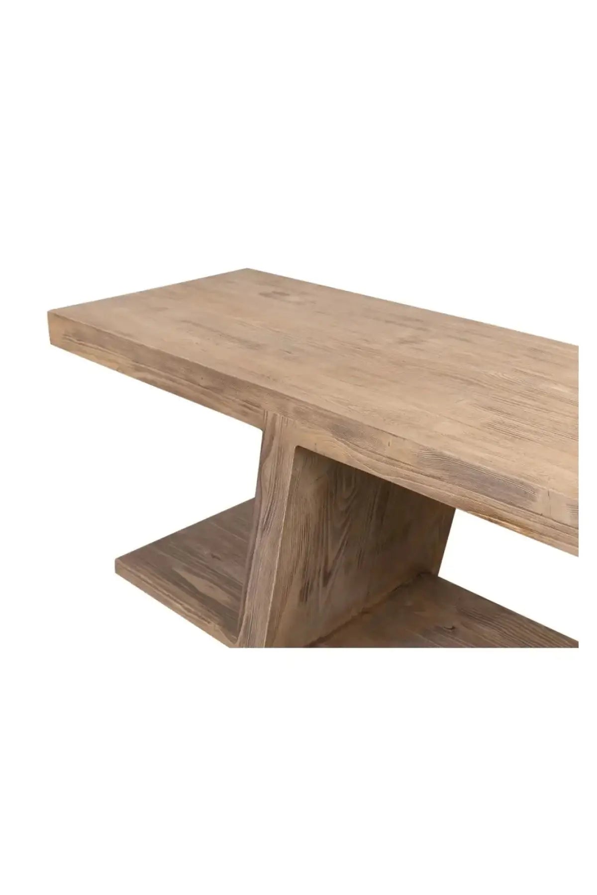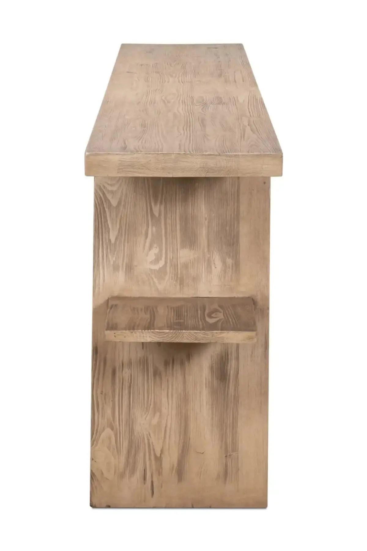 Meet the Bodega Vineyards Console Table. All in the mix: pine console combining grand scale with a geometric design and flaky pine finish makes it the perfect perch for books, accents, lamps or a glass of wine.