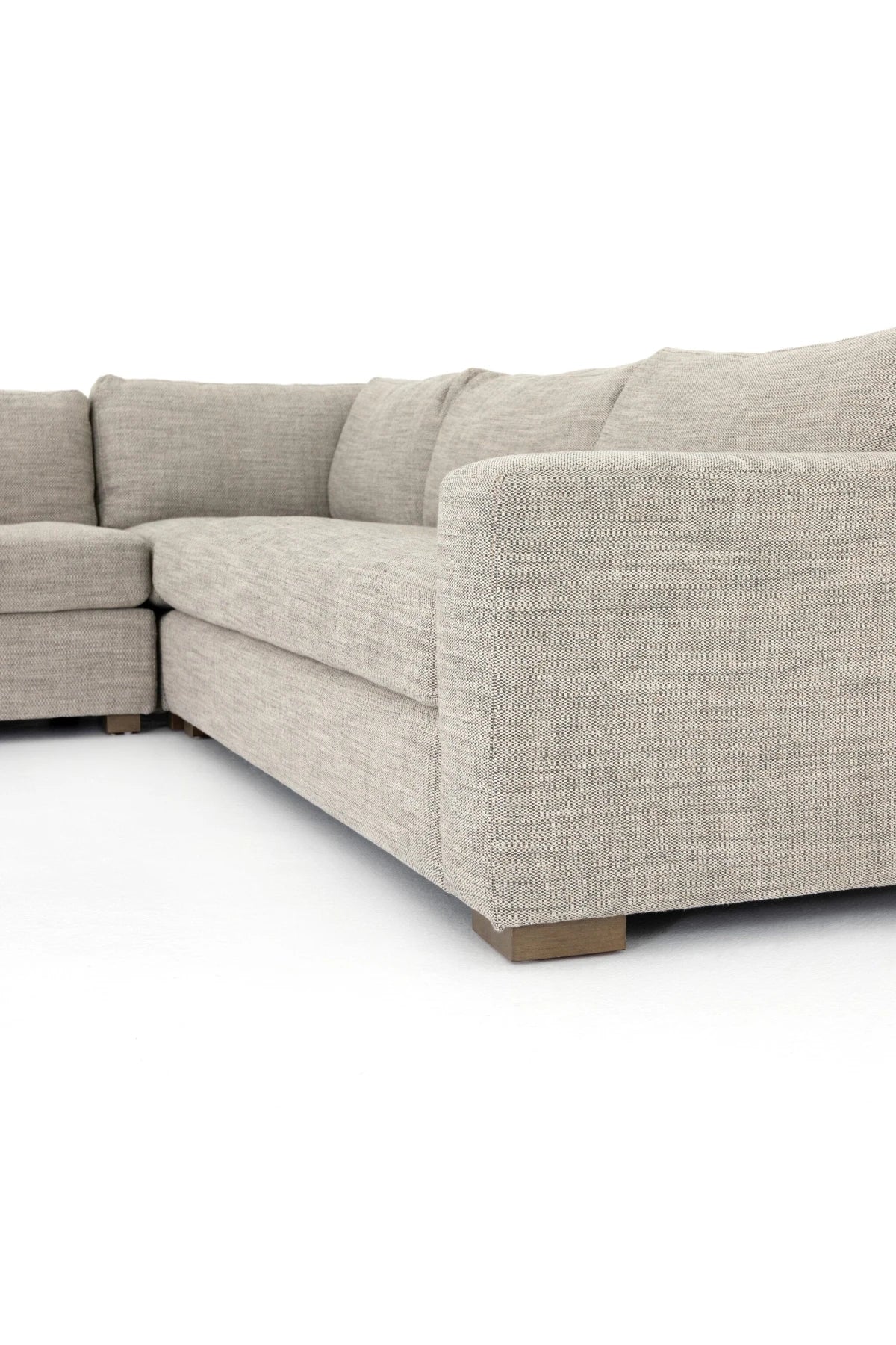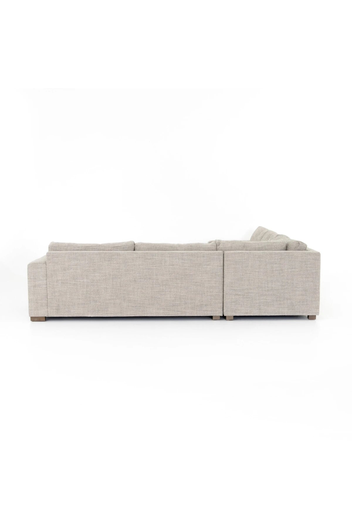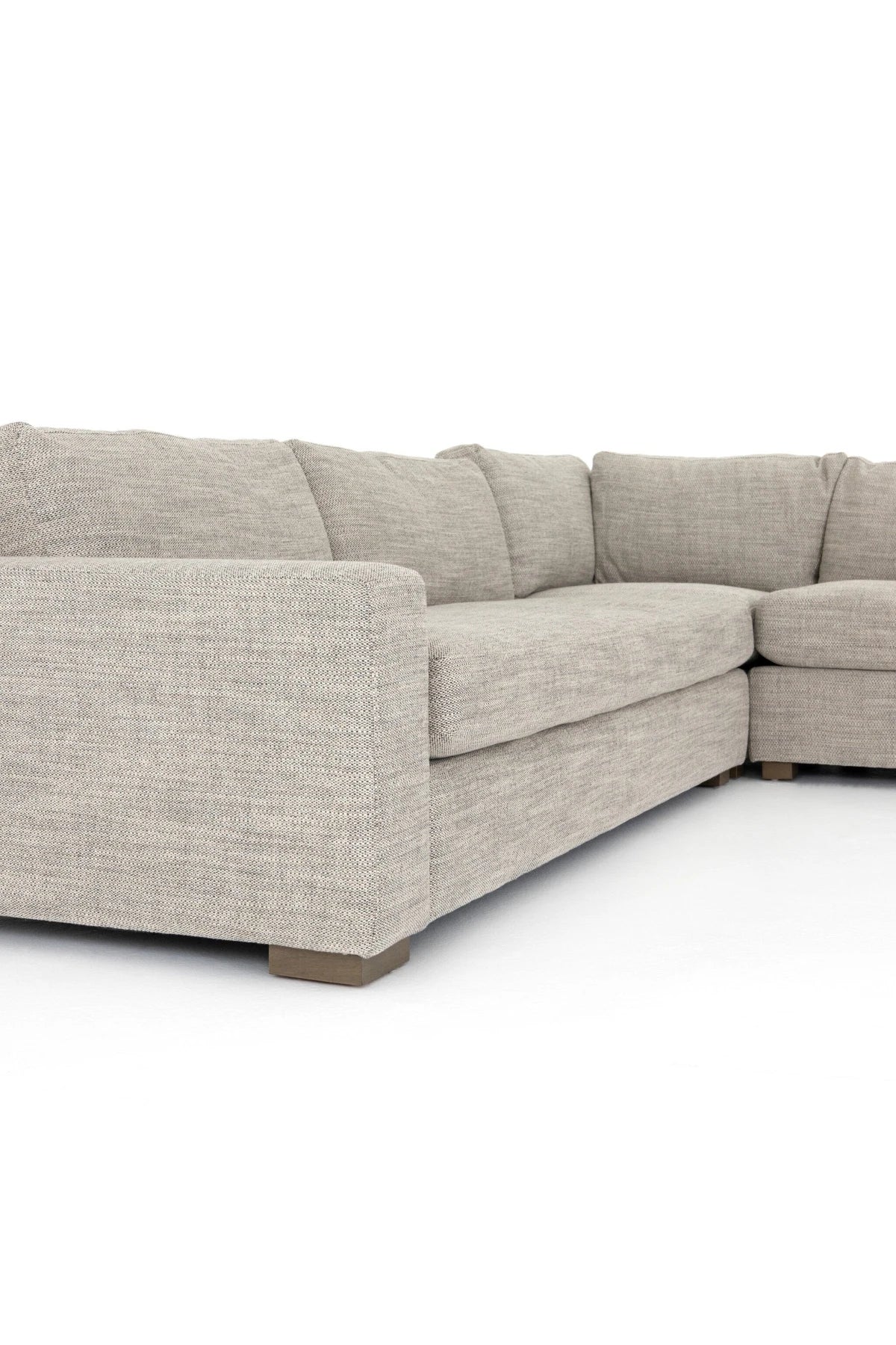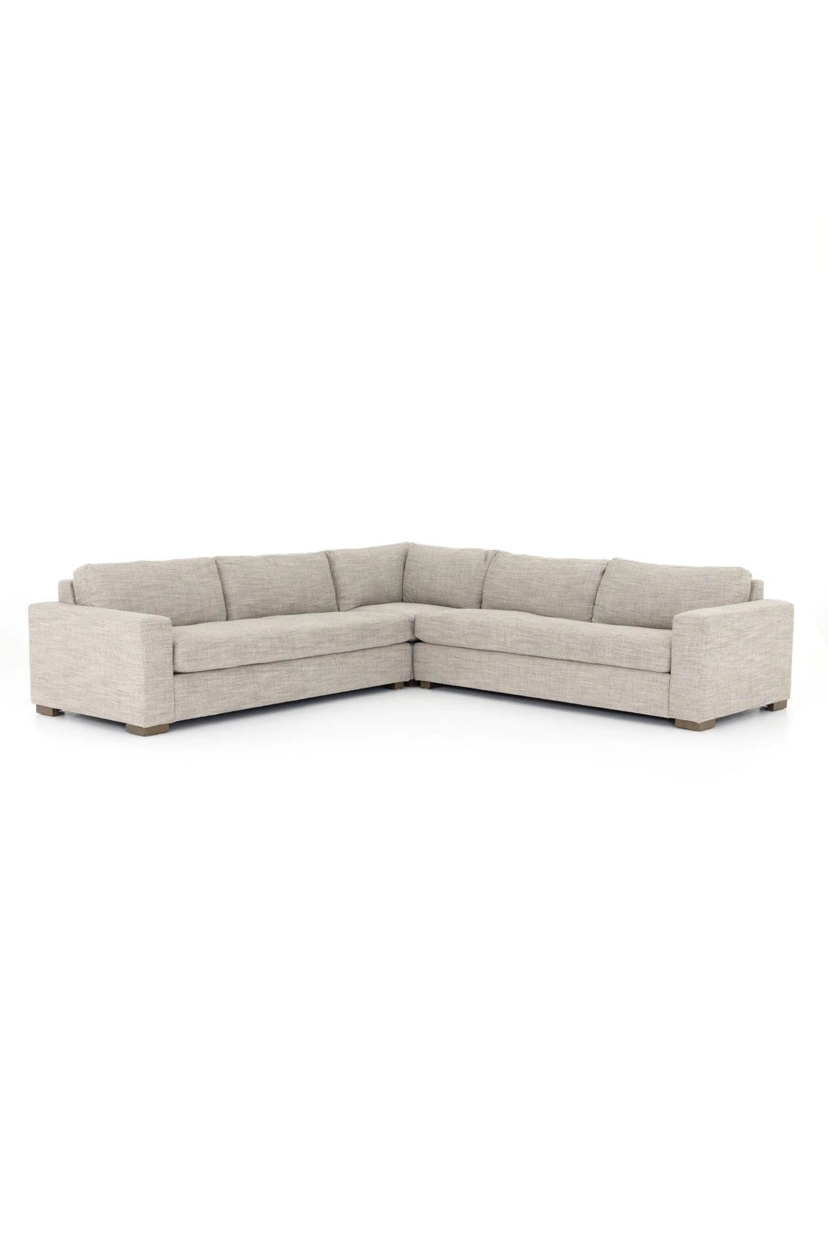 Meet the Boone 3-Piece Sectional. Sink-right-in seating ideal for daily lounging, with grey performance-grade upholstery. Block arms hold invitingly ample feather-and-down cushioning. Stylishly oversized for cool lounging comfort.