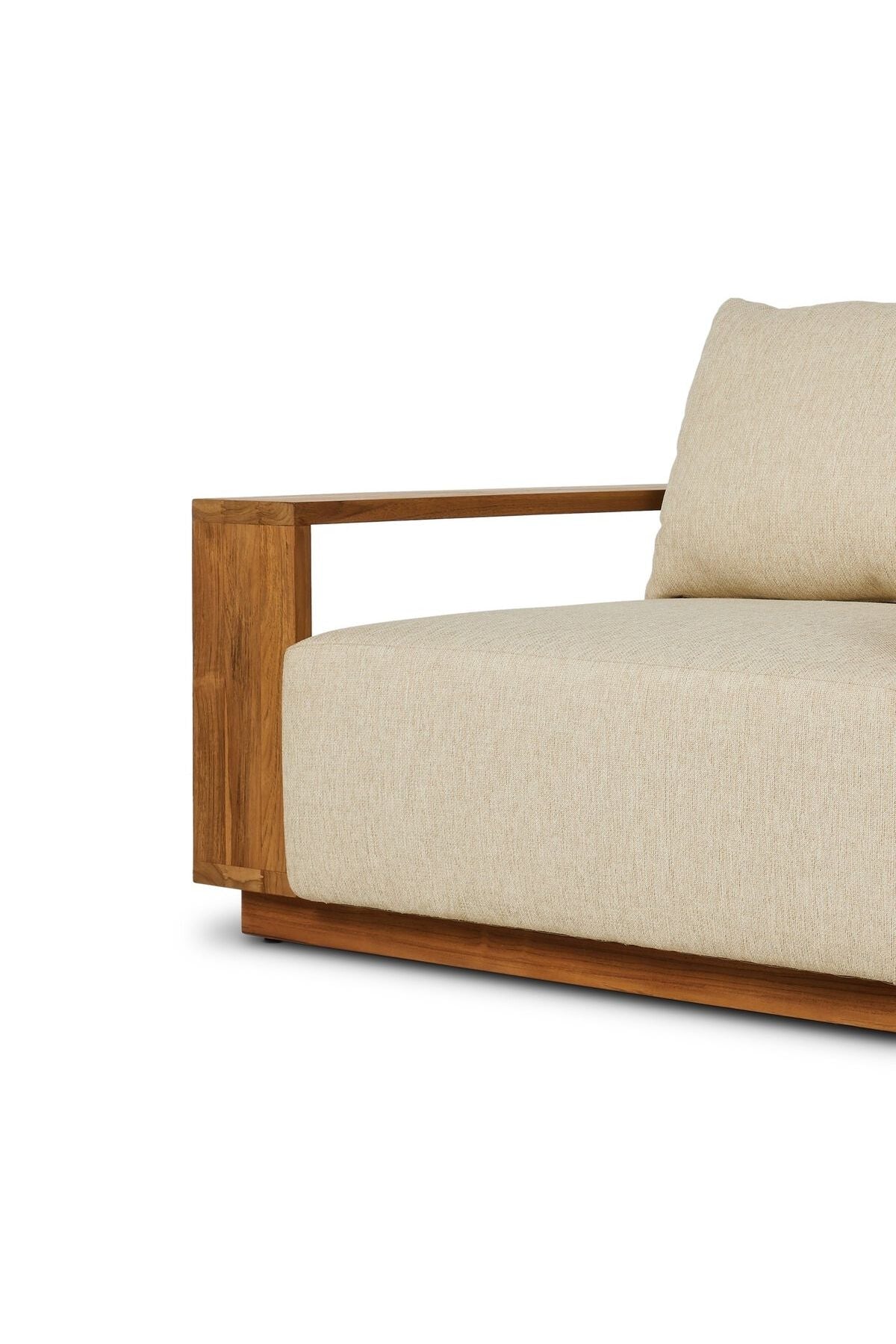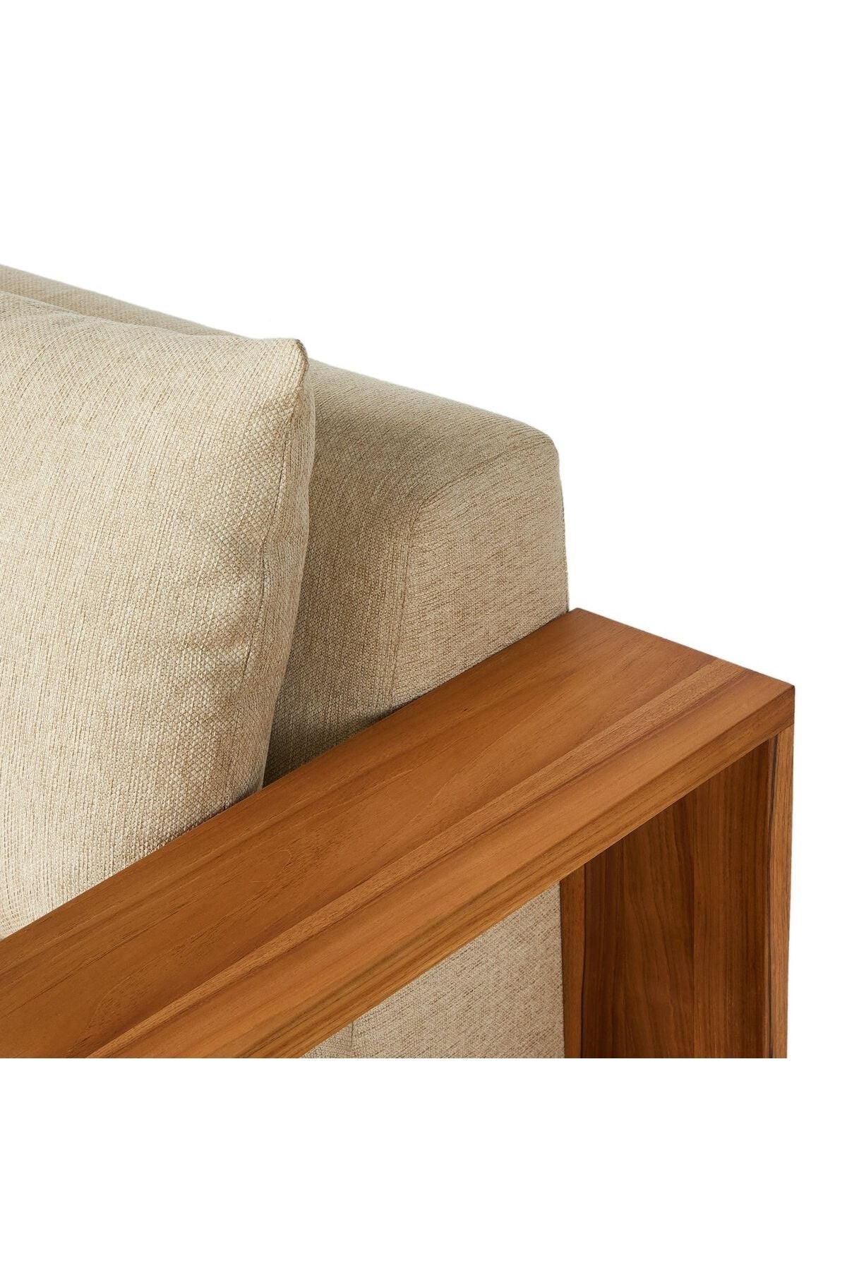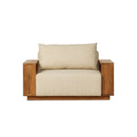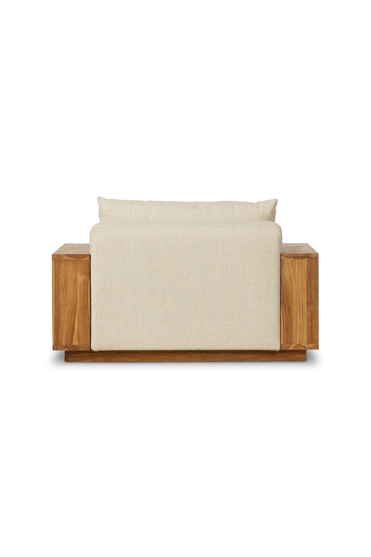 The Branford Outdoor Chair is grand scale sophistication. This wide format outdoor chair features heavy teak framing and upholstery with an inviting sit. Cover or store indoors during inclement weather and when not in use.