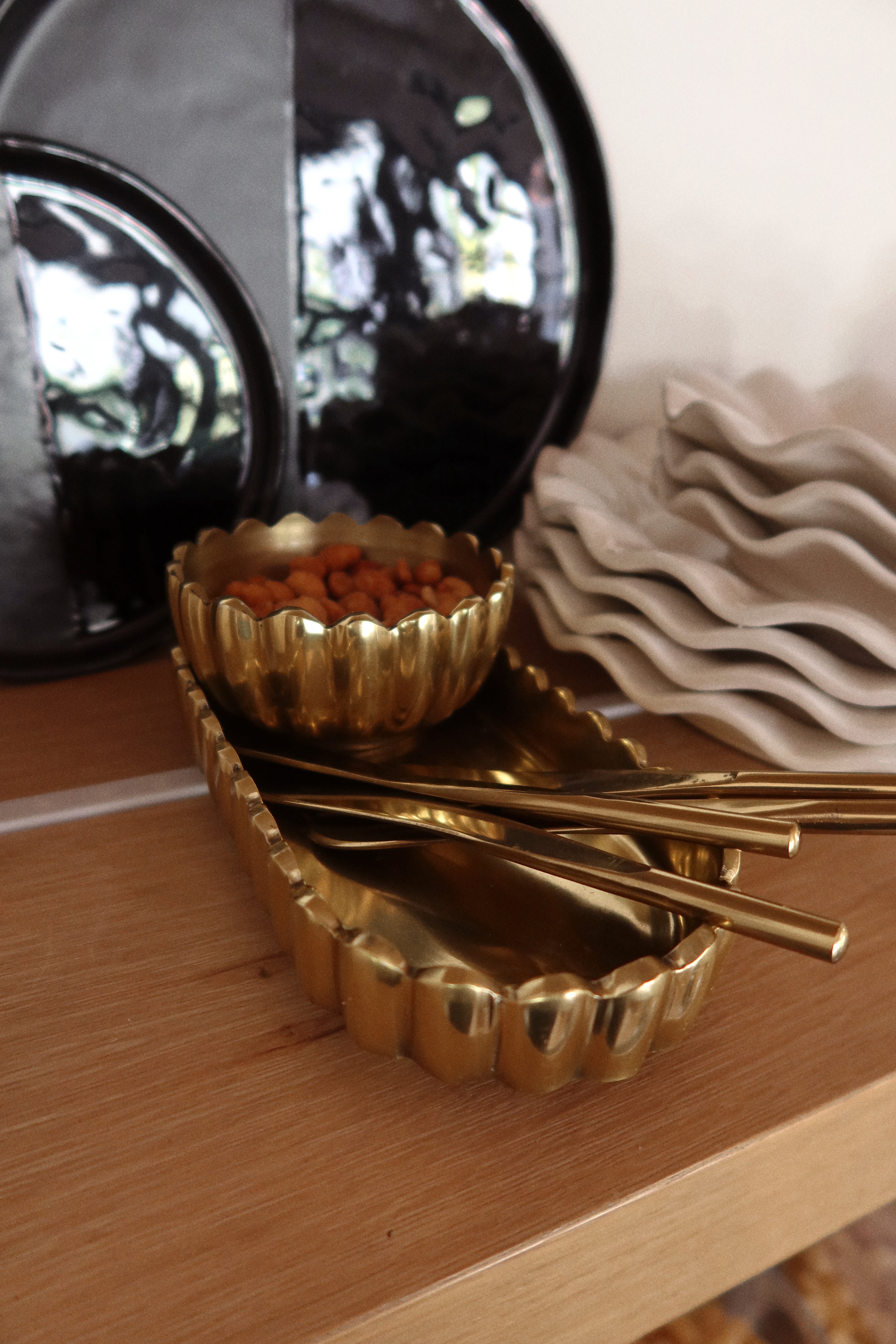 The cutest set that everyone NEEDS! The Brenda Serving Tray + Bowls are both sleek + perfectly suited for daily use. We love this to hold peanuts, olives or toothpicks while serving up happy hour. An easy styling addition that is also functional!