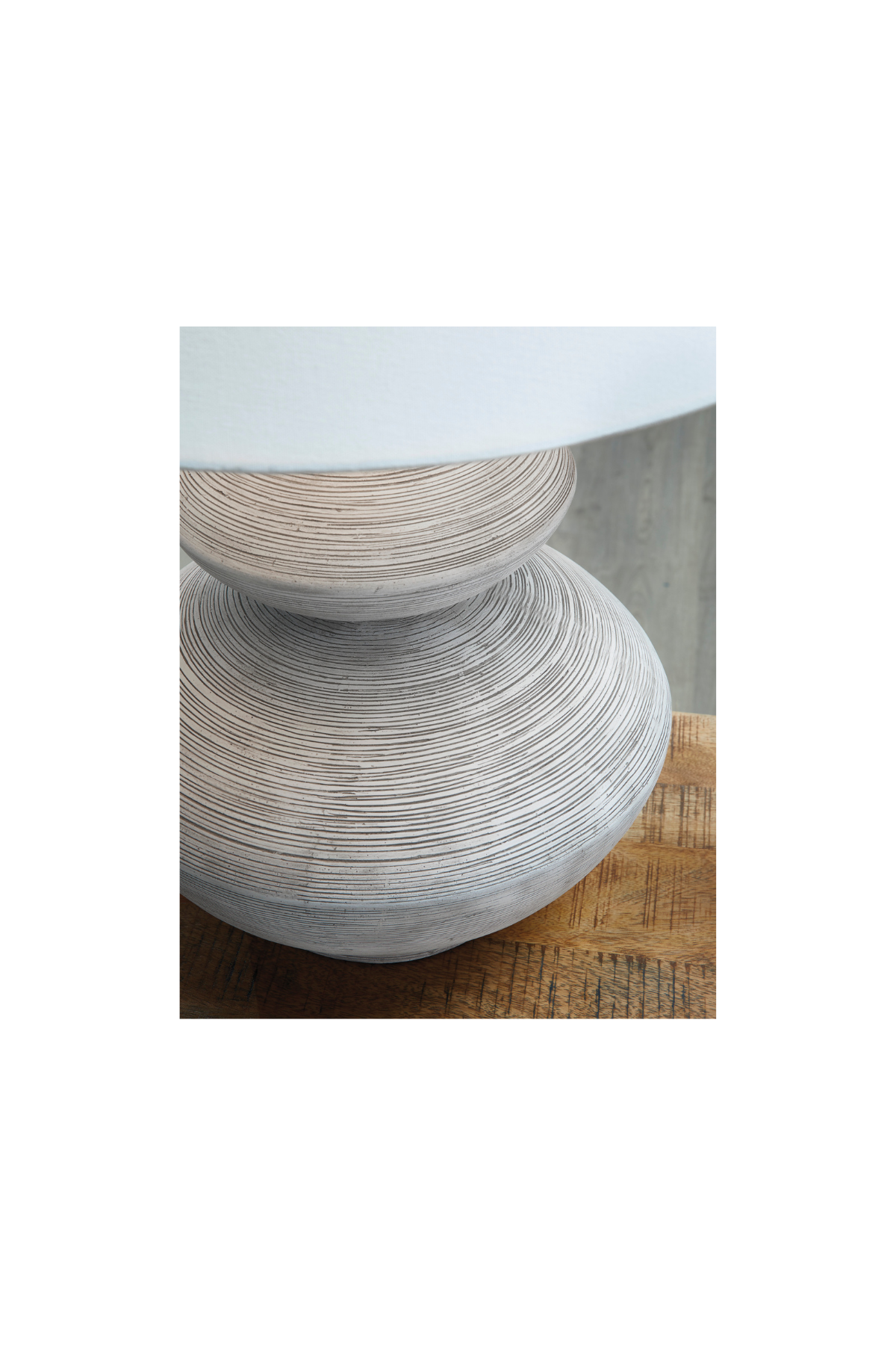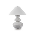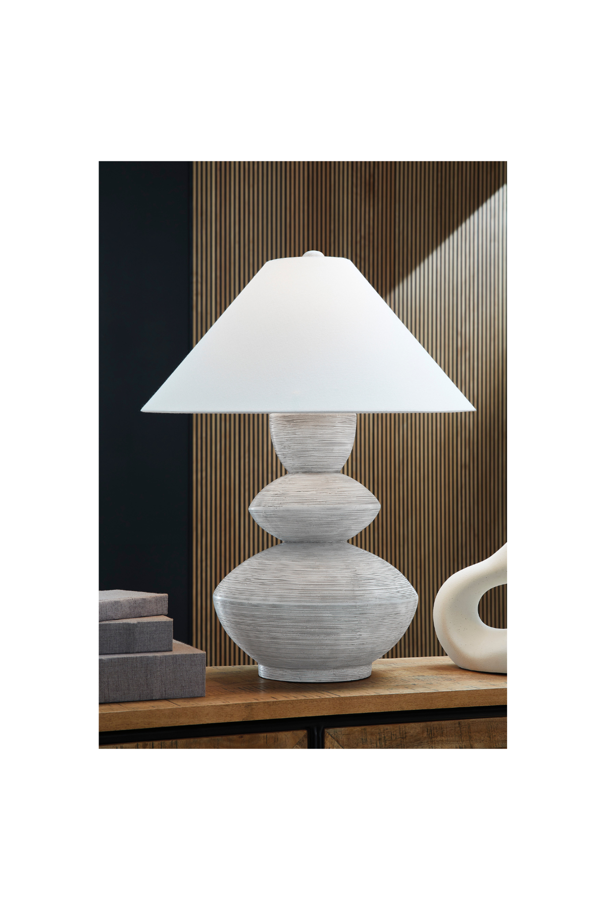 Meet the Brickdon Table Lamp. Inspired by a classic pottery form, this triple gourd table lamp lightens the mood with a sense of ease and organic style. A distressed white finish adds a layer of interest to the base. Use it in pairs for double the impact in a bedroom, living area or entryway. Bulb(s) not included.