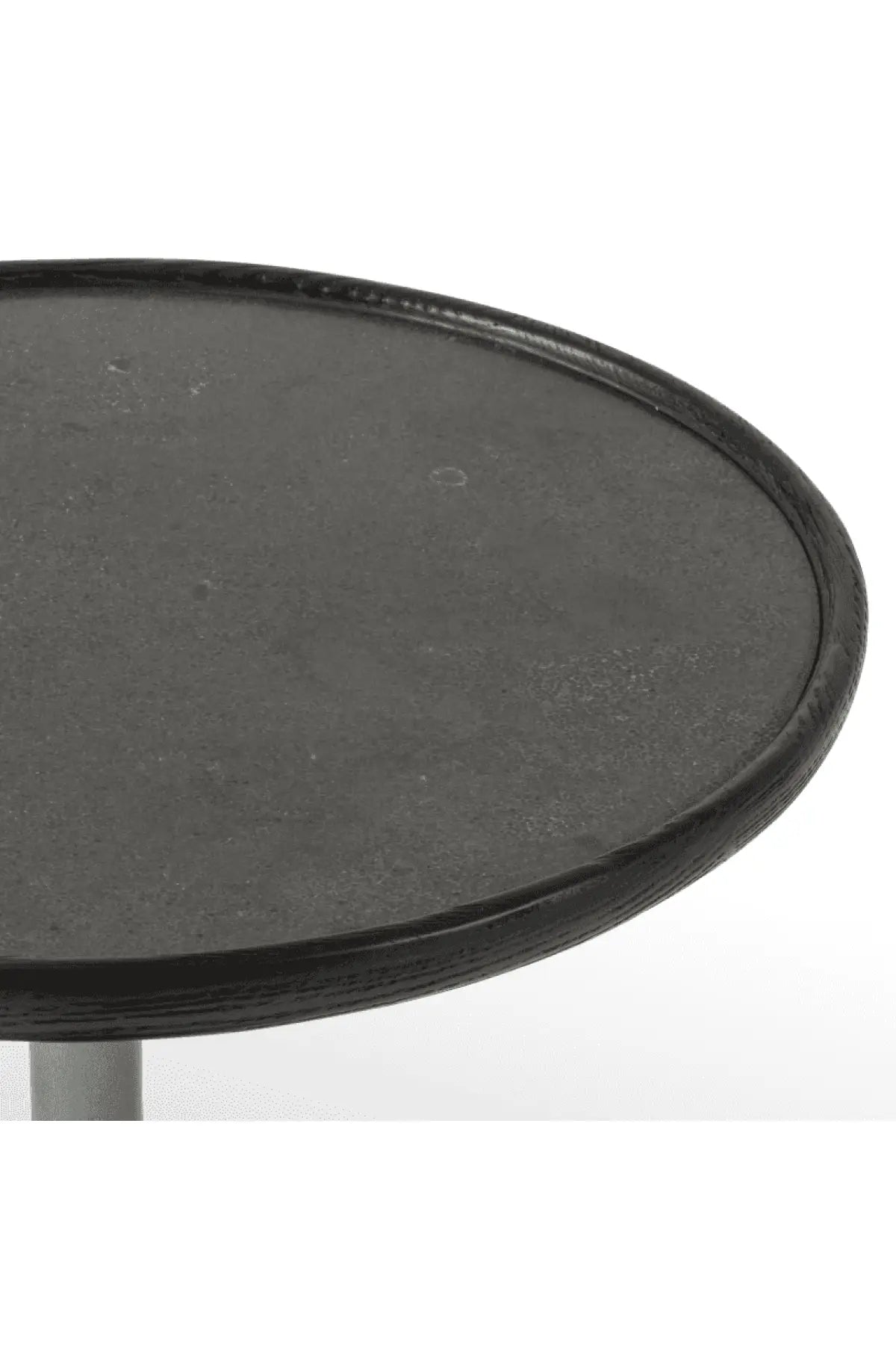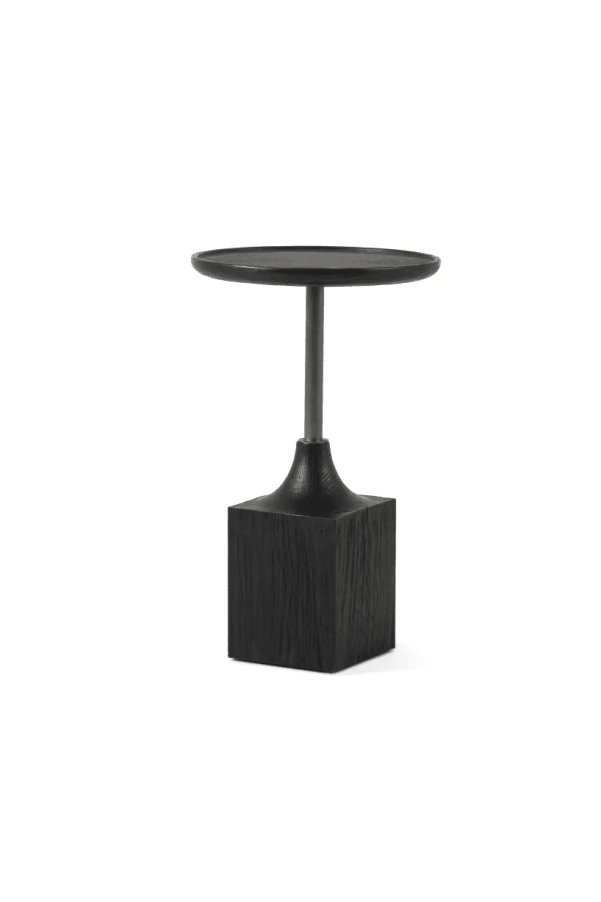 Mix-in something modern with the Brunswick End Table. A shapely, over-scaled oak base tapers into a slim iron neck, with a rounded bluestone top for a sophisticated finishing touch.
