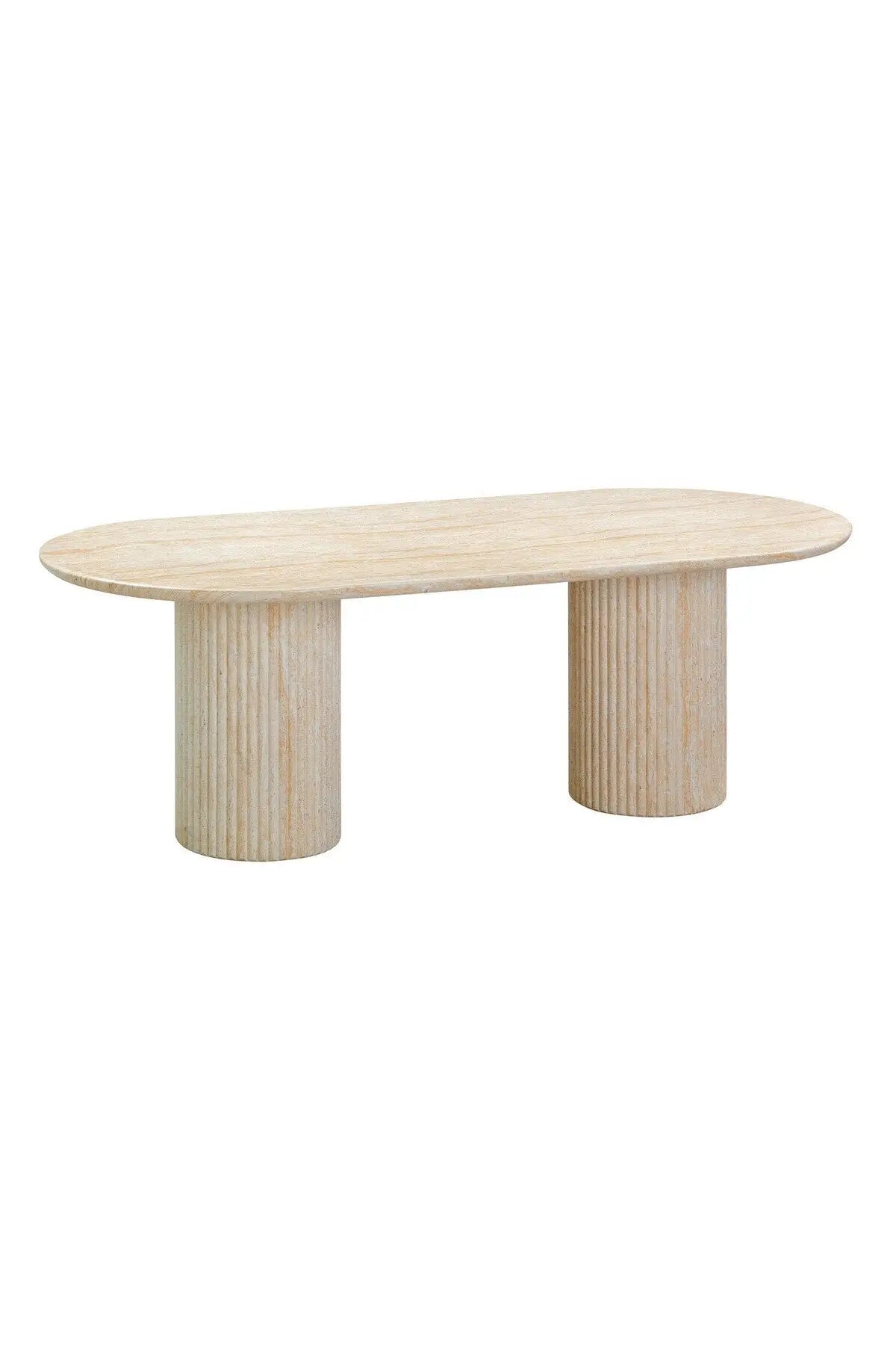 Meet the Brut Dining Table. Where timeless elegance meets enduring strength, setting the stage for unforgettable moments. With its choice of a travertine or white marble pattern, this masterpiece effortlessly blends with any setting, indoors or outdoors. Its sleek, tapered edges invite conversation and connection, while the durable concrete construction ensures your love for this table will last through many seasons of celebrations. Minor assembly required.