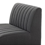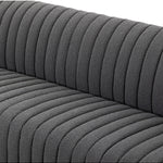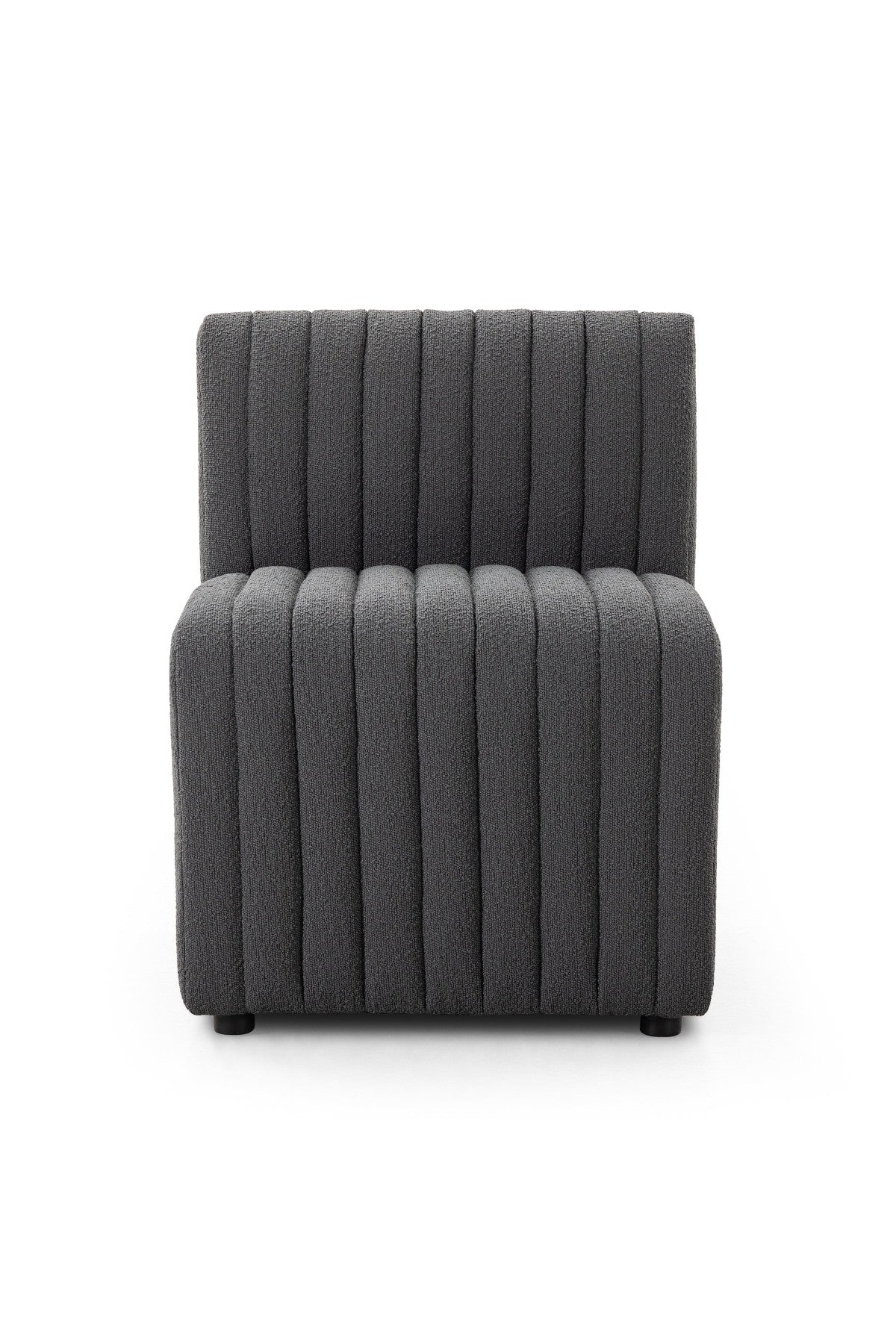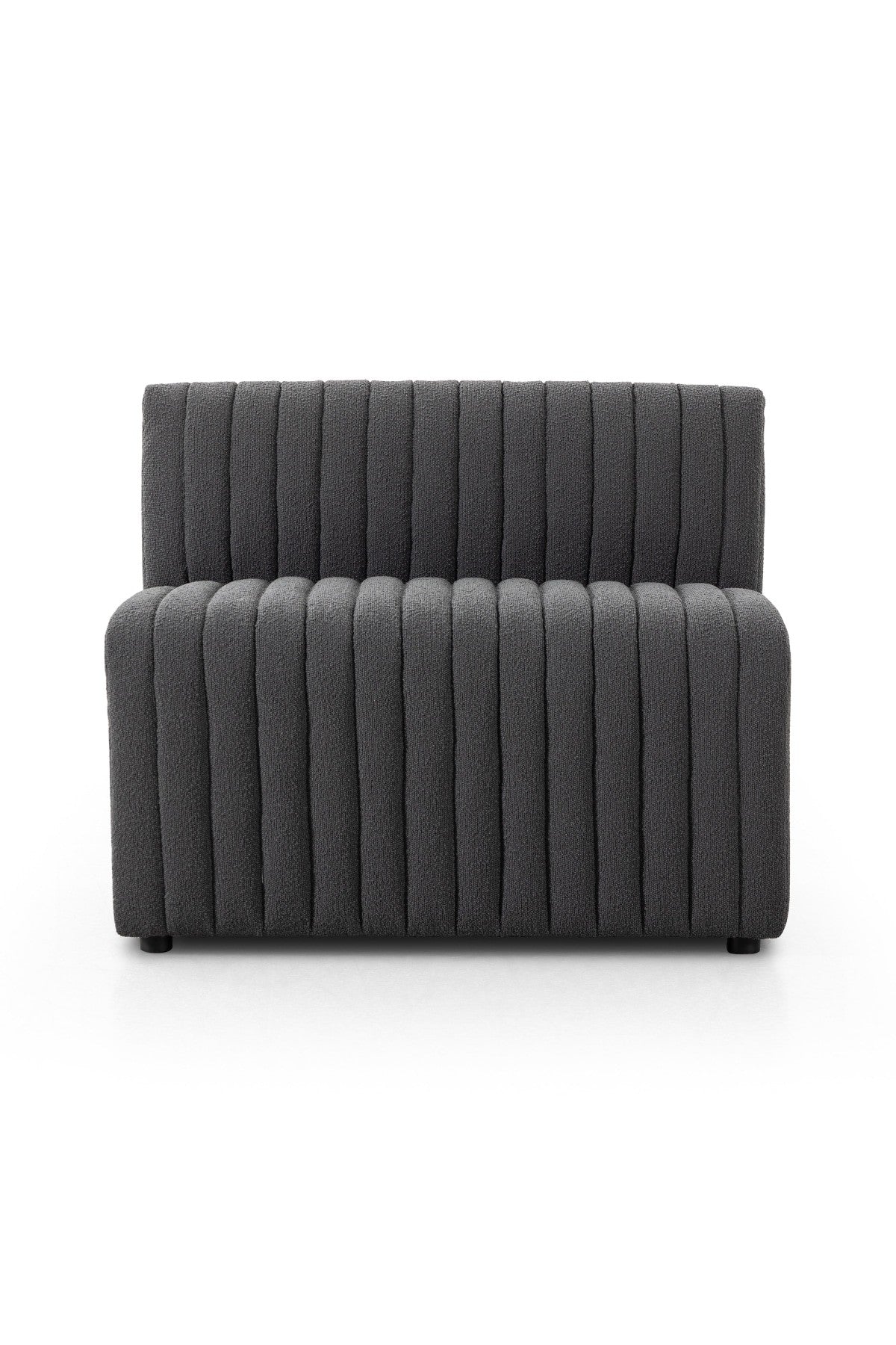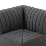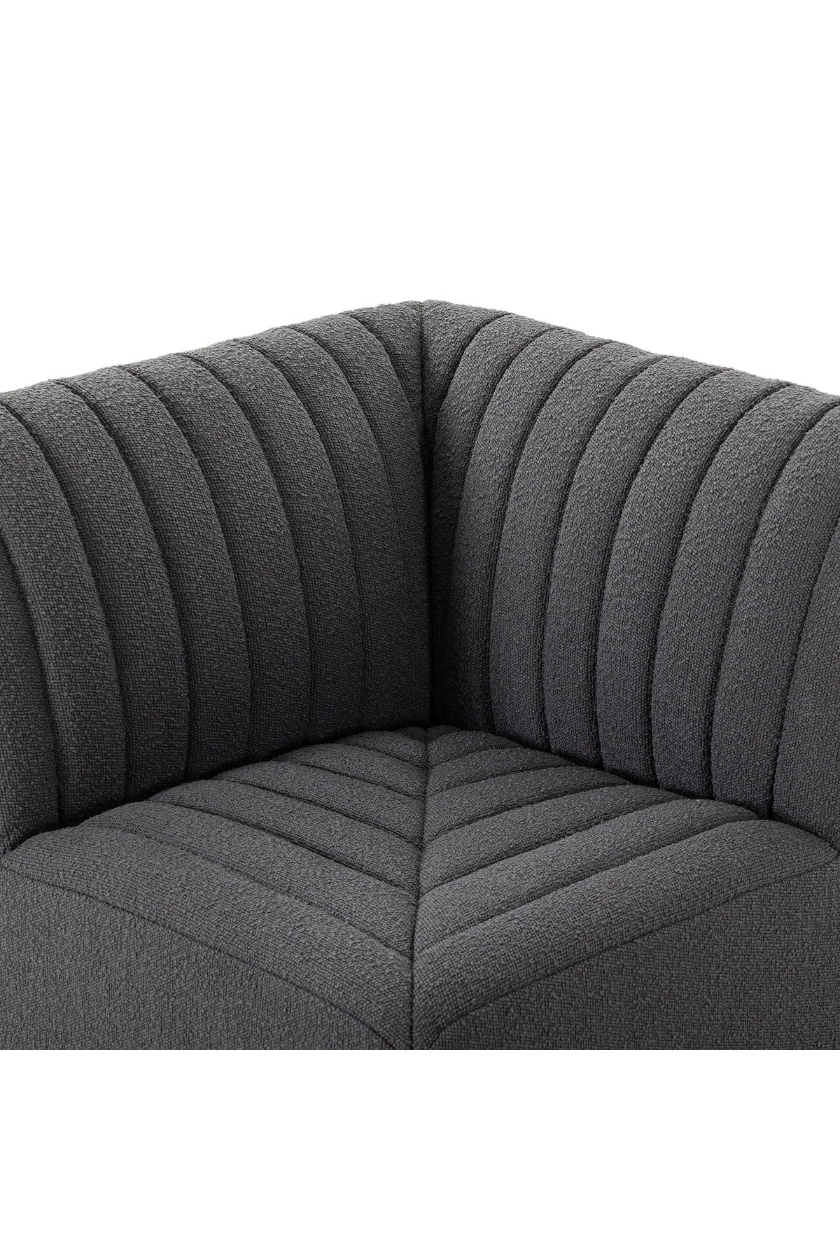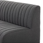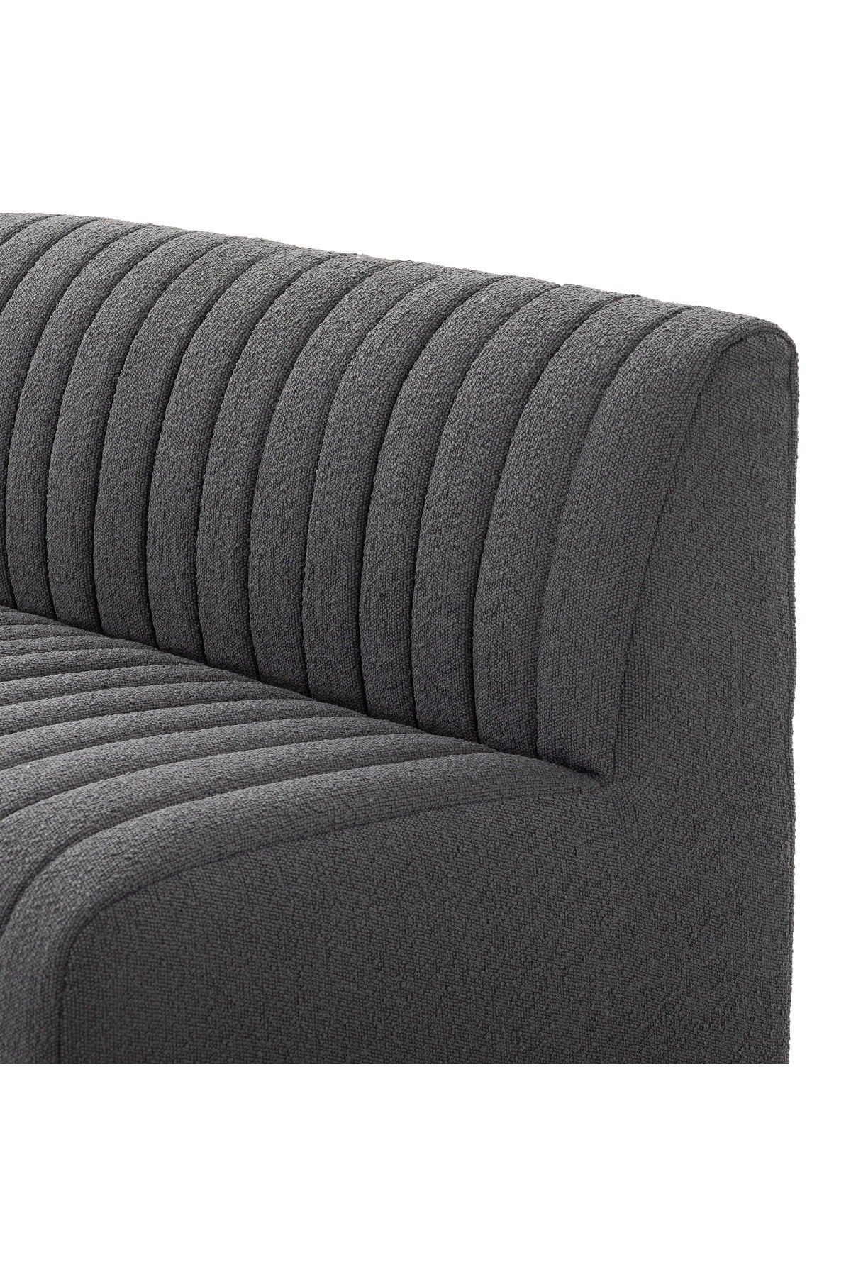Meet the Build Your Own: Augustine Dining Banquette. High-performance fabric in a versatile charcoal hue features dramatic channeling, for trend-forward texture and sumptuous sit in the Augustine Dining Banquette. Option to pair with matching pieces for clever, custom modularity. Performance fabrics are specially created to withstand spills, stains, high traffic and wear, ensuring long-term comfort and unmatched durability.