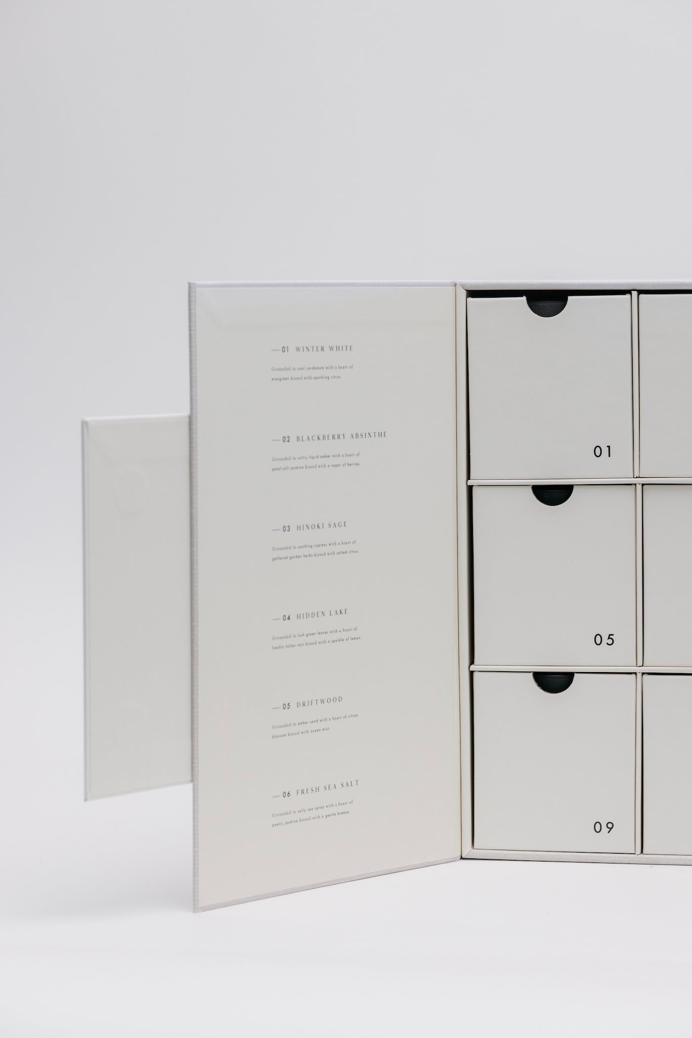 - Materials: Soy Wax Blend | Glass Vessels | Cardstock Box | Cotton Wicks