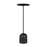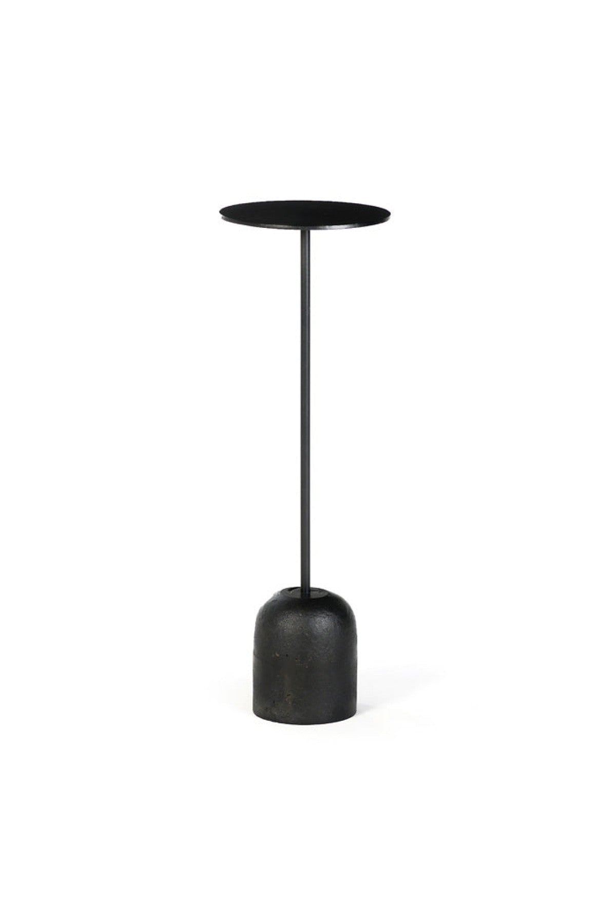 Our petite Cannon Drink Table features a sculpted, cast steel base finished with a sandblasted texture. A dark oil finish is applied to the upright and tabletop, giving this monochromatic accent piece a sculptural presence in just about any space.
