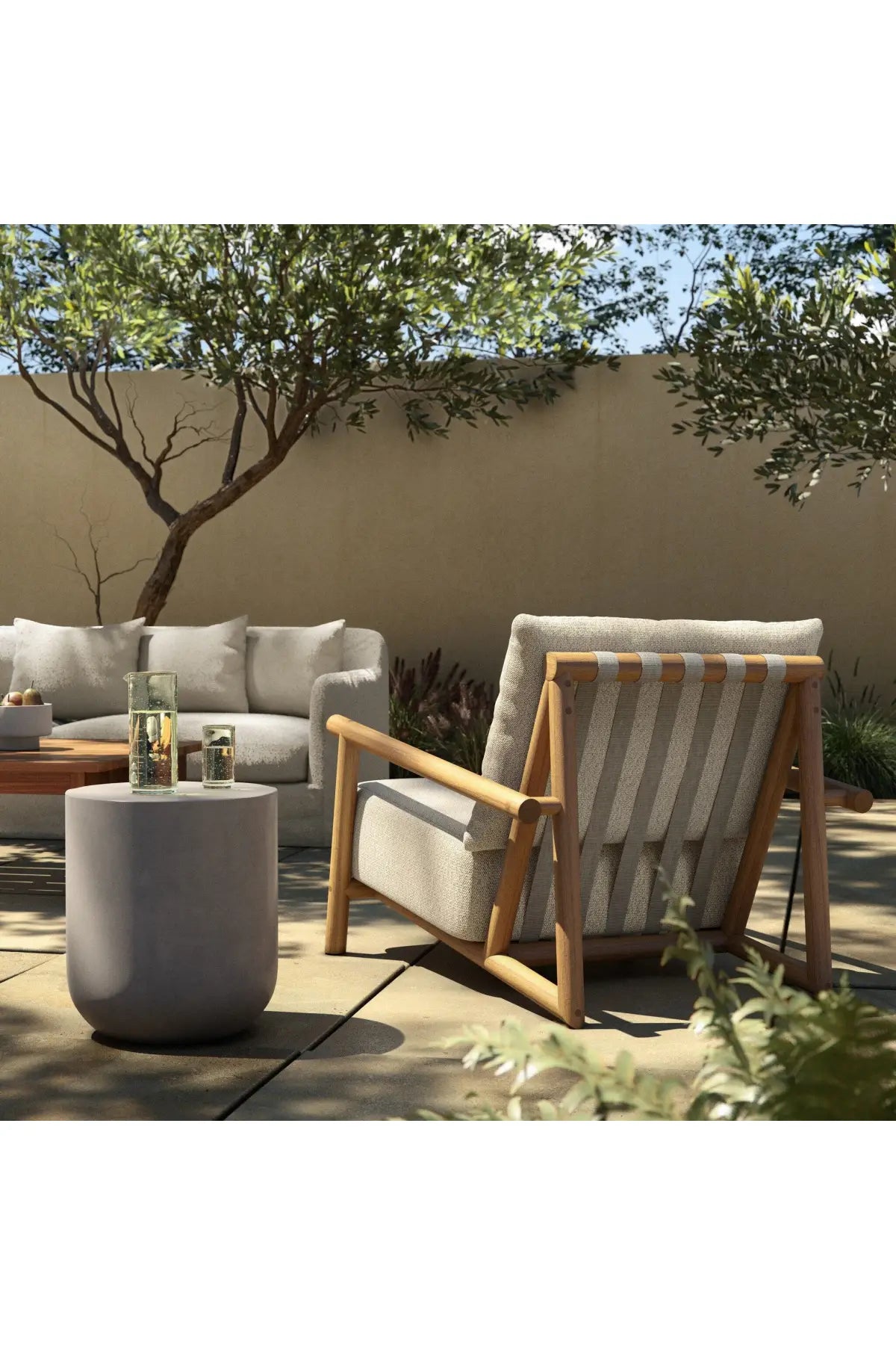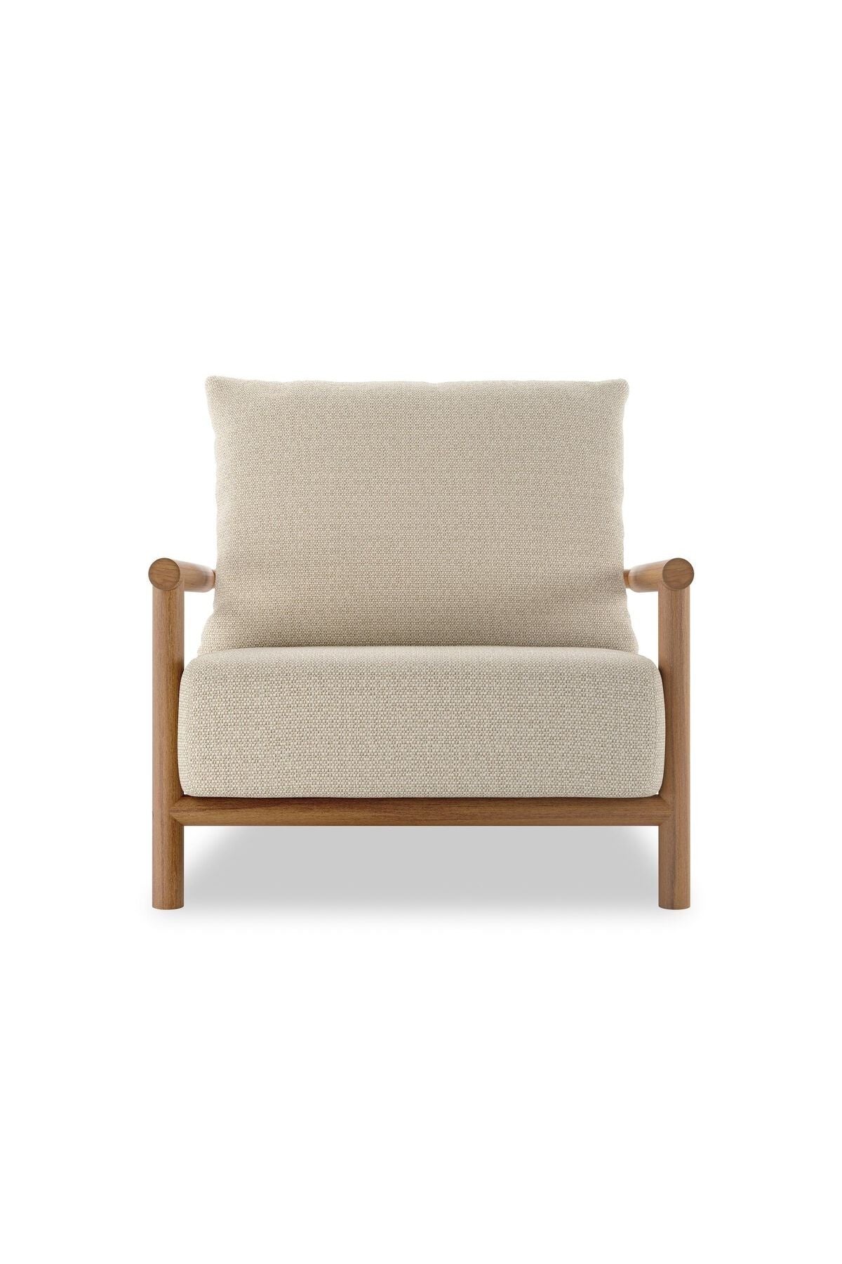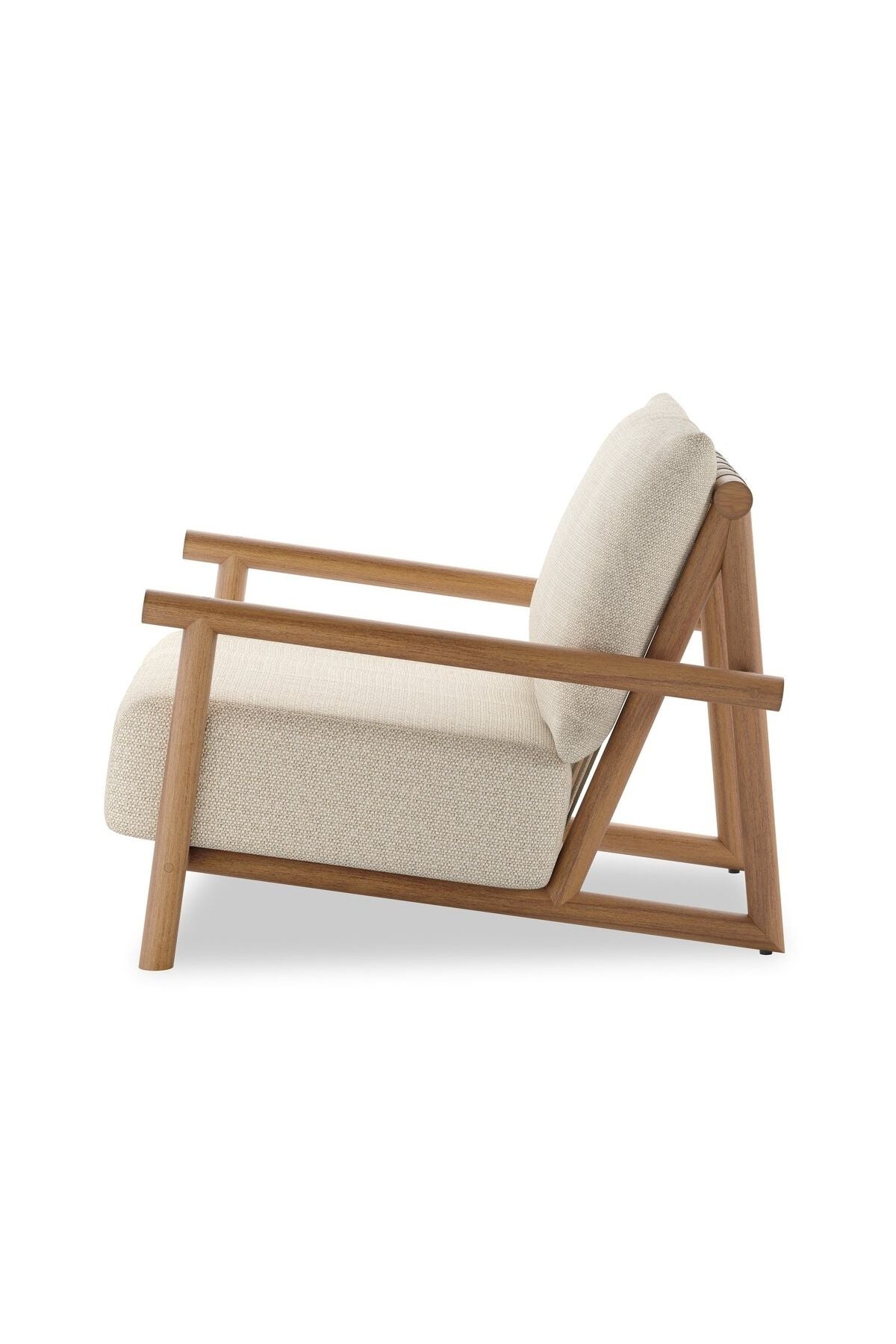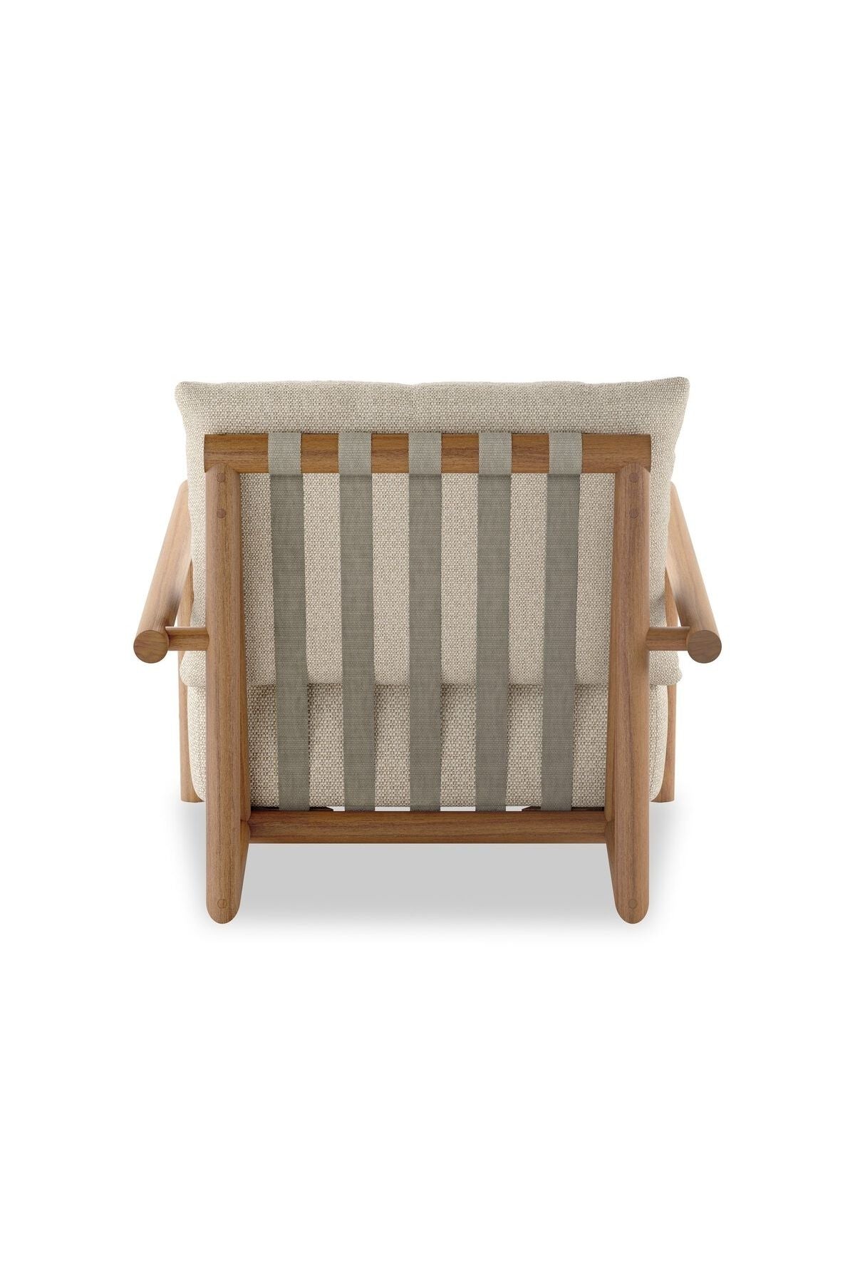 Meet the Cardiff Outdoor Chair. Angular FSC®-certified teak framing paired with softened dowel edges crafts a bench-made, transitional outdoor chair. Strap detailing supports the loose, knife-edge back cushion, complemented by a heavy fixed seat cushion. Cover or store indoors during inclement weather and when not in use.