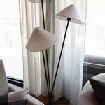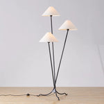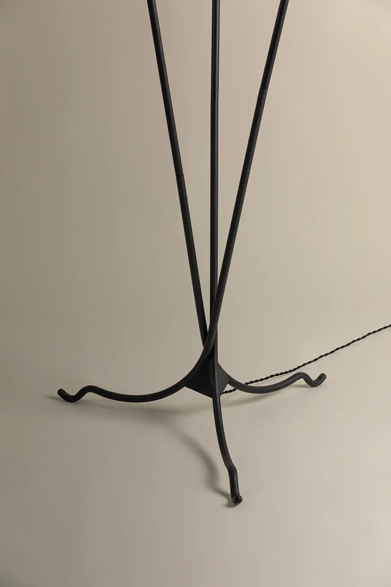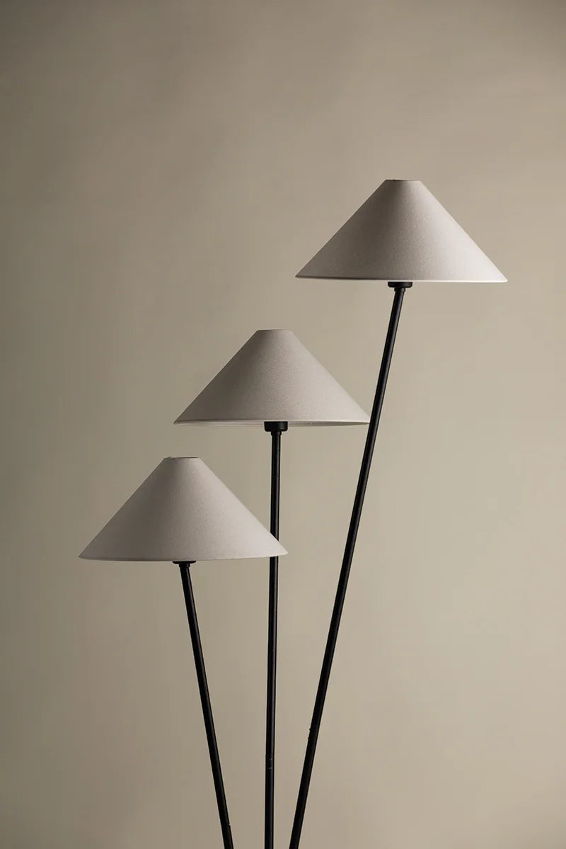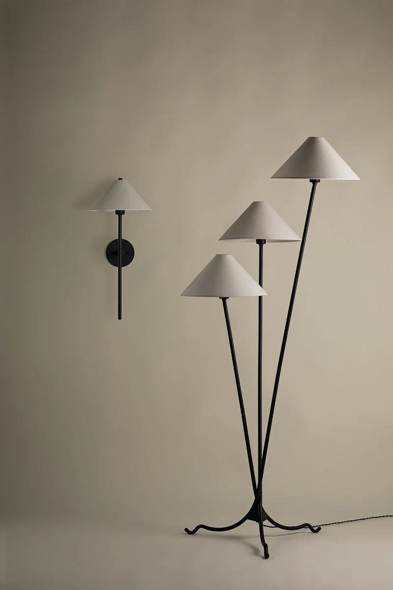 Meet the Cedar Floor Lamp. Sleek forged iron arms draw the eye to three tapered, off-white linen shades, creating a layered effect and giving Cedar its recognizable clean, modern silhouette. The floor lamp's unique tripod base and wavy feet add a touch of softness and unexpected whimsy. Bulb(s) not included.