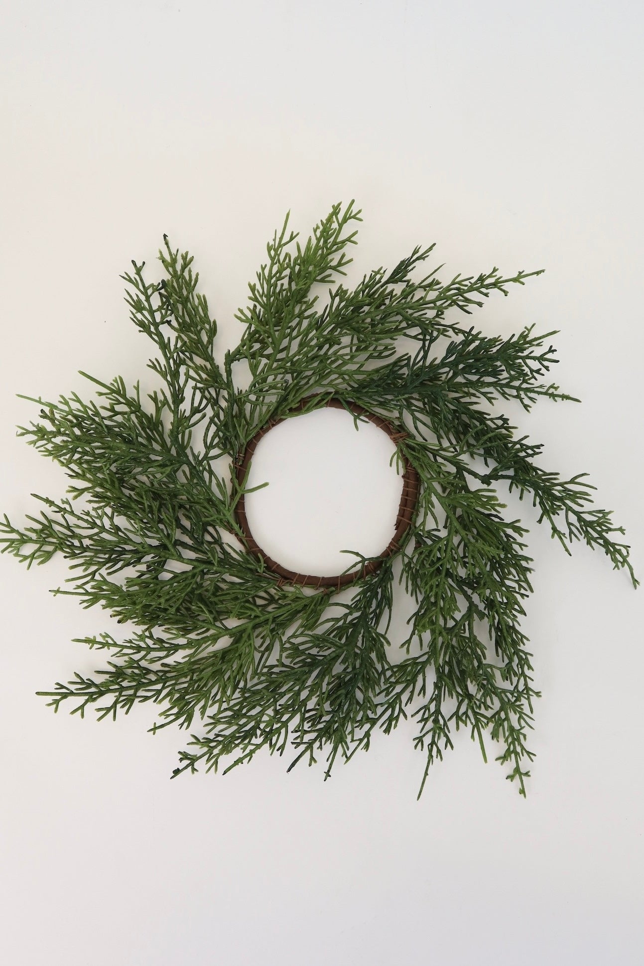 Something to love! This Cedar Pine Mini Wreath looks oh-so sweet adorned to the back of a chair or hanging from artwork in your home. Just add ribbon!