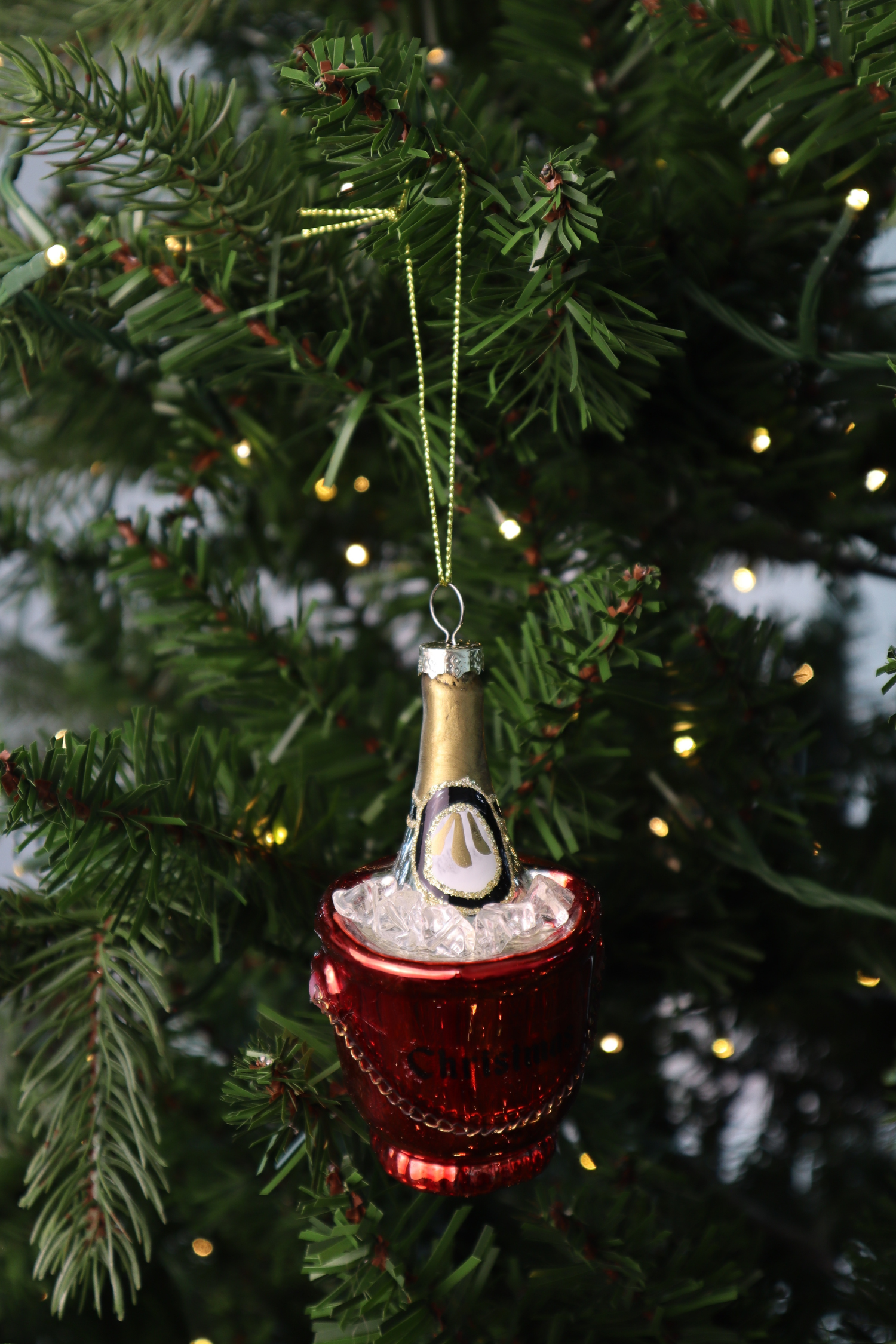 Add a playful pop with our Champagne Ornament - Red! This ornament is perfect for adding character to your tree, or as an add-on to your gifting!