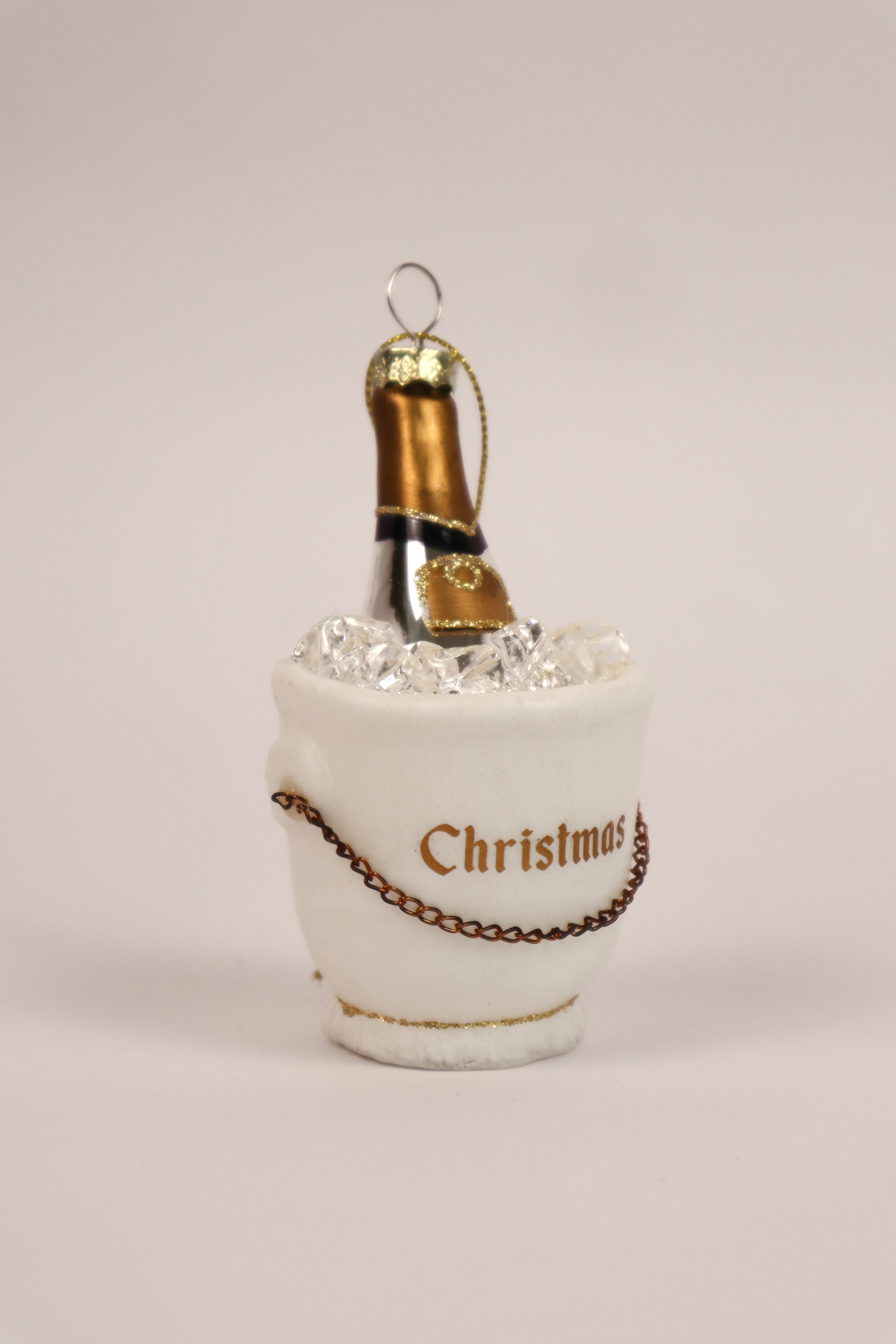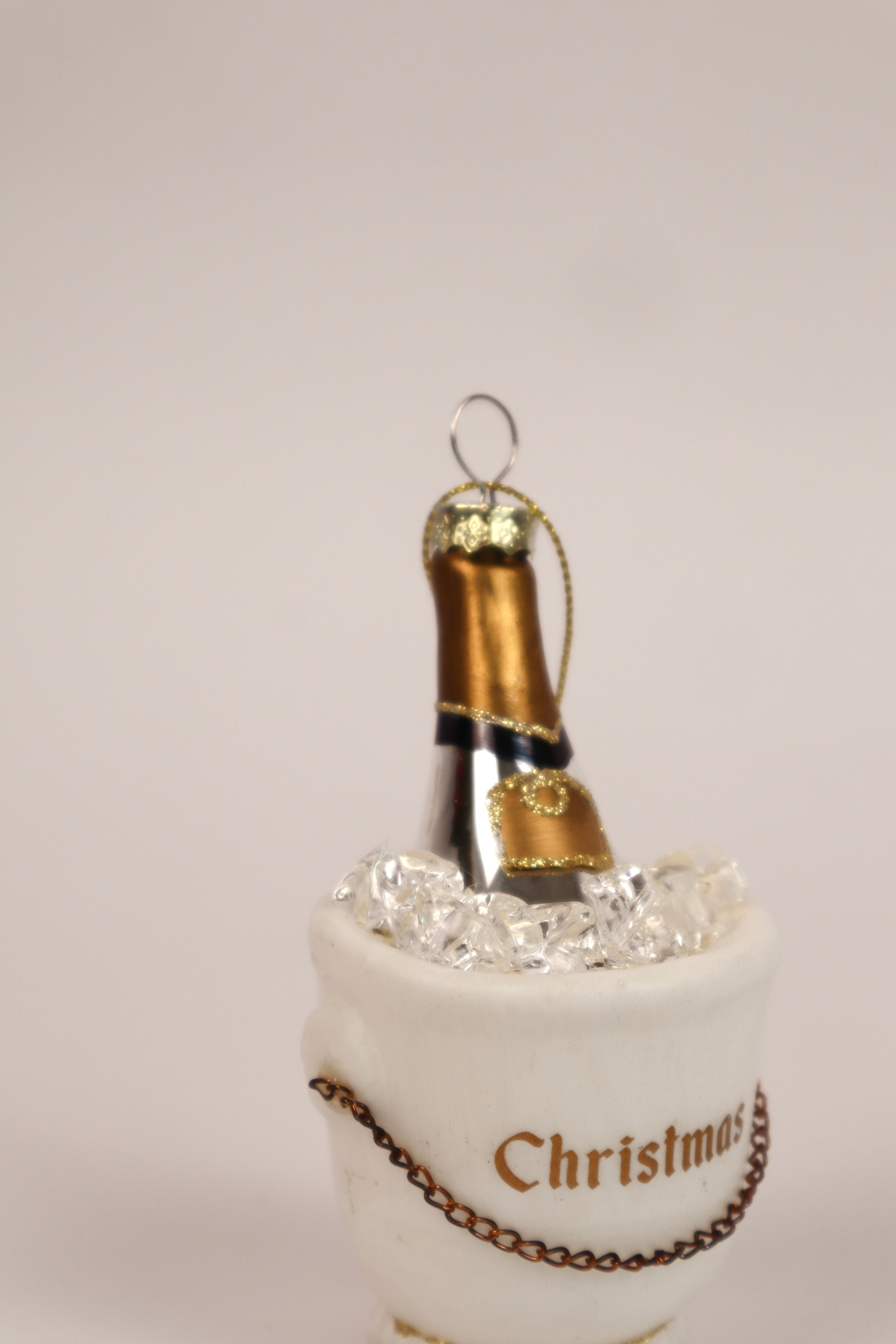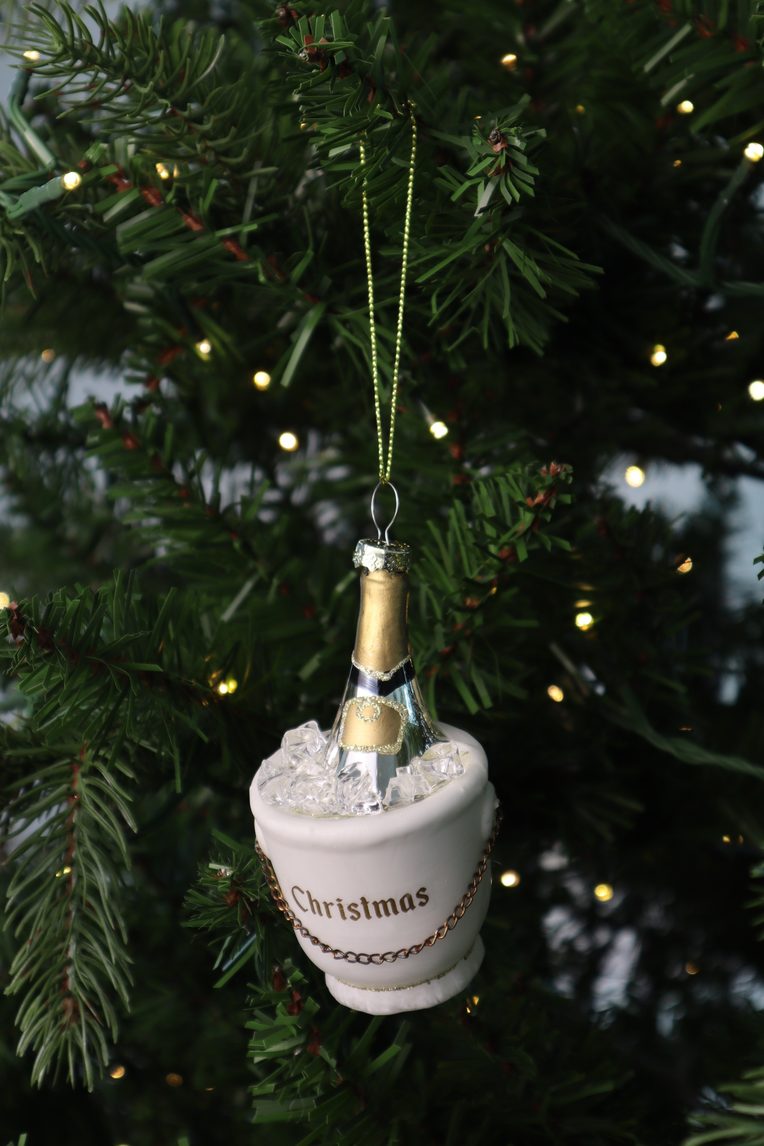Add a playful pop with our Champagne Ornament - White! This ornament is perfect for adding character to your tree, or as an add-on to your gifting!