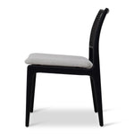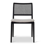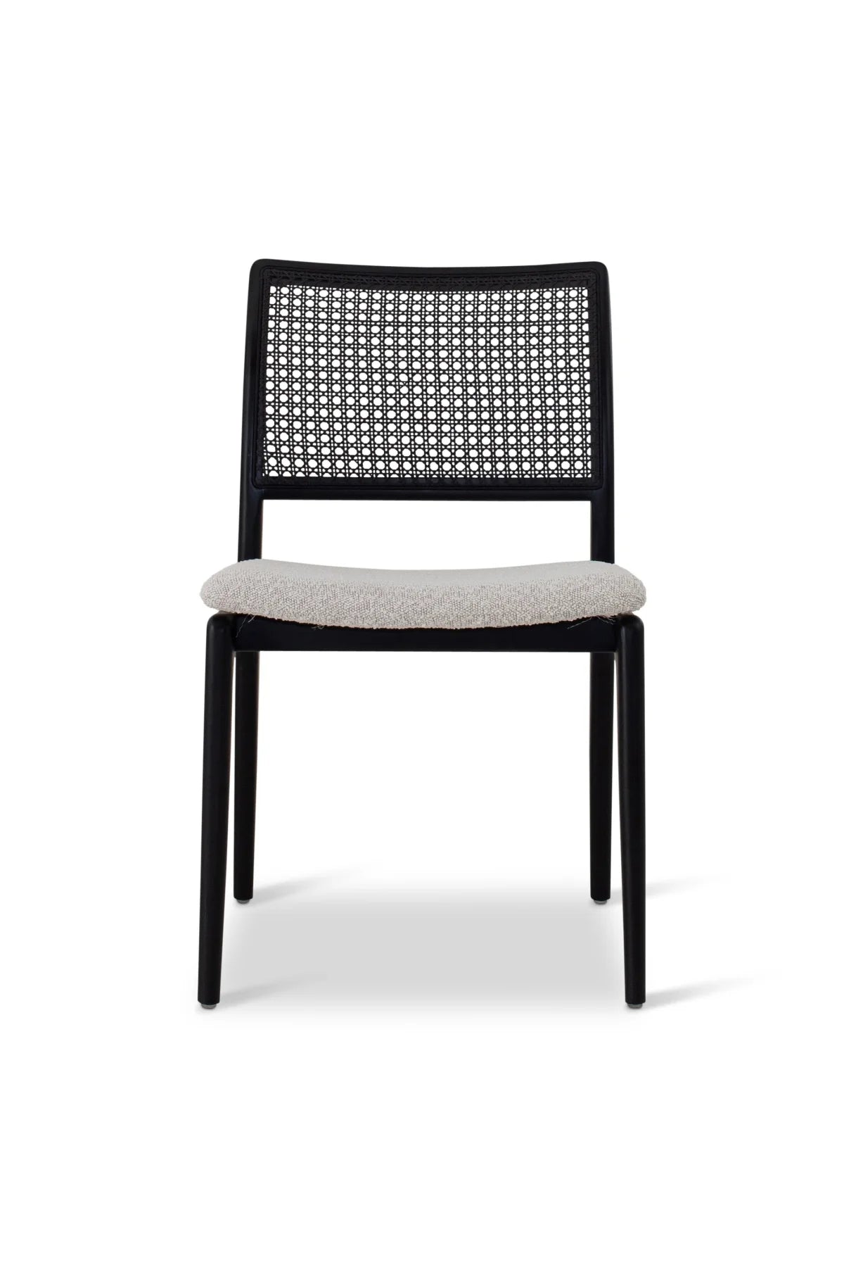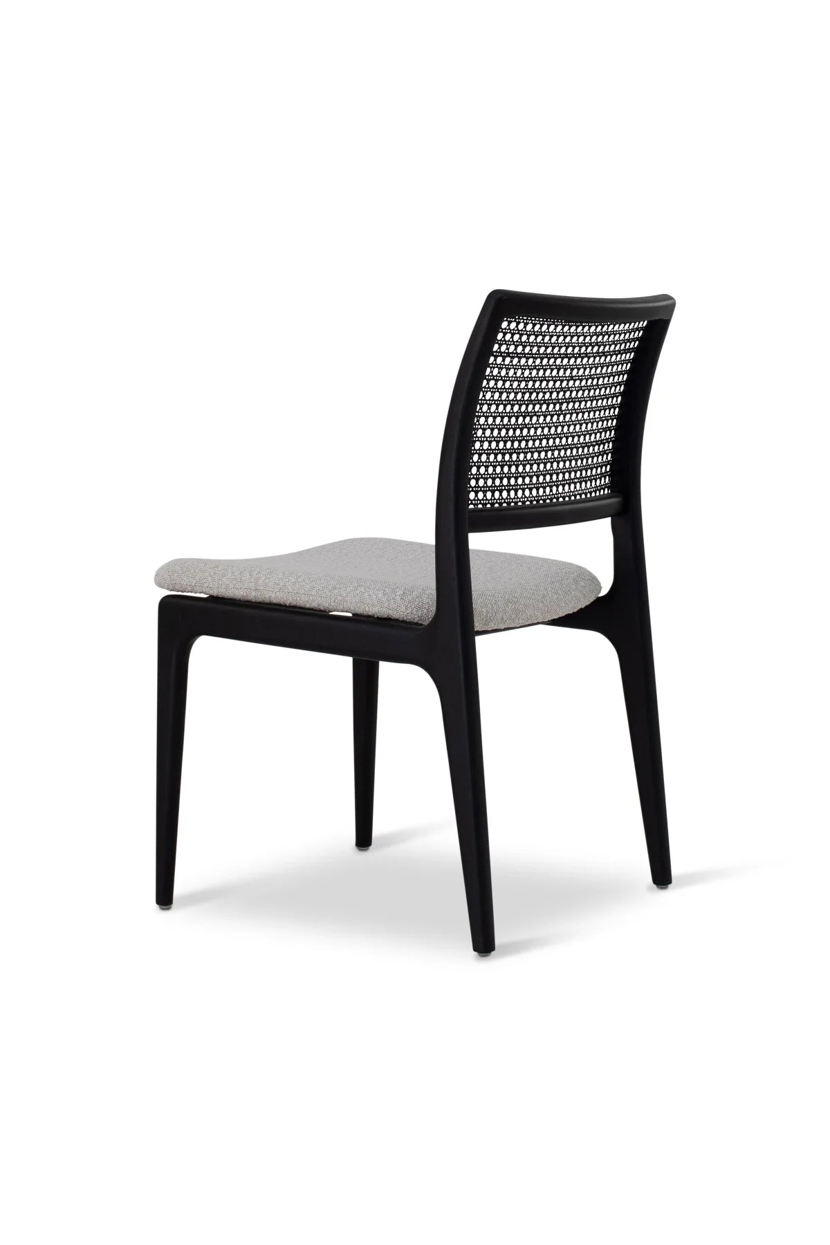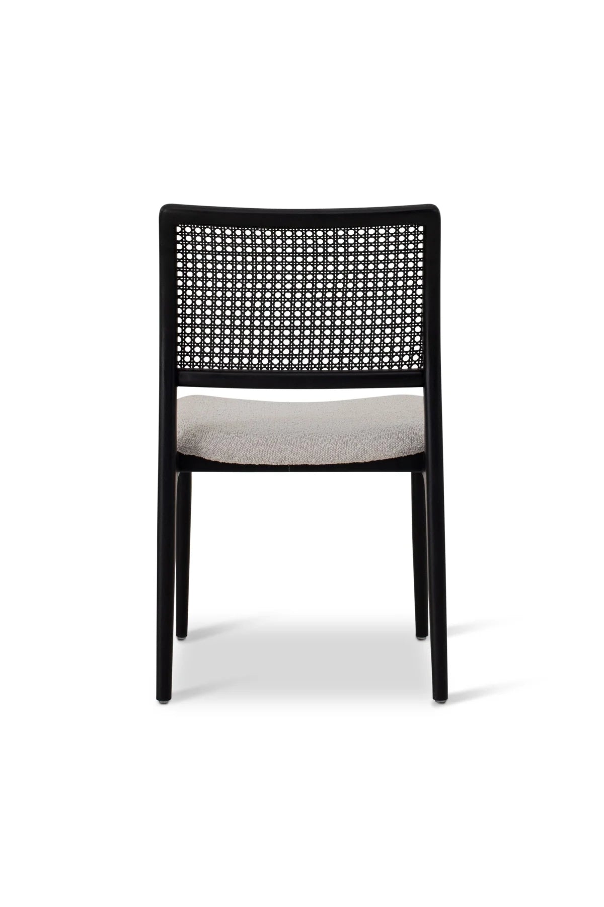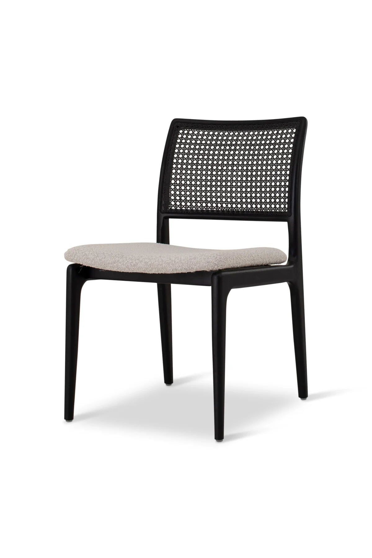 Meet the Charlotte Cane Side Chair. This chair presents a modern design that beautifully combines solid Tauari wood frame with natural caning and upholstery. The mixed materials come together harmoniously, creating a modern aesthetic with a touch of organic elements.