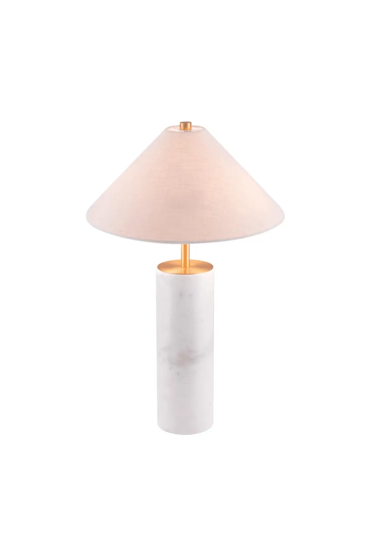 Elegant and modern, the Ciara Table Lamp has polyester shade, a brass plated steel neck and marble base. It is the perfect lamp for any space.