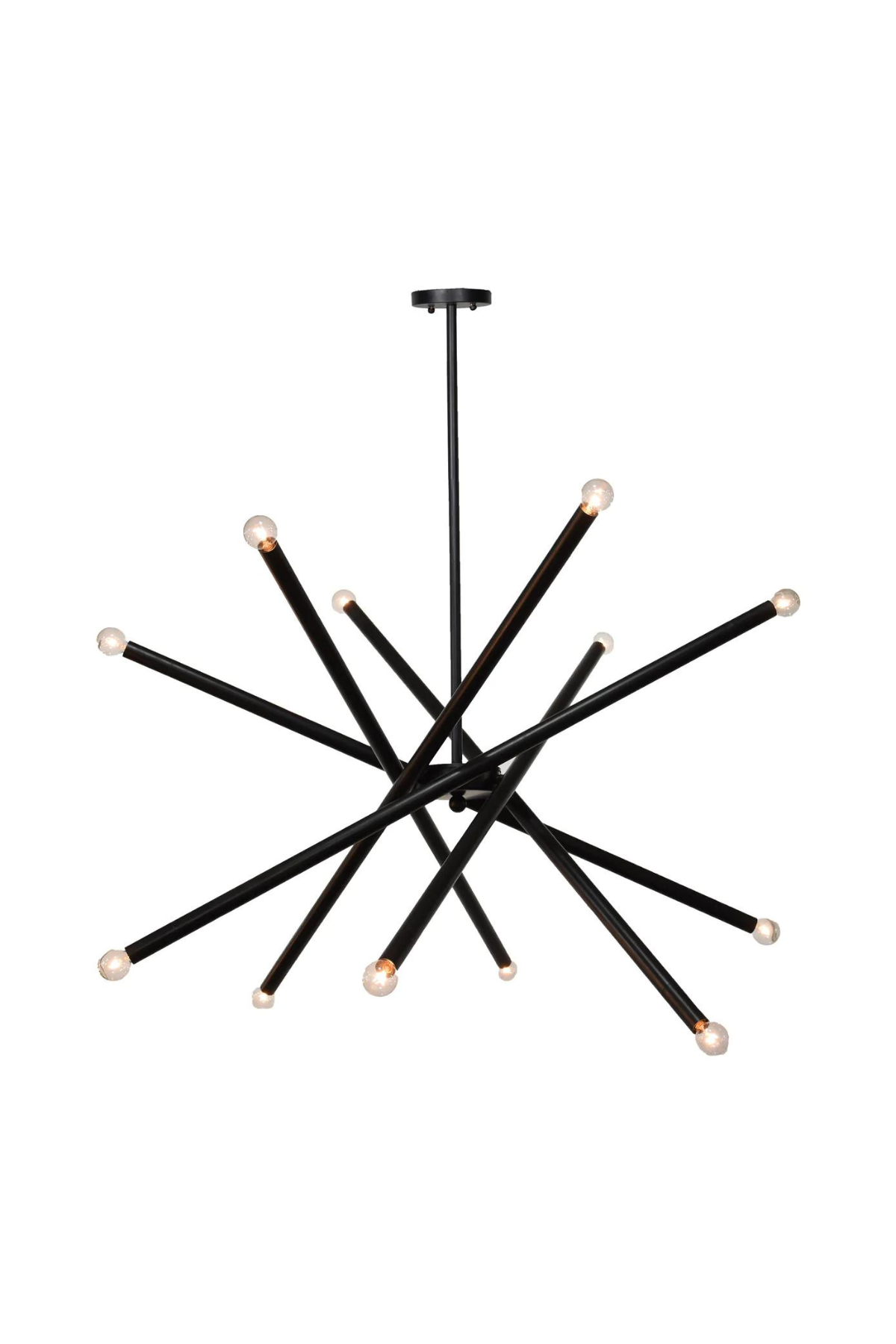 Meet the Clemente Chandelier. Artful arrangement and an unconventional silhouette give this light major glamour. Six canes are suspended from a single stem in a crisscrossed pattern that is anything but ordinary. Bulbs are included.