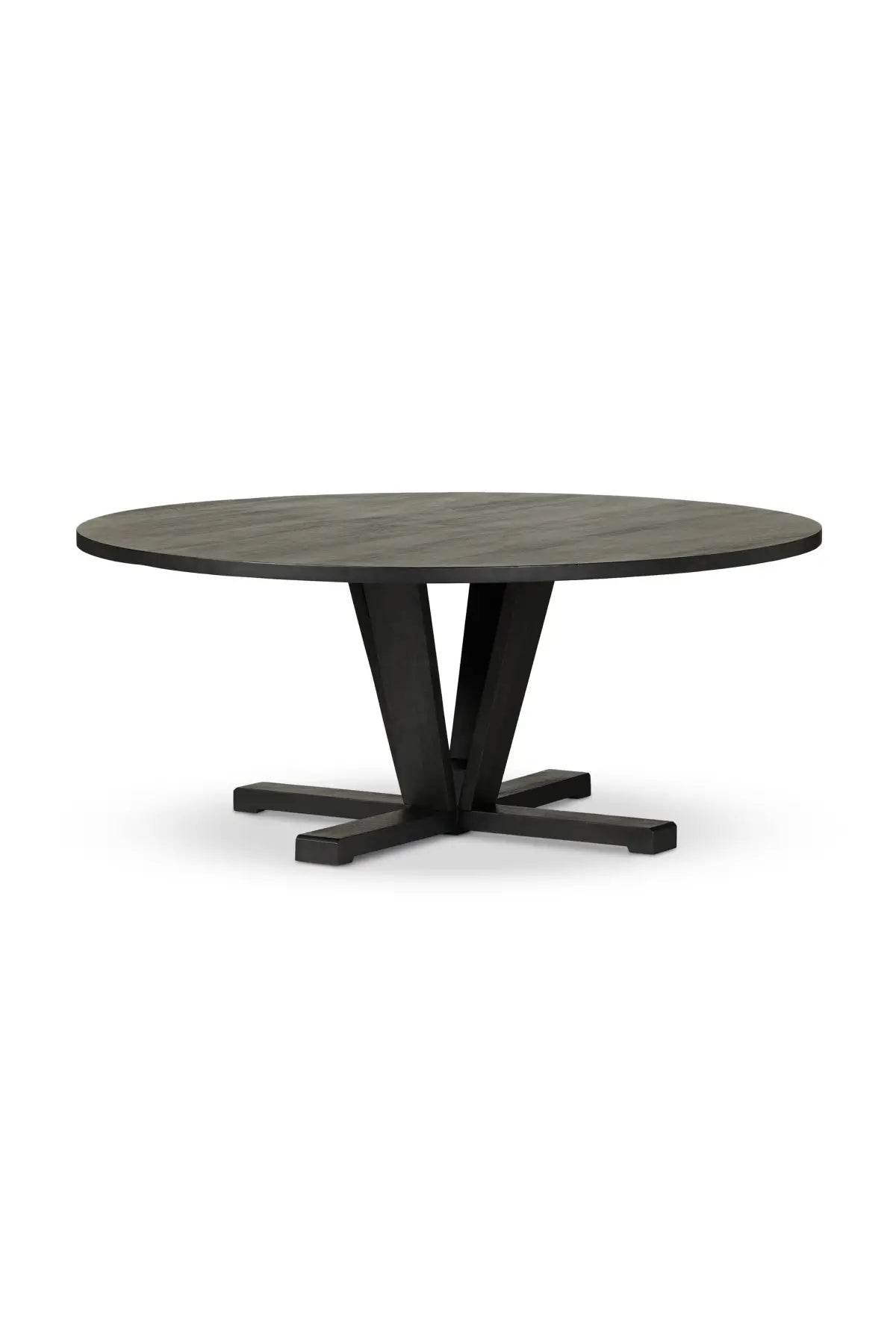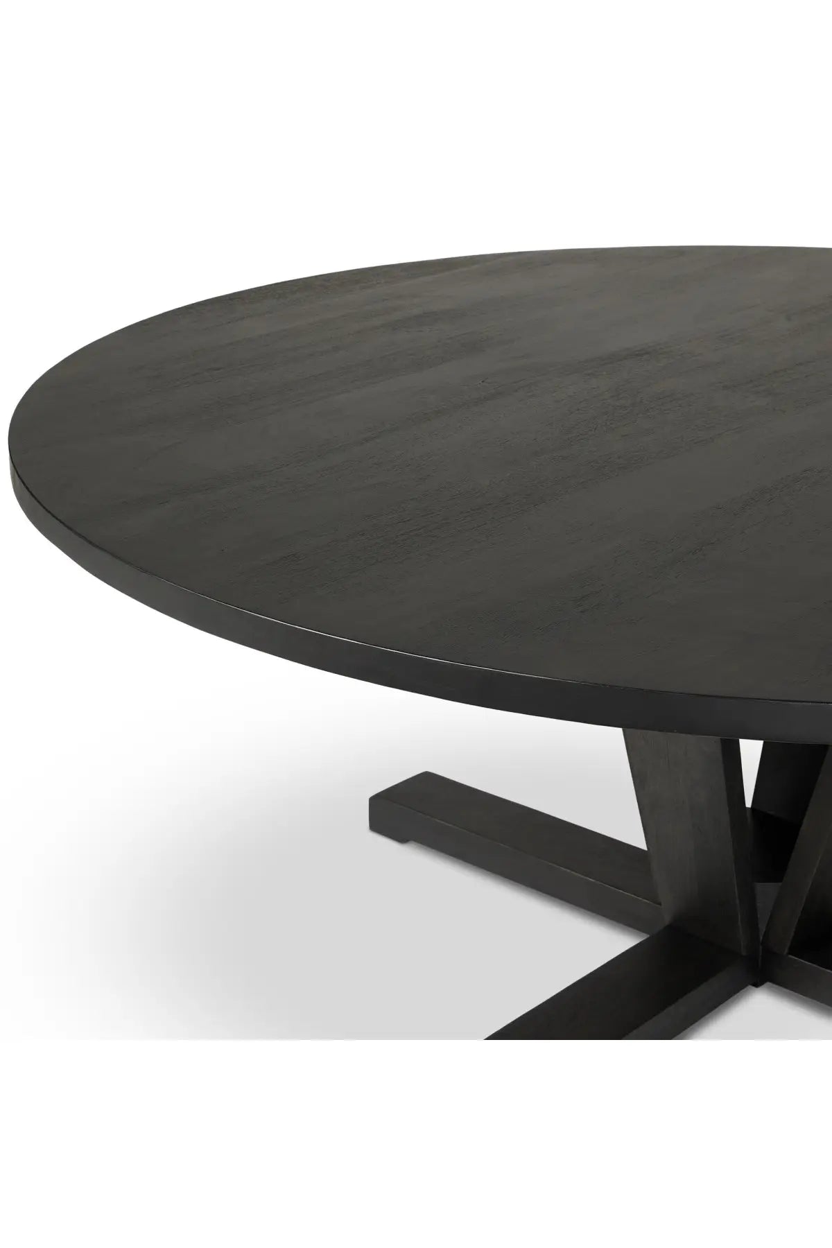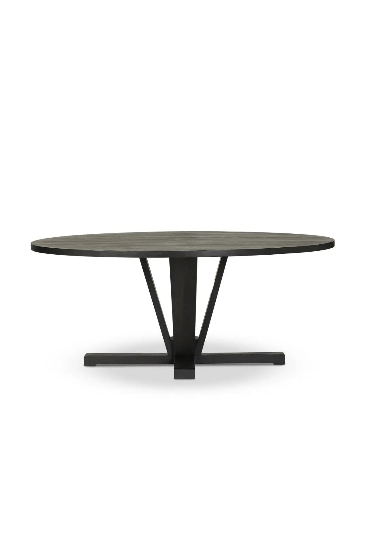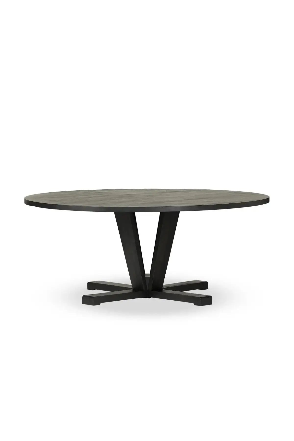 The Cobain Dining Table is a table of solid mango wood forms purposefully burnished edges, producing a warm black patina.