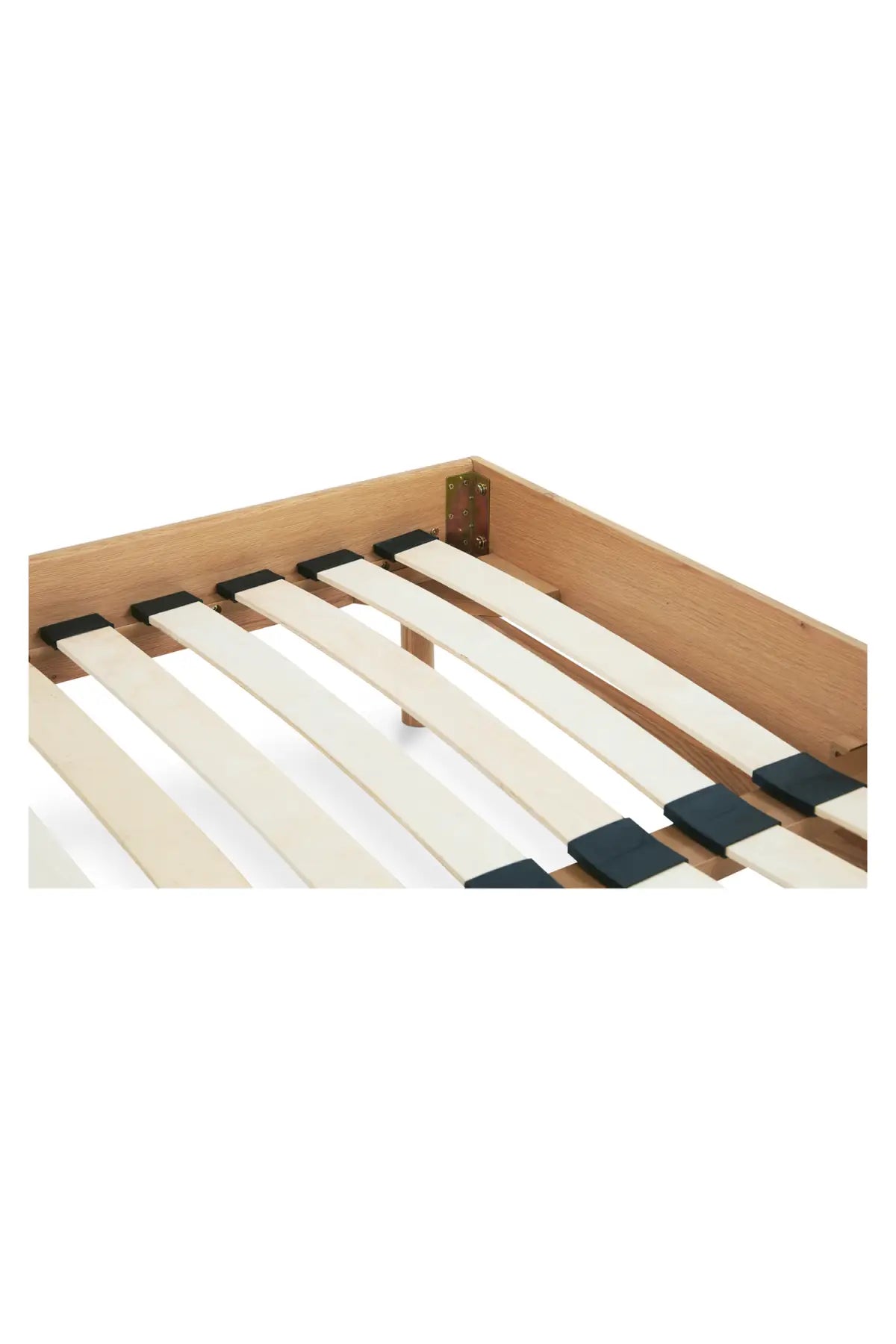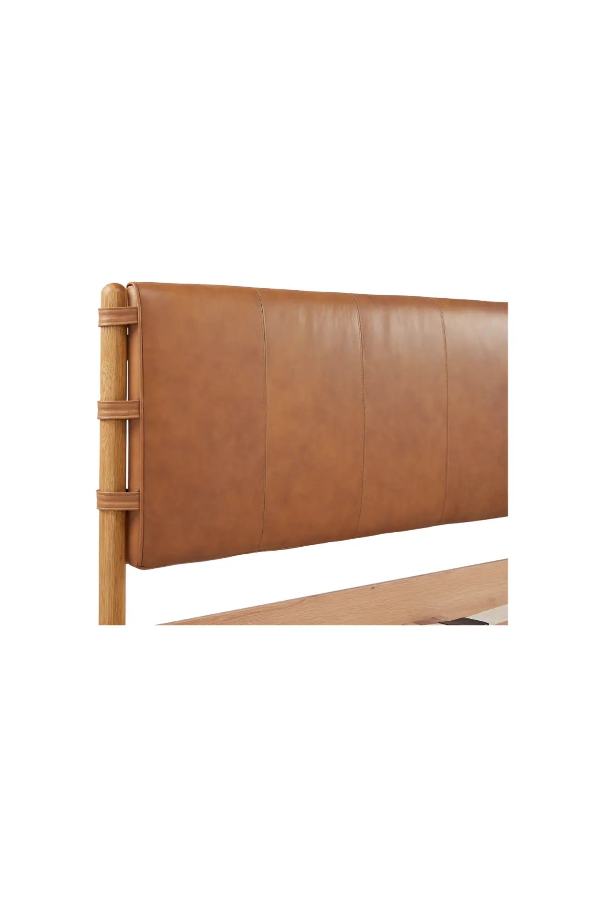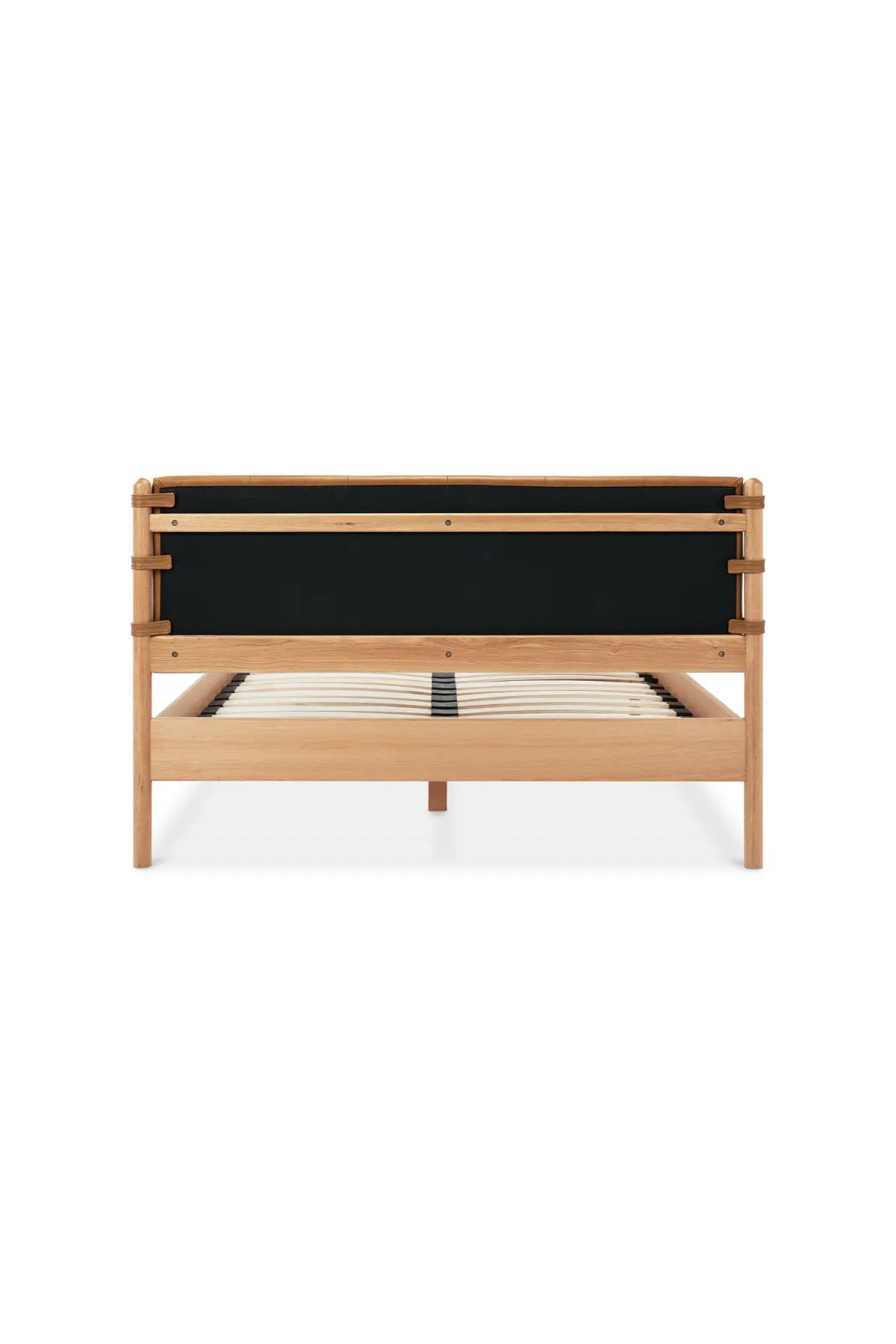 Crafted with a high-quality leather headboard and rounded solid oak legs, the Colby Bed elegantly brings understated luxury with superb craftsmanship. The soft curves of the leather headboard provide a sense of warmth and coziness, while the rounded legs add a touch of organic form to the overall design. The clean lines and natural materials create a harmonious and sophisticated piece, fitting seamlessly into any contemporary space. Slats included.