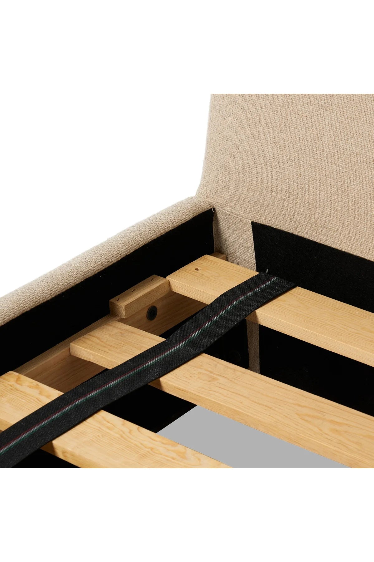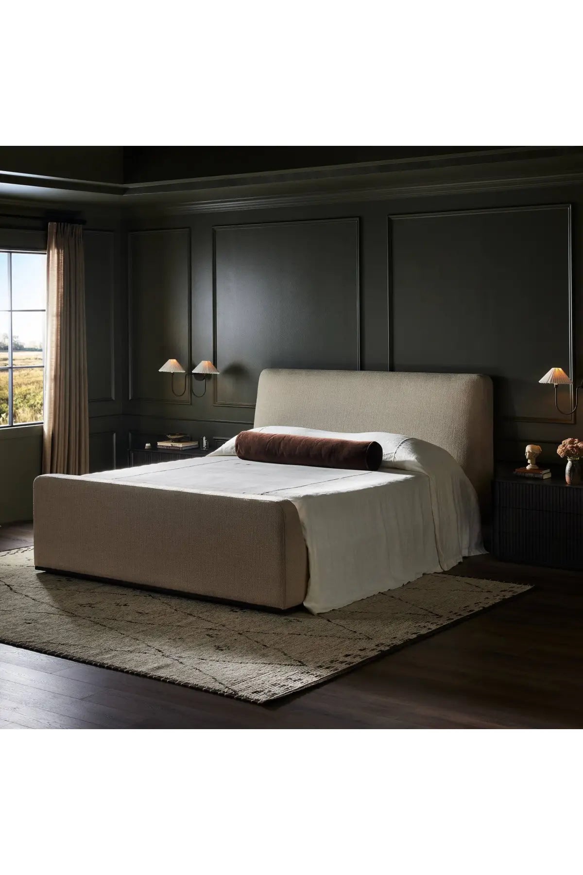 Meet the Colt Bed. Horizontal channeling lends a linear, textured look to luxurious upholstery of silver sage polyester. Velvety, high-style headboard crafts an elegant air. Slats included.