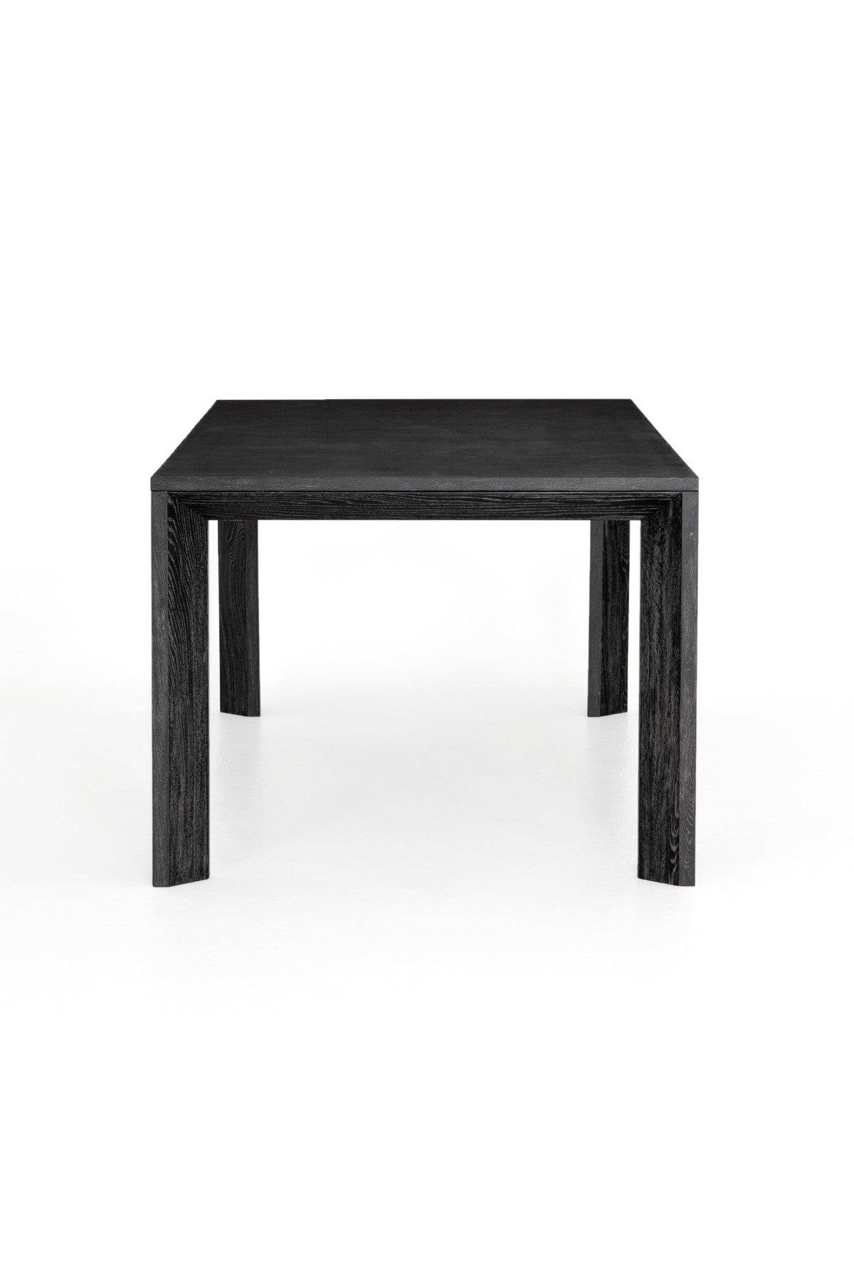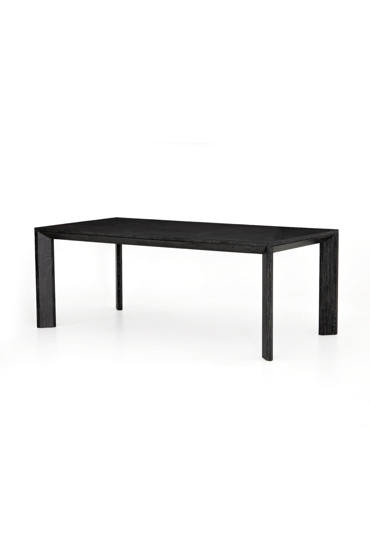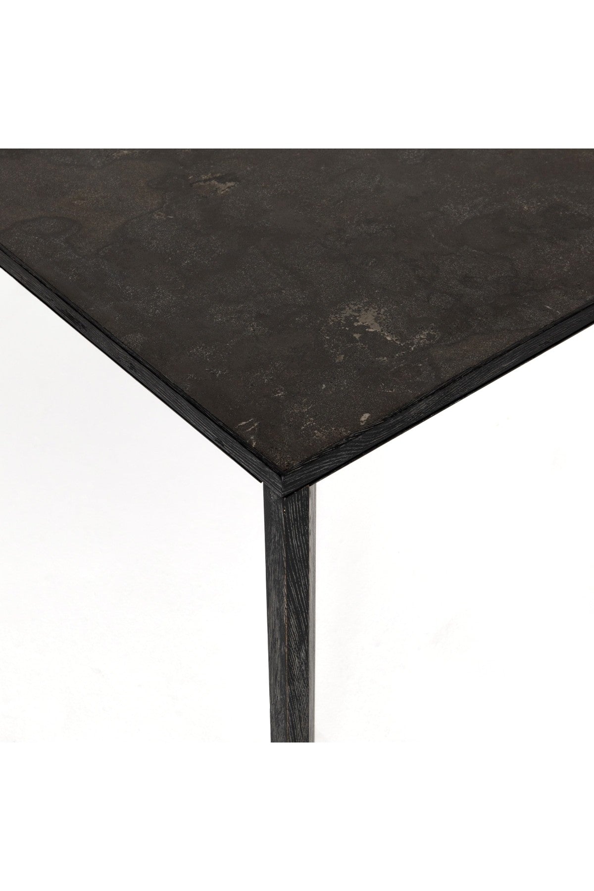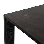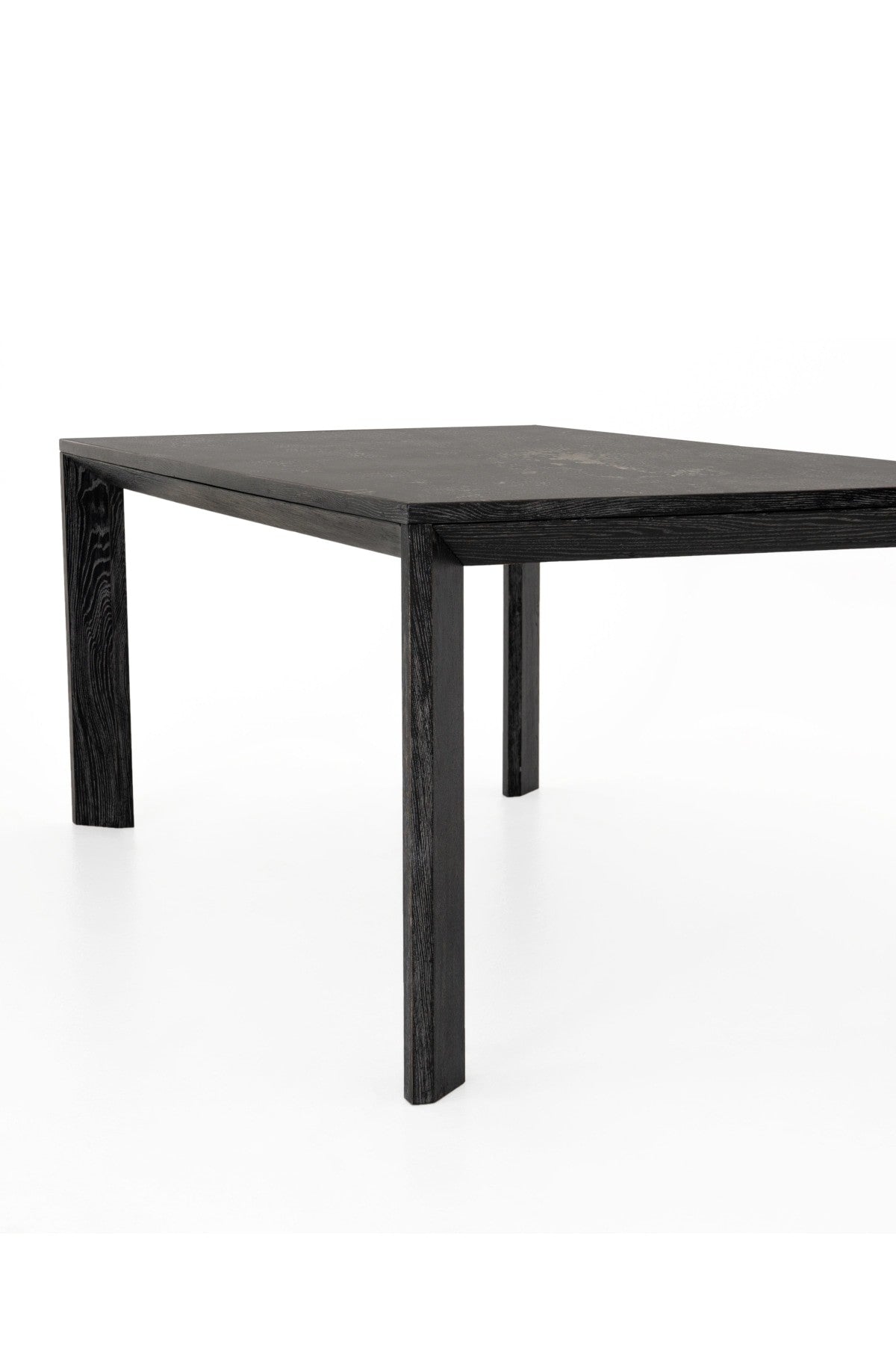 The Conner Dining Table is simple while sophisticated. A clean, Parsons-style dining table of black-washed oak adopts new depth by way of a bluestone inset top and cleverly splayed legs. White mineral lines and subtle color, texture and pattern variations are to be expected and speak to each stone's individual nature.
