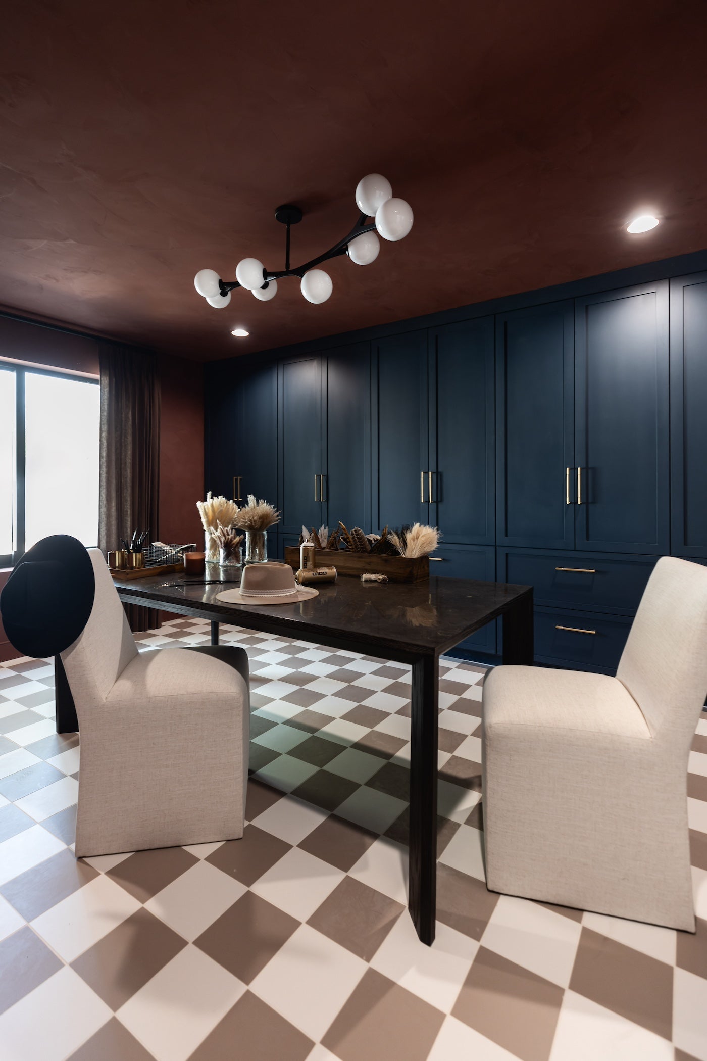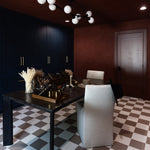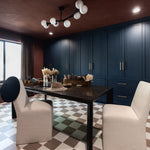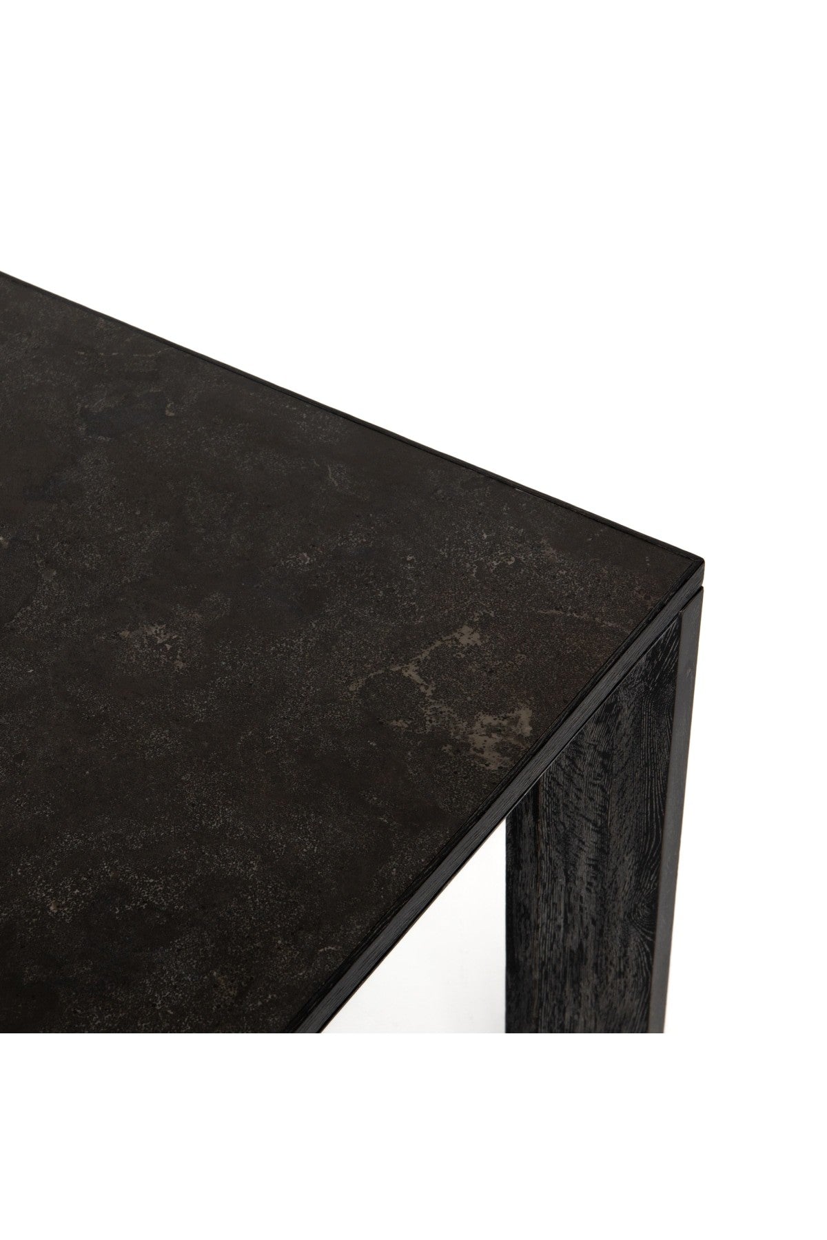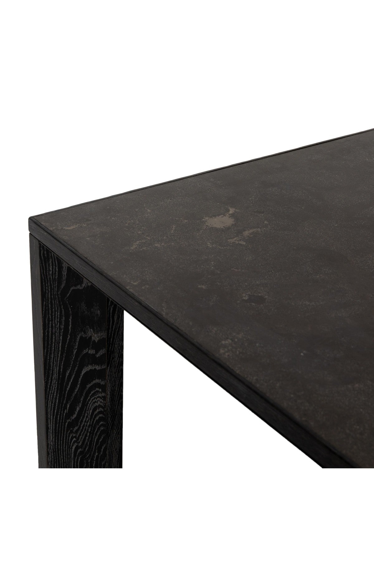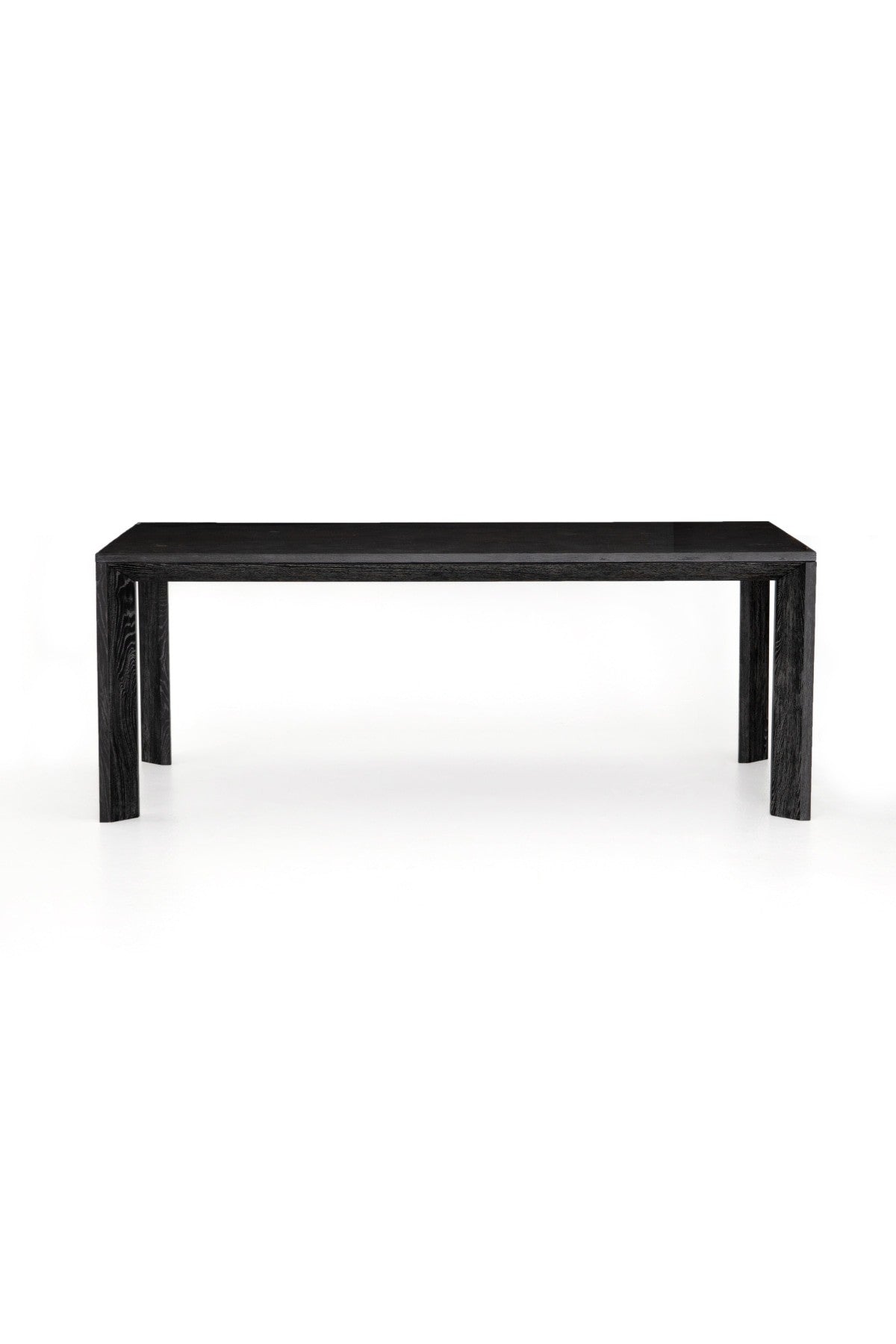 The Conner Dining Table is simple while sophisticated. A clean, Parsons-style dining table of black-washed oak adopts new depth by way of a bluestone inset top and cleverly splayed legs. White mineral lines and subtle color, texture and pattern variations are to be expected and speak to each stone's individual nature.