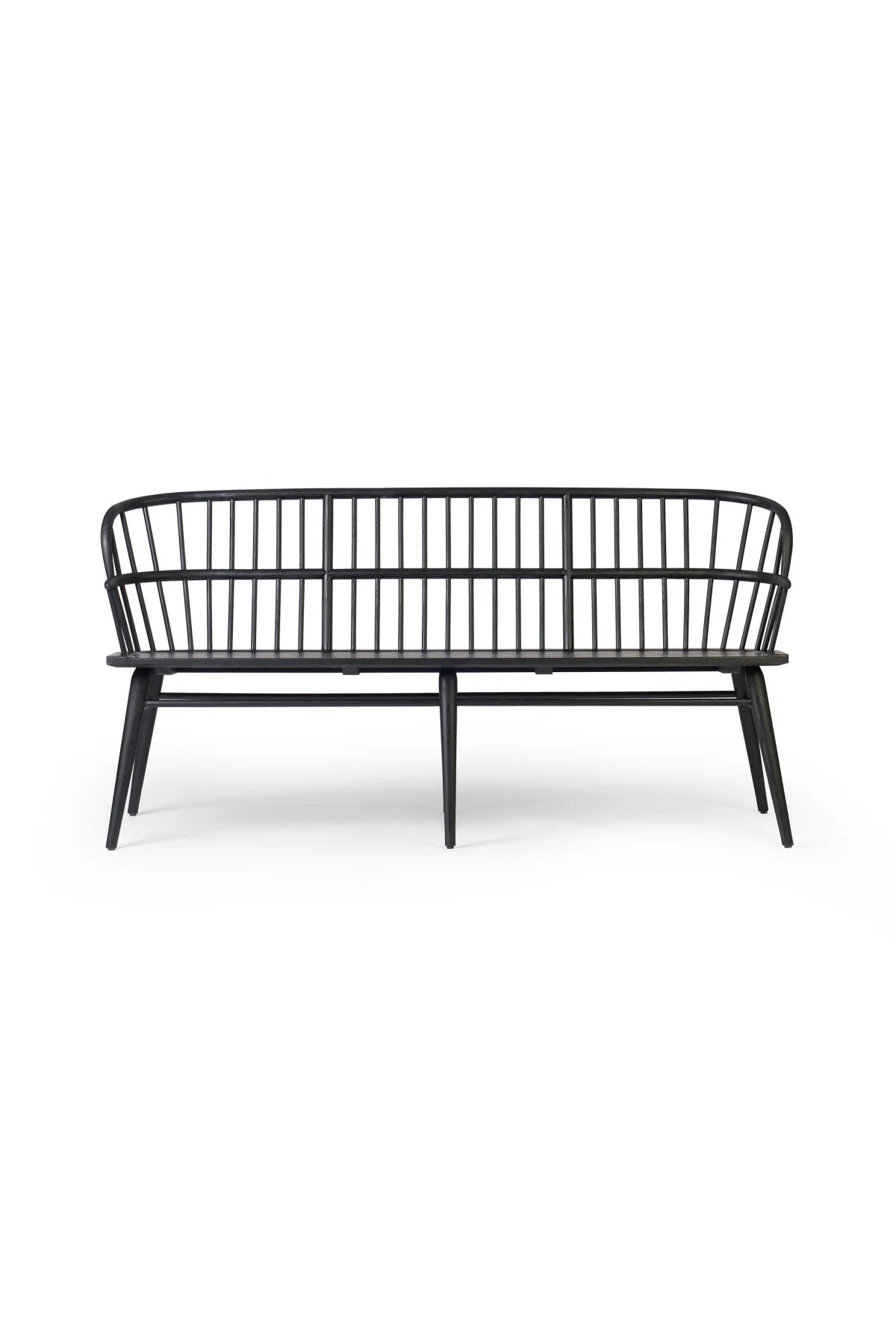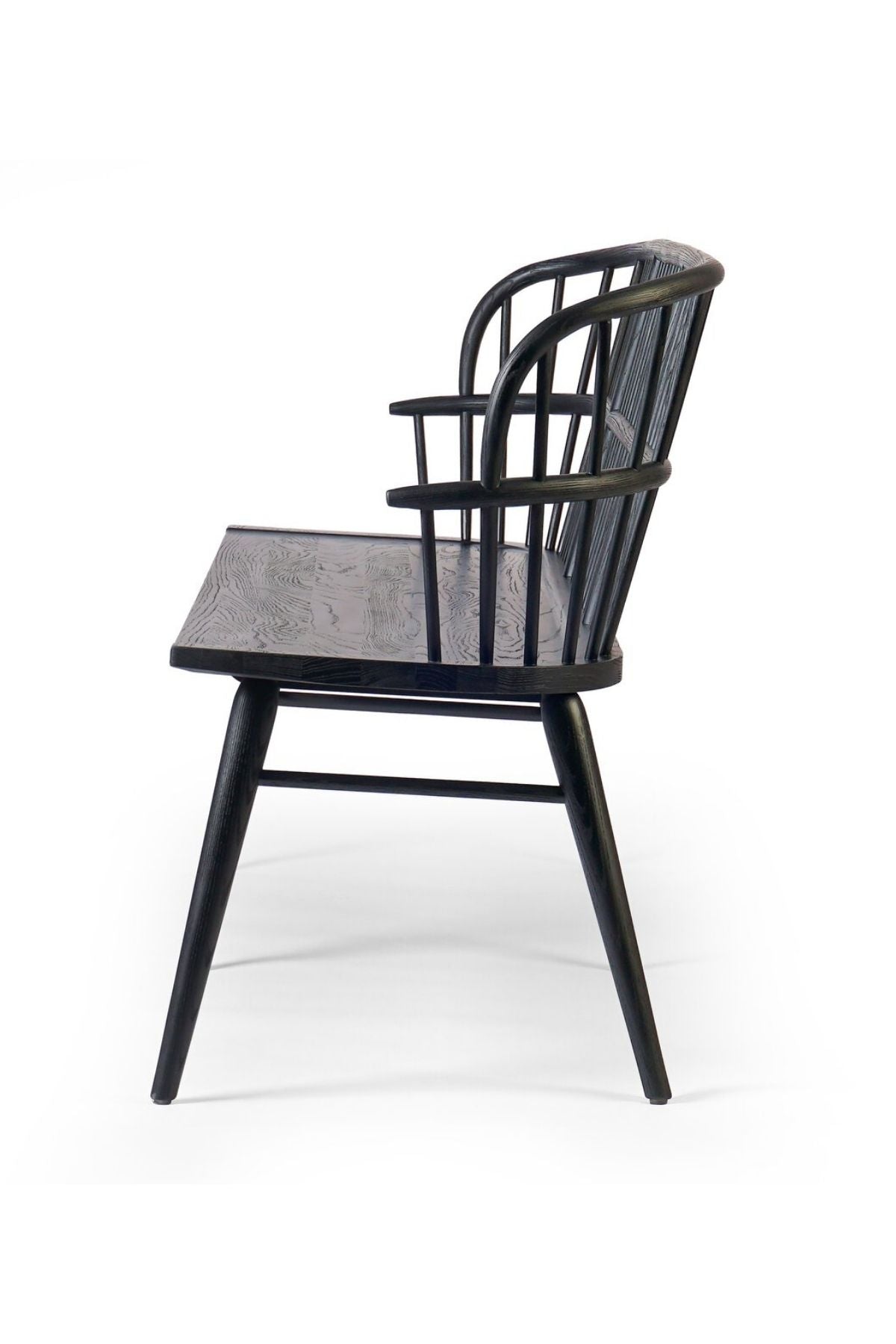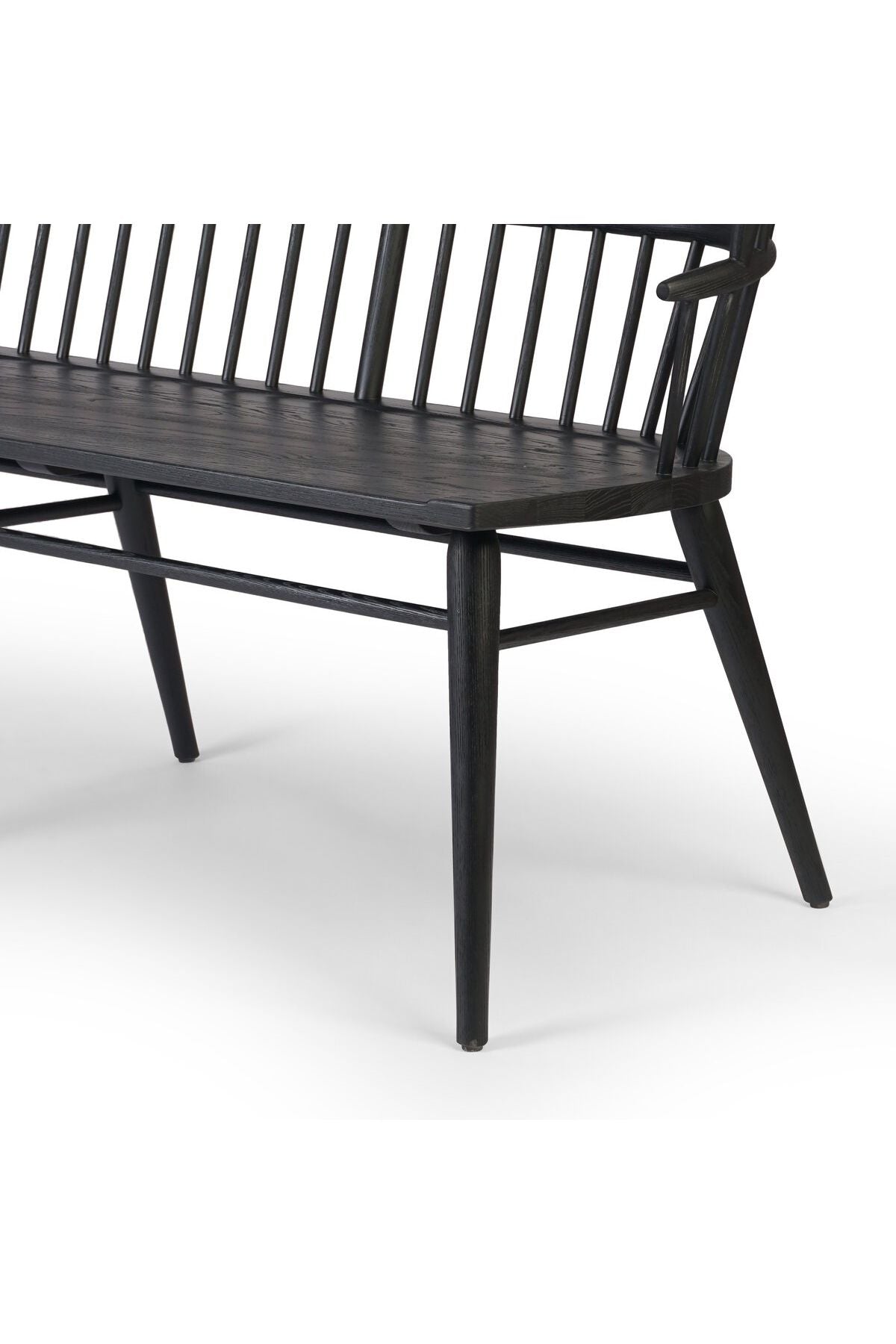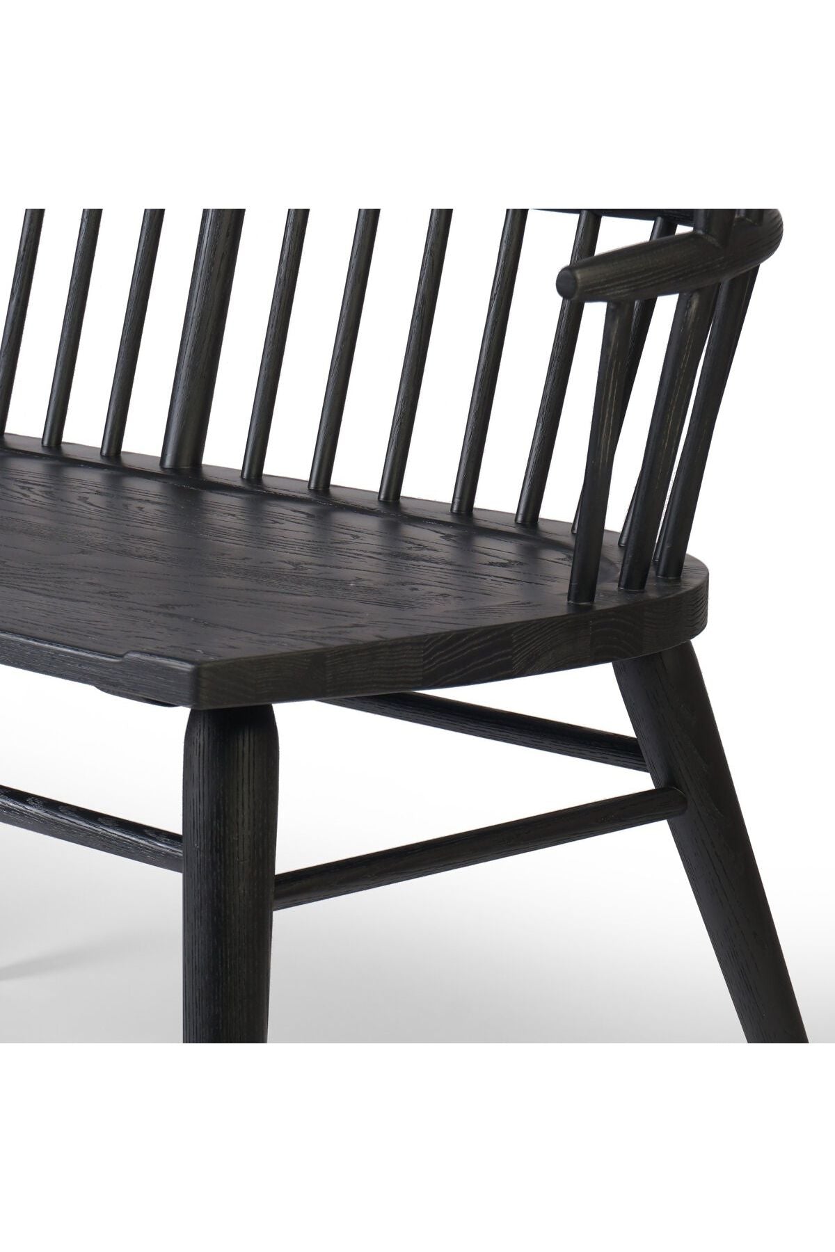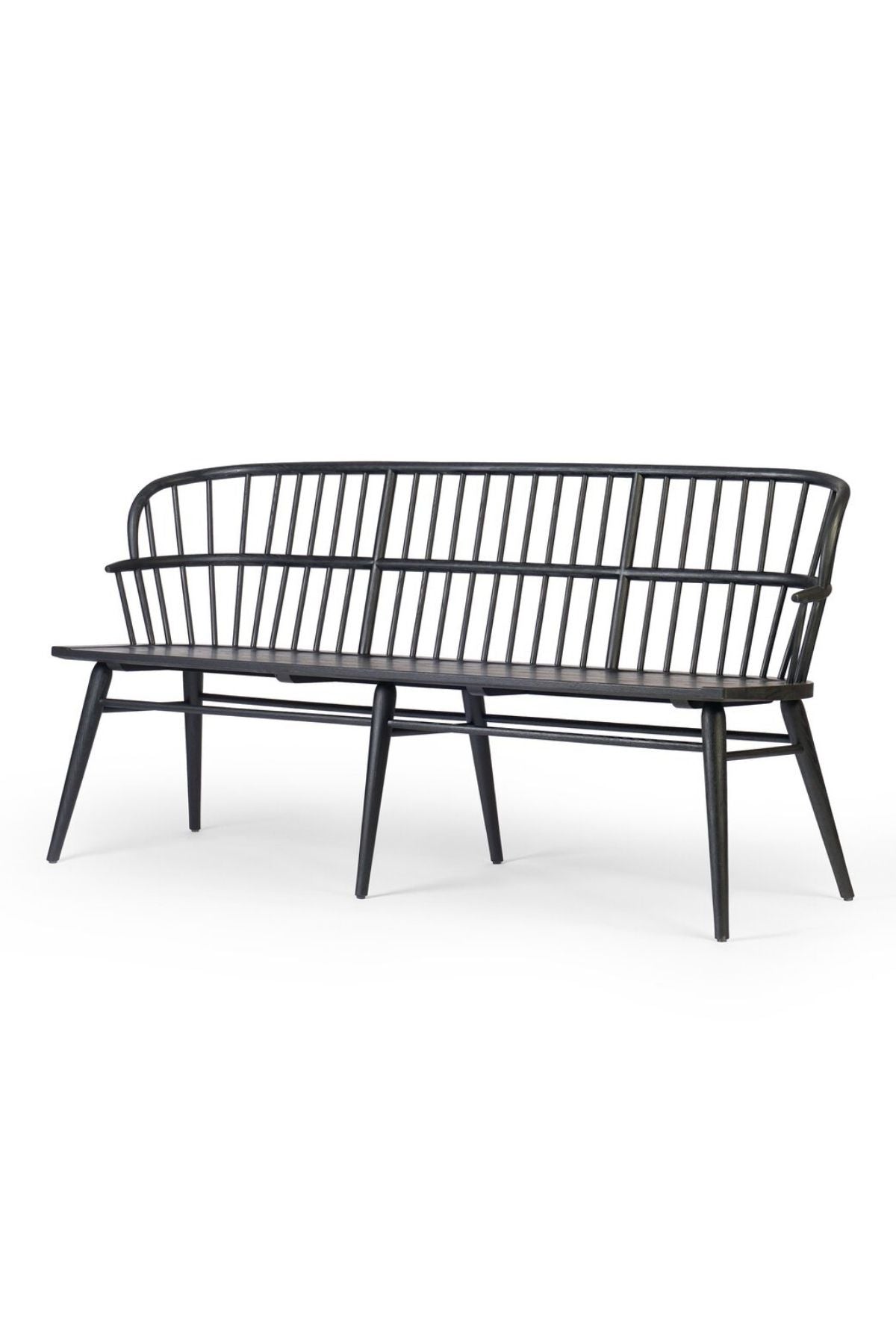 Meet the Connor Bench. The classic Windsor, modernized. Dining bench of black-finished solid ash features a double-tiered back and finely sculpted frame.