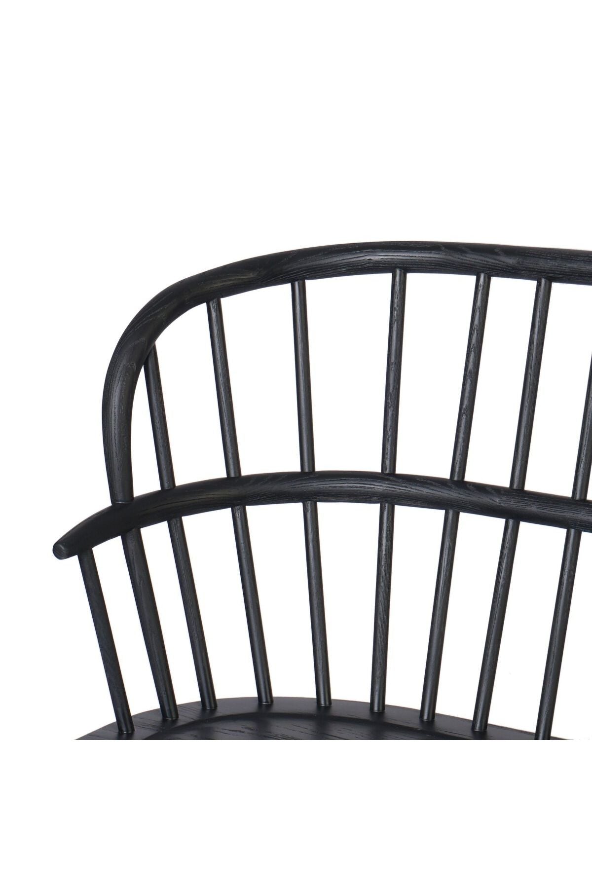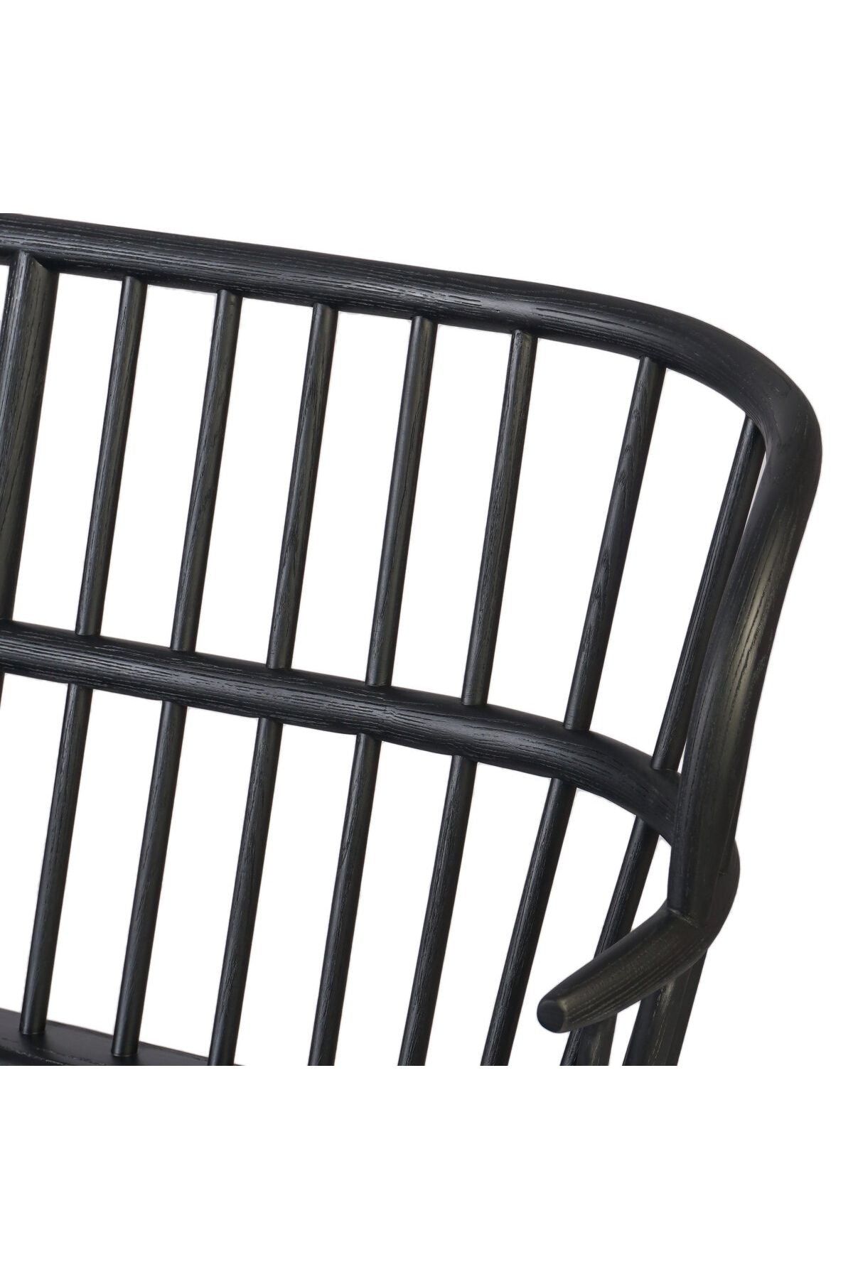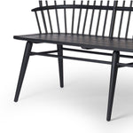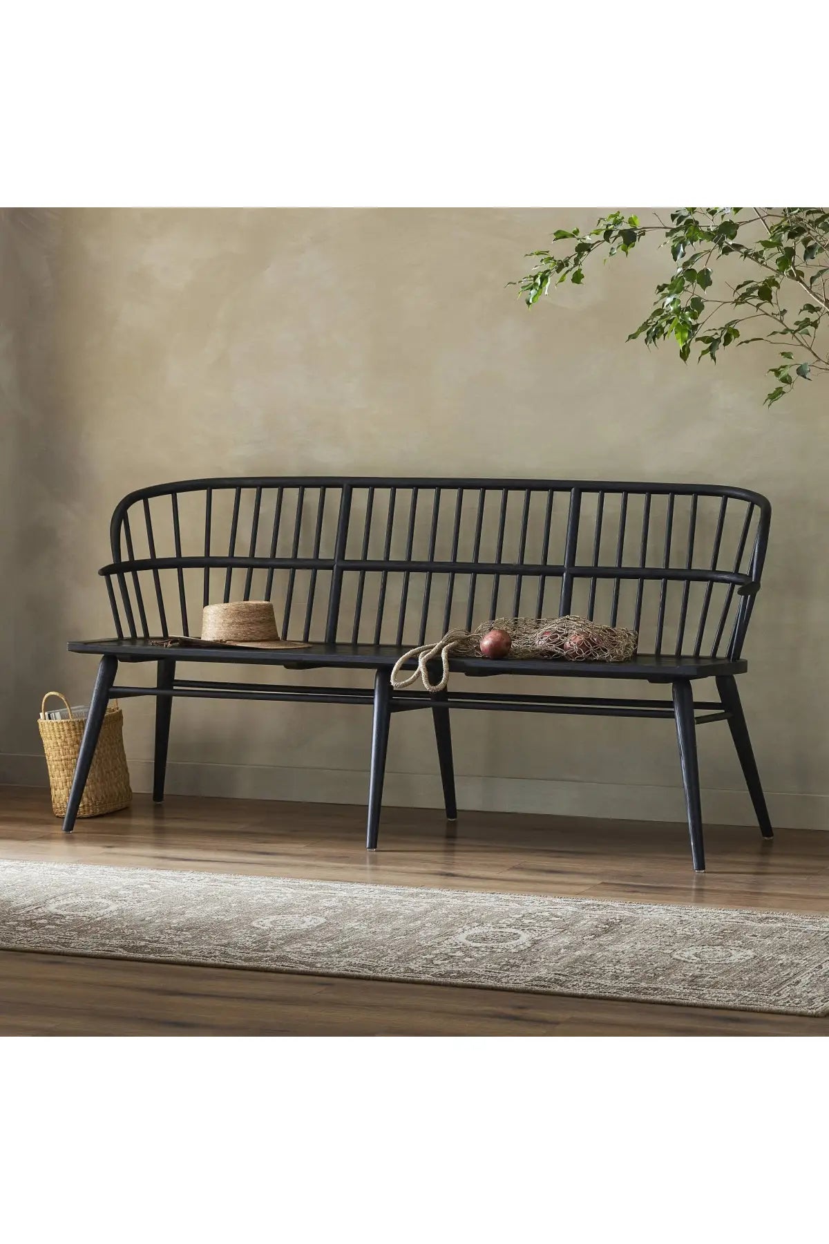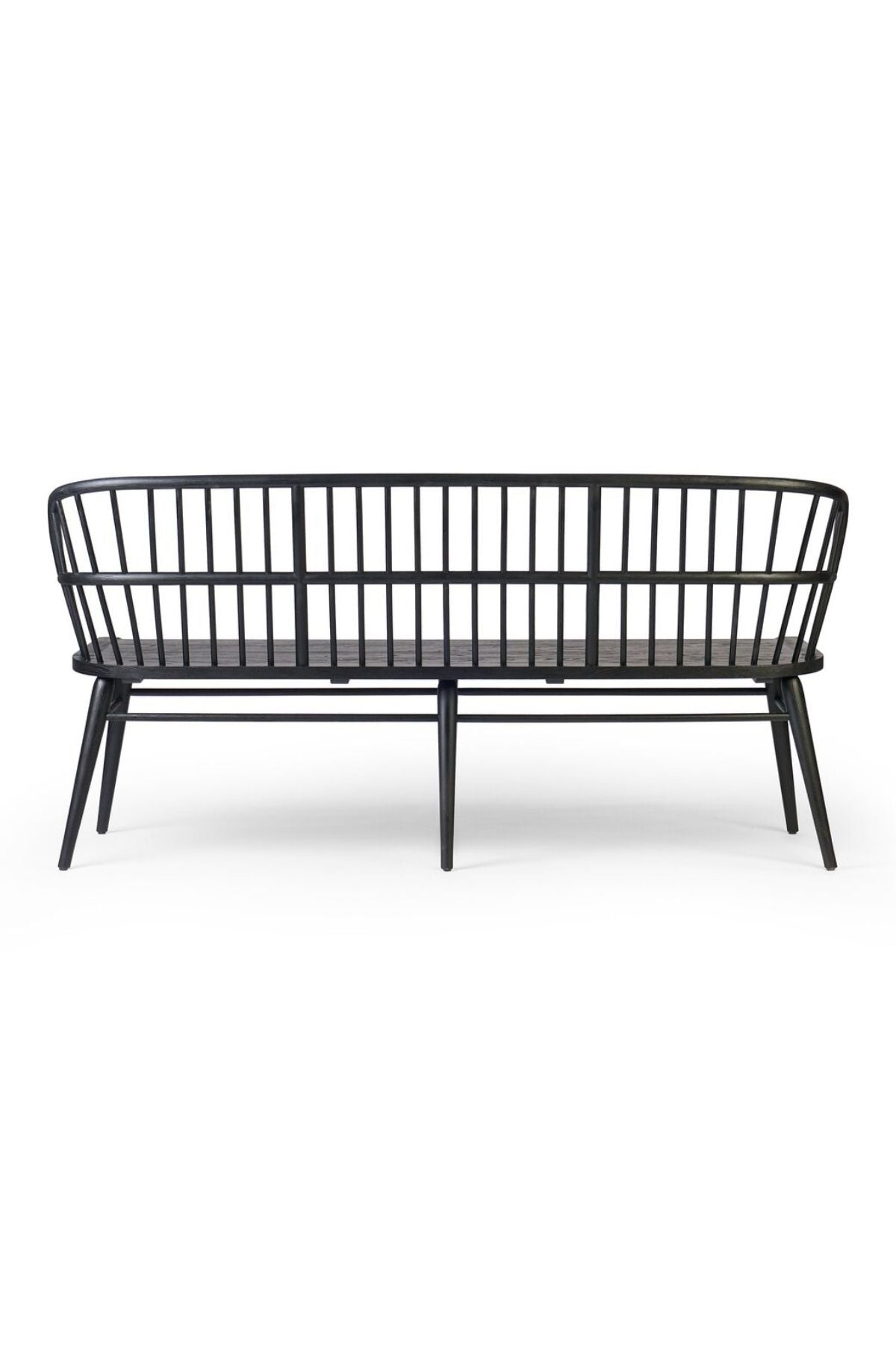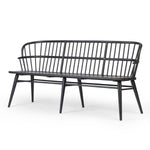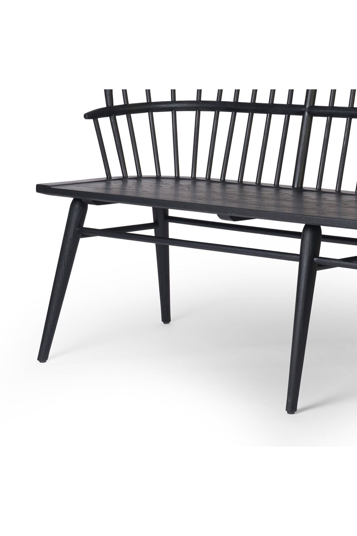 Meet the Connor Bench. The classic Windsor, modernized. Dining bench of black-finished solid ash features a double-tiered back and finely sculpted frame.
