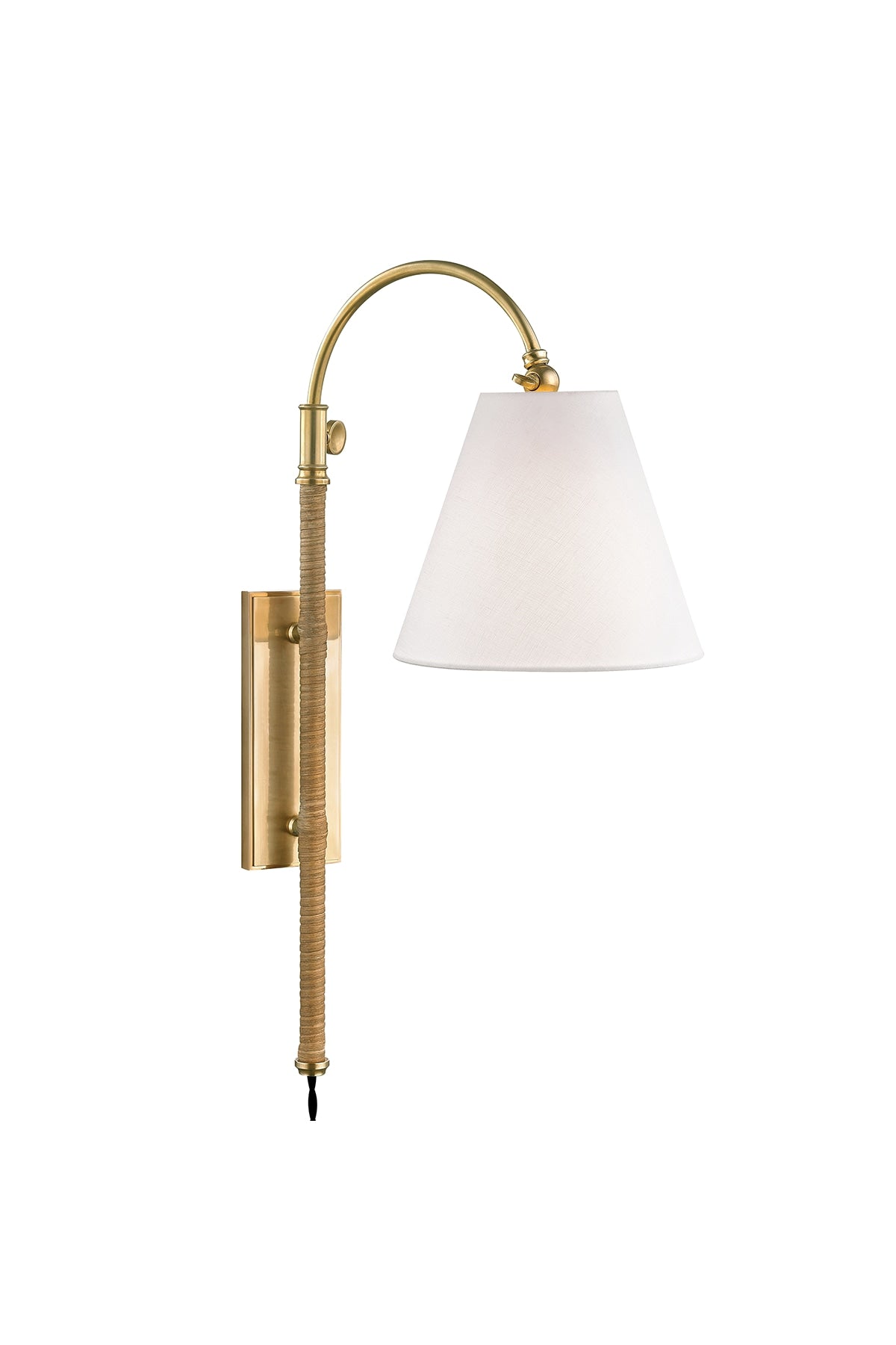 Meet the Curves No.1 Plug-In Sconce. Curves are found everywhere in nature, making them a universal sign of elegance employed in design through the centuries. Rattan along these curved arms adds beautiful texture from the natural world. Linen shades add another beautiful texture, a material of timeless elegance. Bulb(s) not included.
