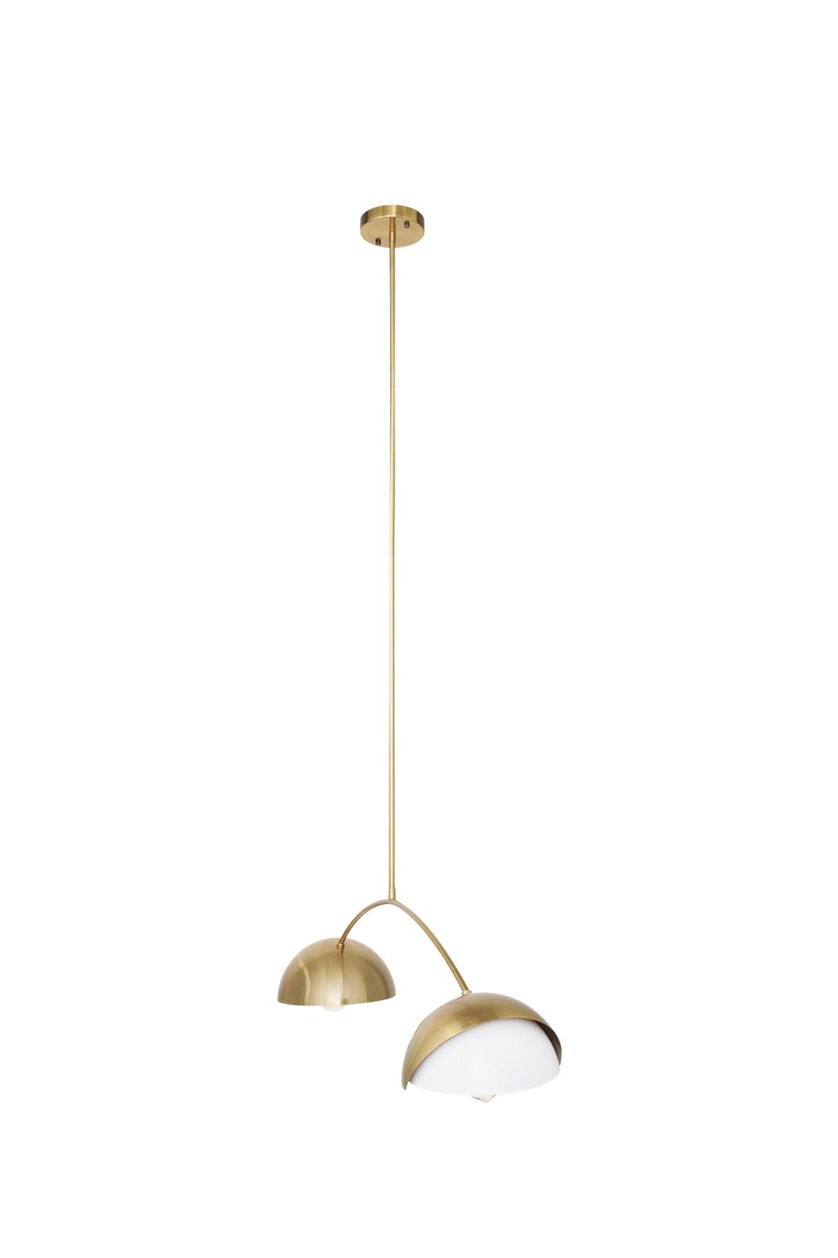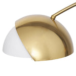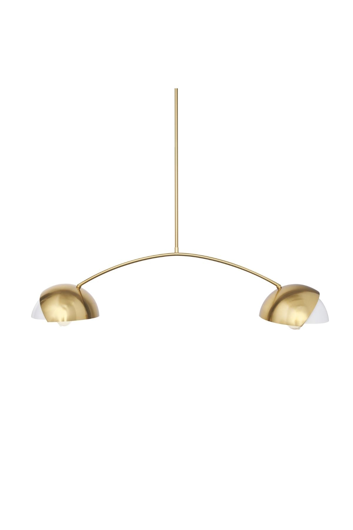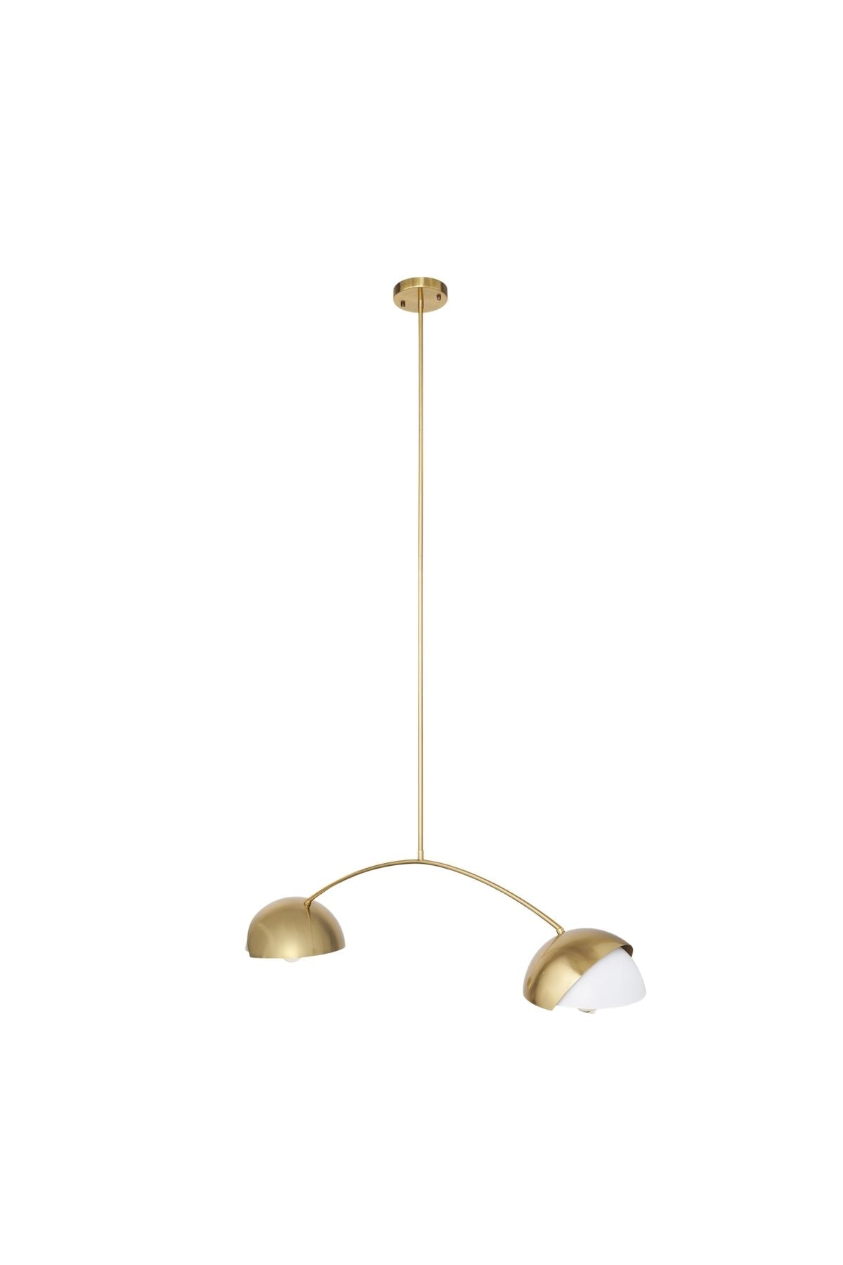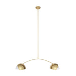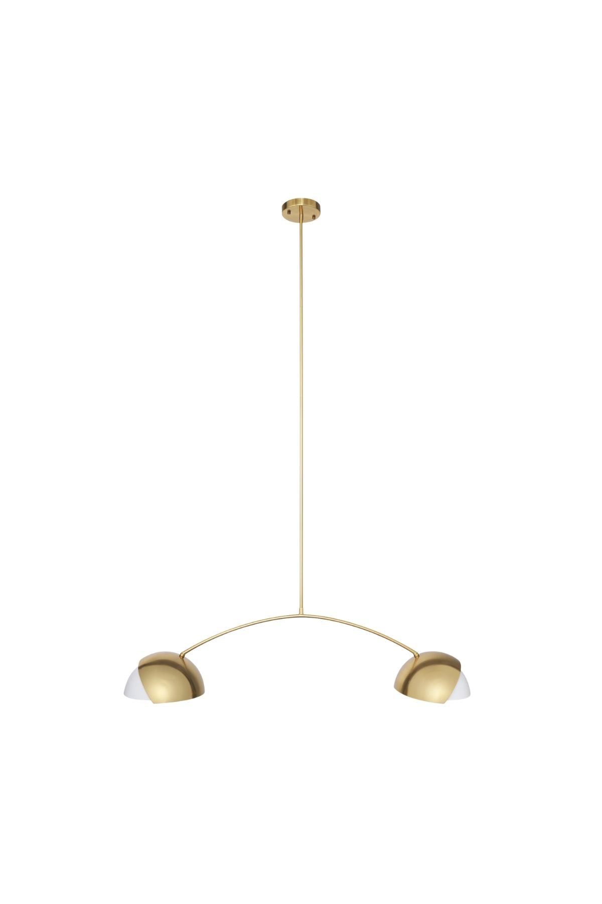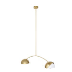 Meet the Cybill Chandelier. This chandelier exemplifies a modern design that combines sleek aesthetics with functional brilliance. Featuring a gold-finished iron metal frame and two powder-coated matte white metal shades, this chandelier exudes an understated elegance that complements various interior styles. Bulb(s) not included.