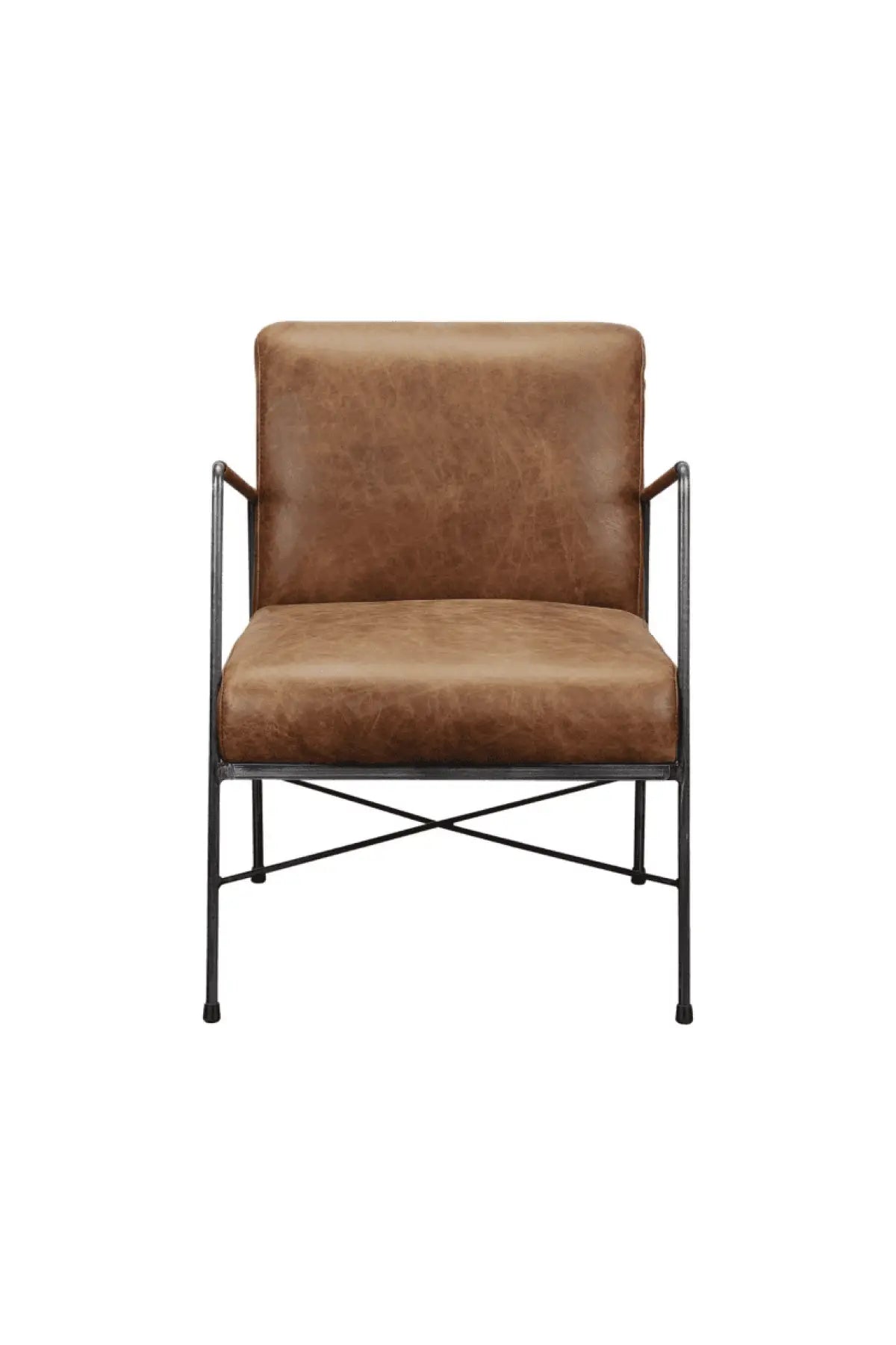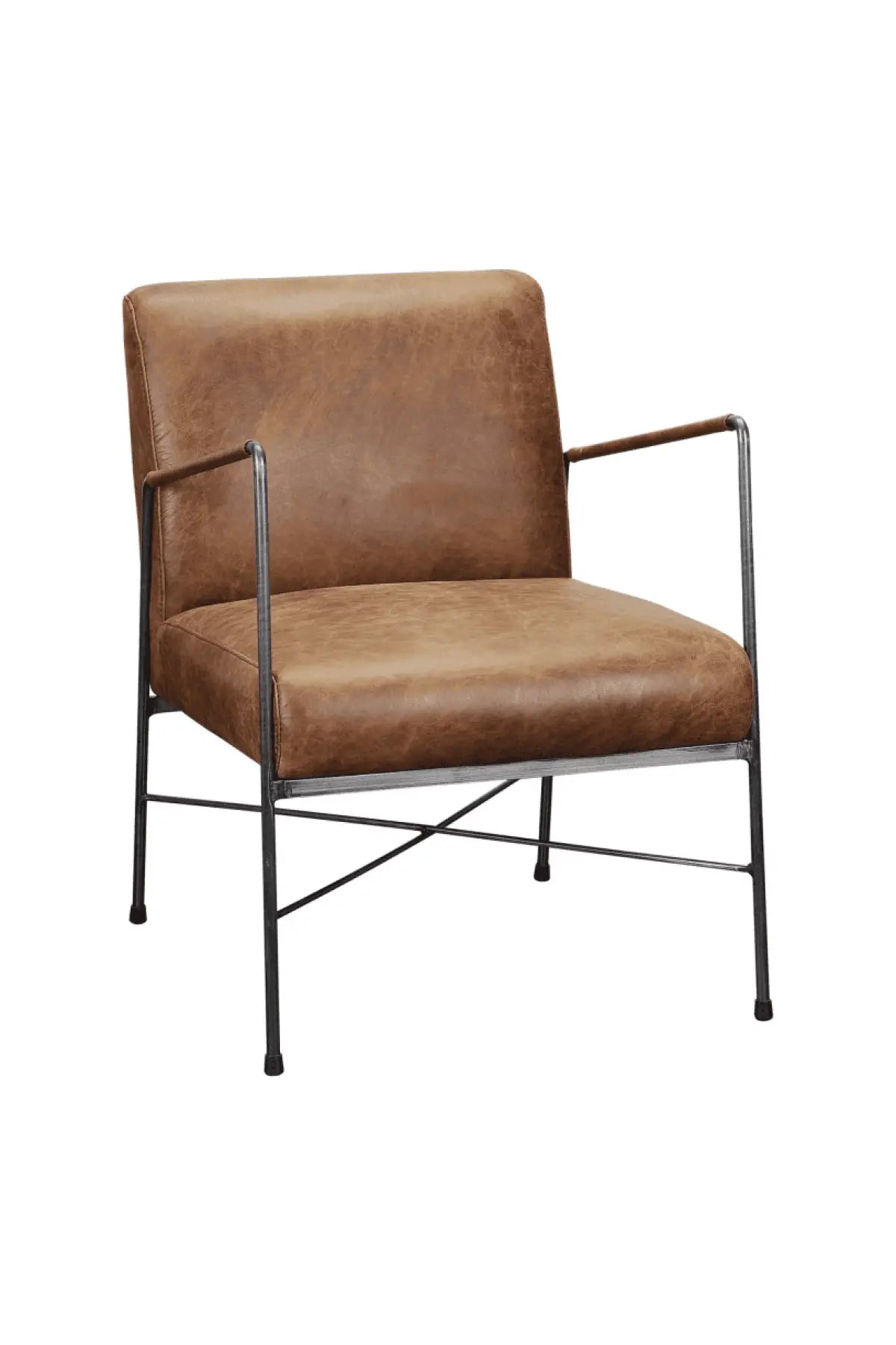 Teetering between industrial and minimalist design, the Dagwood Leather Armchair is the perfect addition to your space. Its clean design ties together an earthy color palette with its warm top-grain leather. A slim, iron frame completes the look.