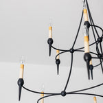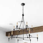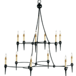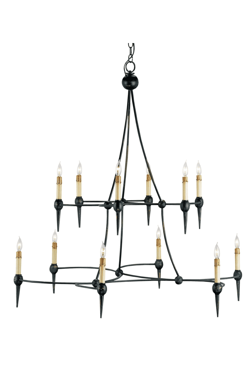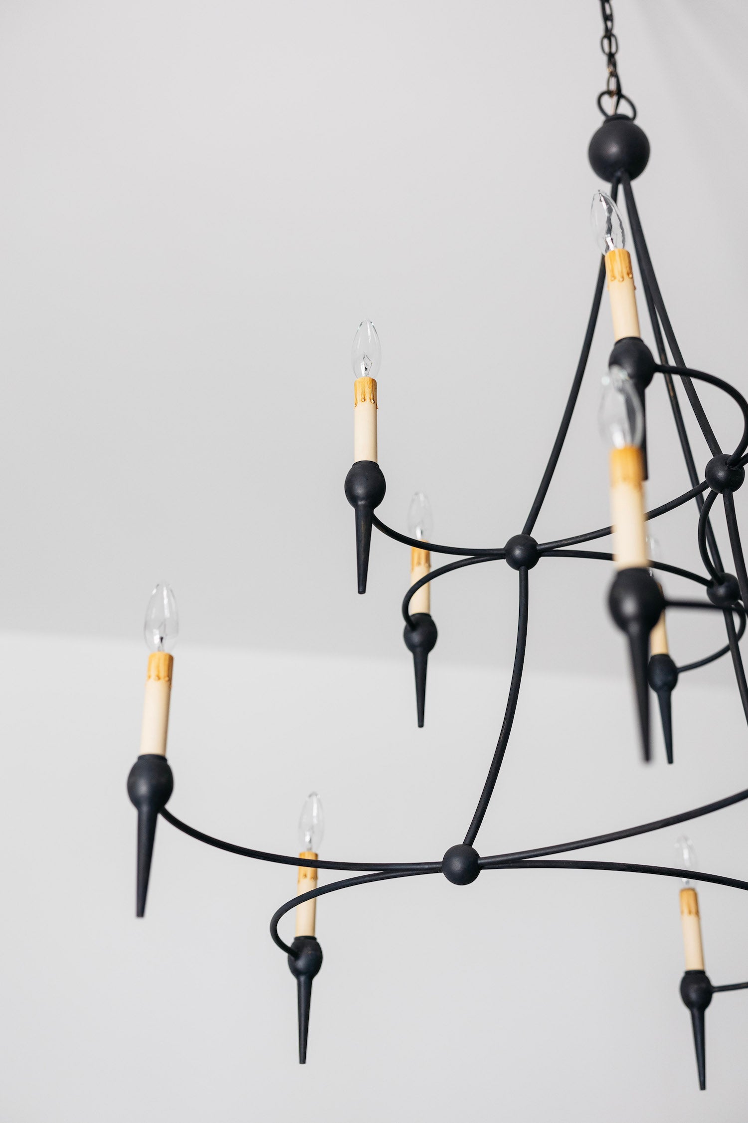 Like intersecting planets involved in their orbits, the U-shaped wrought iron arms of the two-tiered Danielli Chandelier gracefully converge to raise twelve points of light. A French black finish serves as a sophisticated element on this black chandelier, as does the lightness of its profile. Bulb(s) not included.