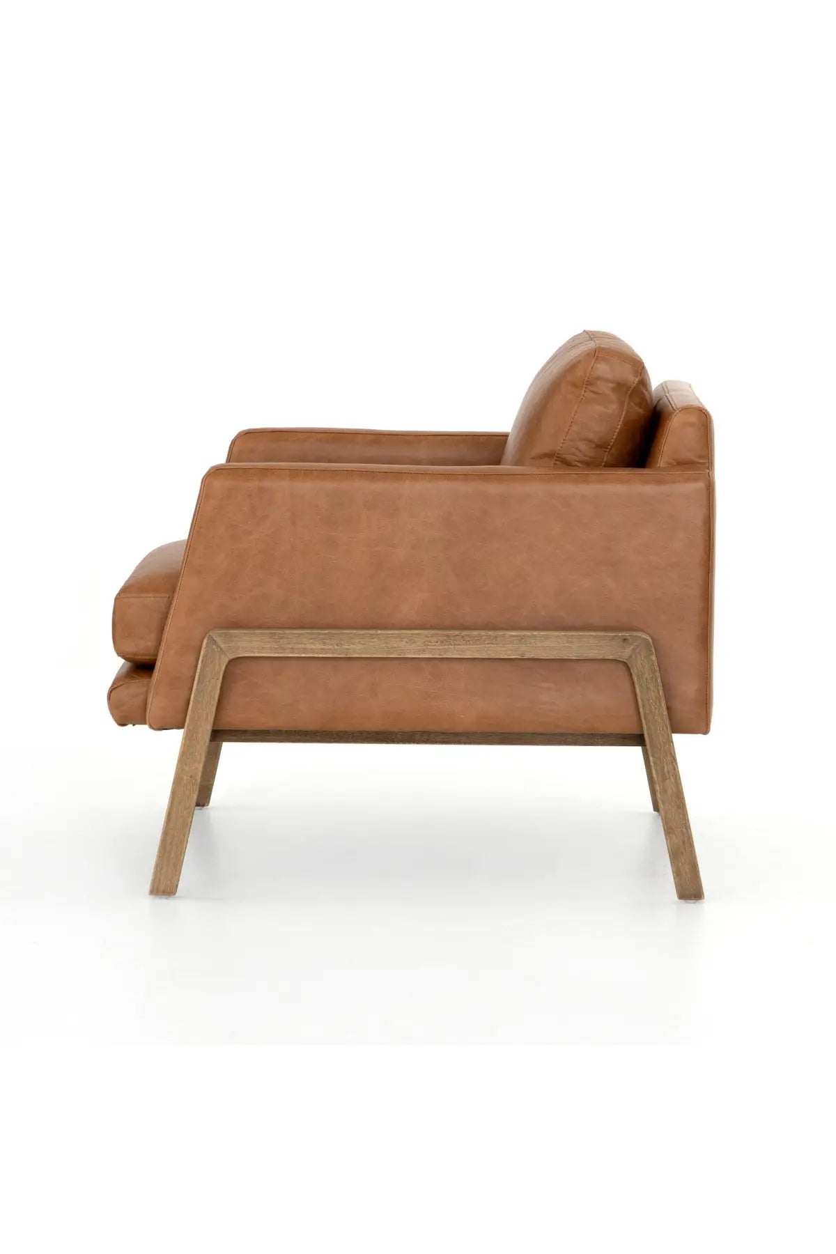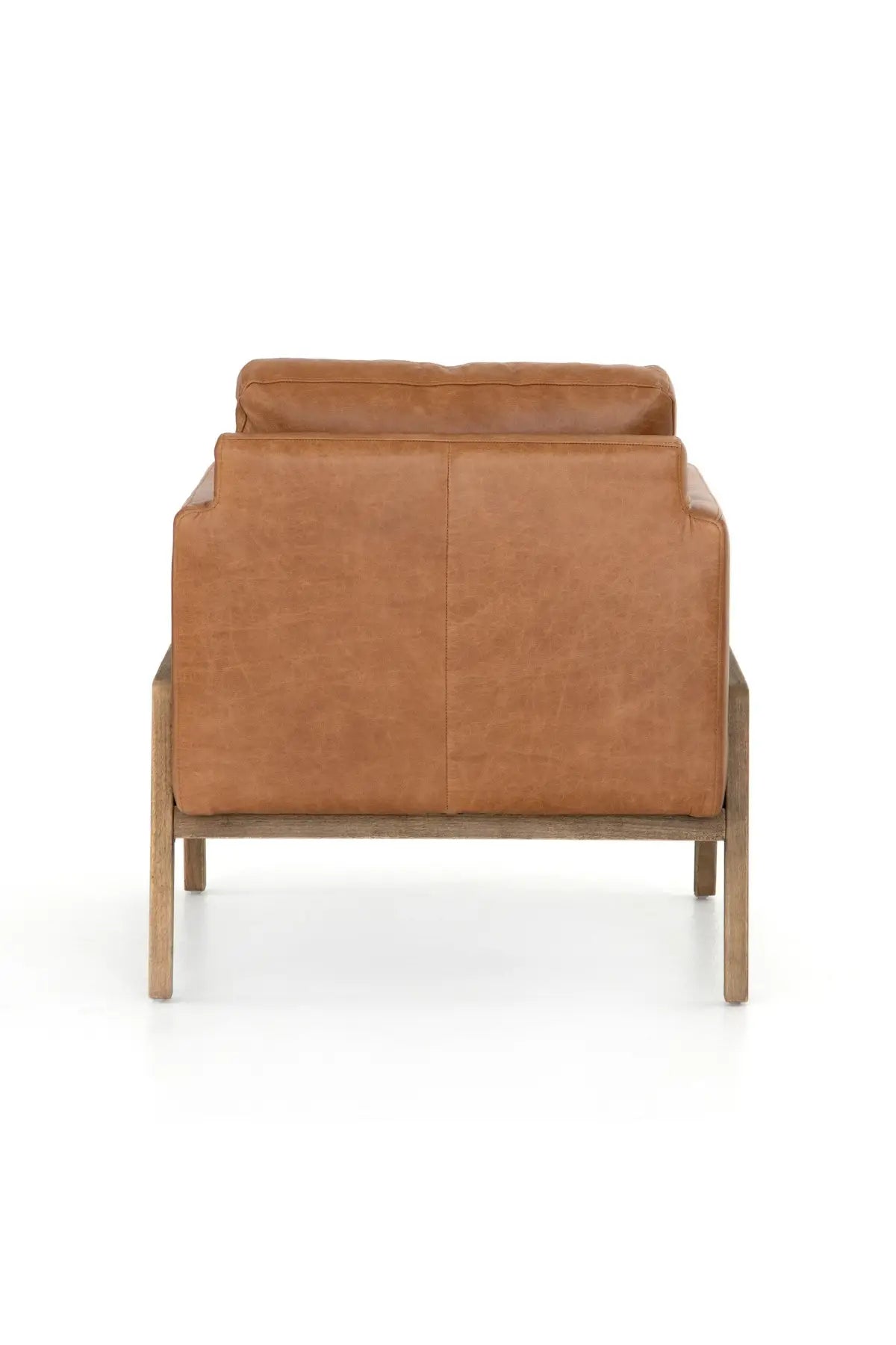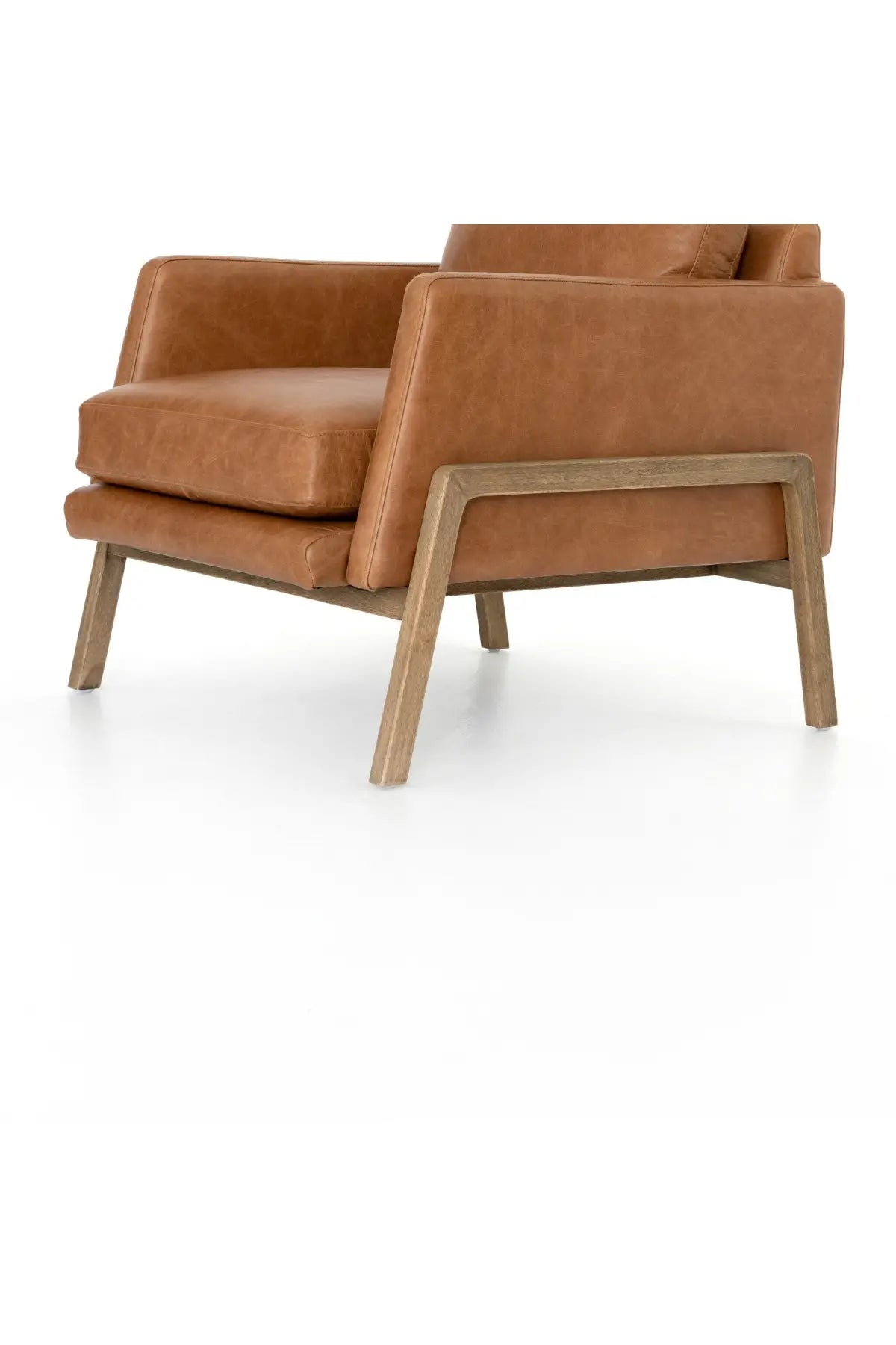 The Diana Chair is effortlessly cool. Upholstered in a butterscotch top-grain leather, angular track arms complement supple cushioning, with exposed parawood framing delivering the drama.