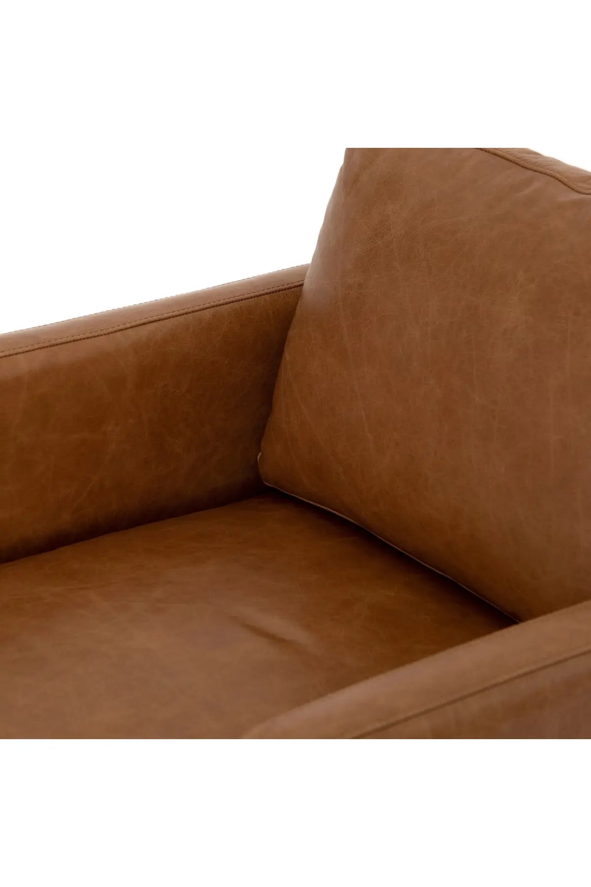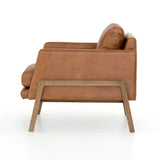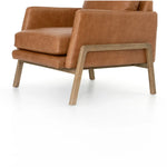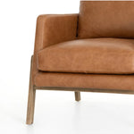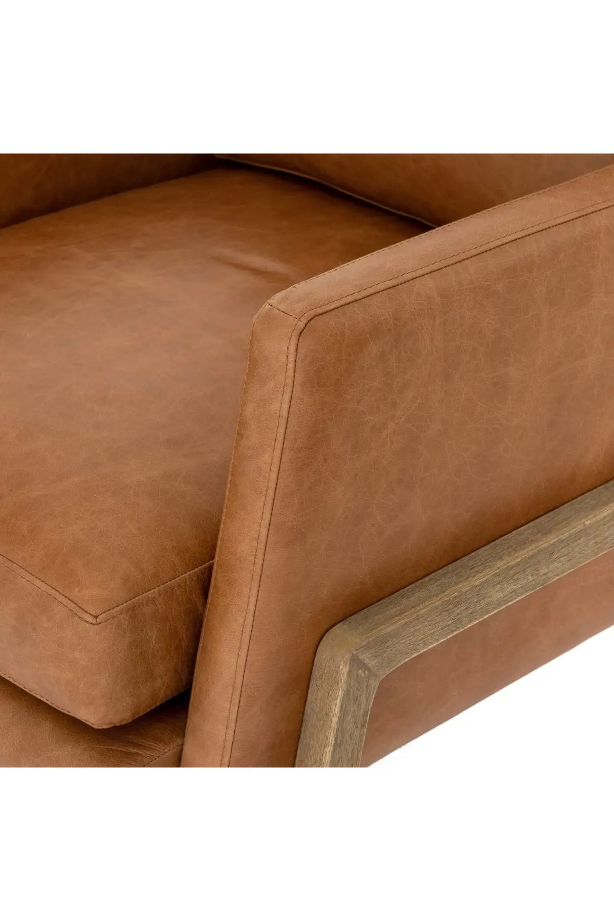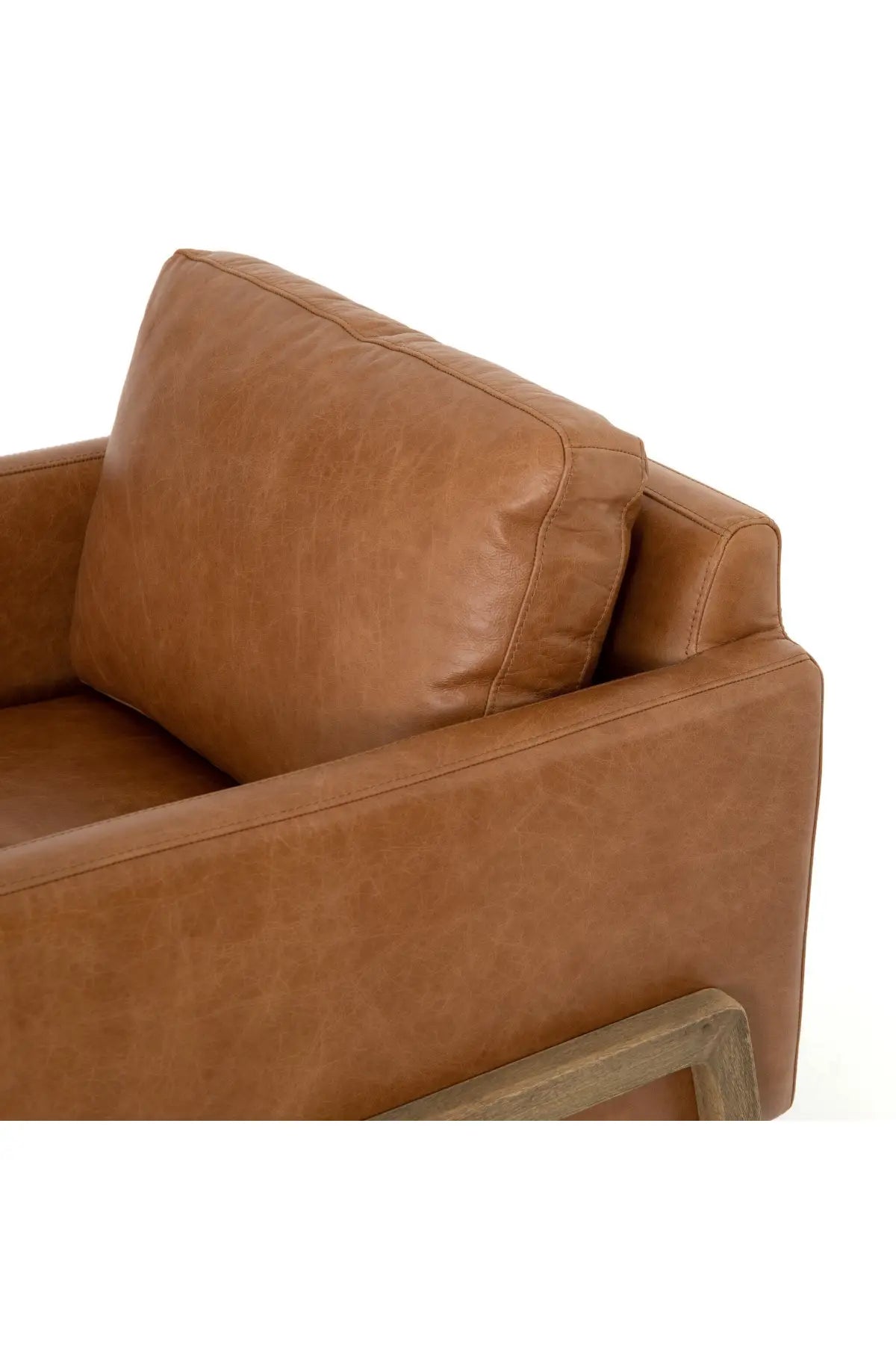 The Diana Chair is effortlessly cool. Upholstered in a butterscotch top-grain leather, angular track arms complement supple cushioning, with exposed parawood framing delivering the drama.