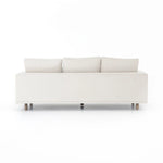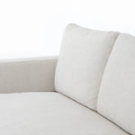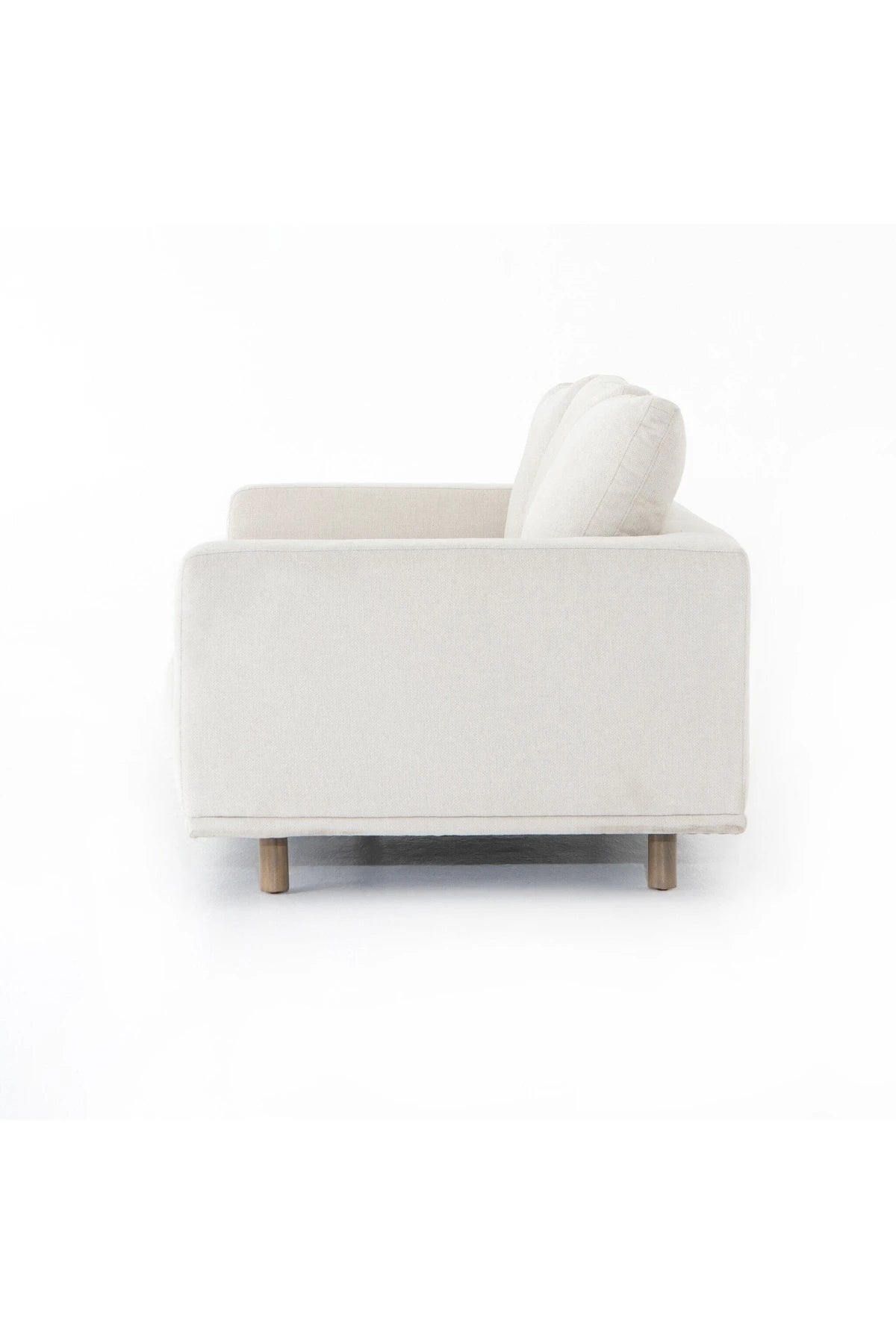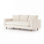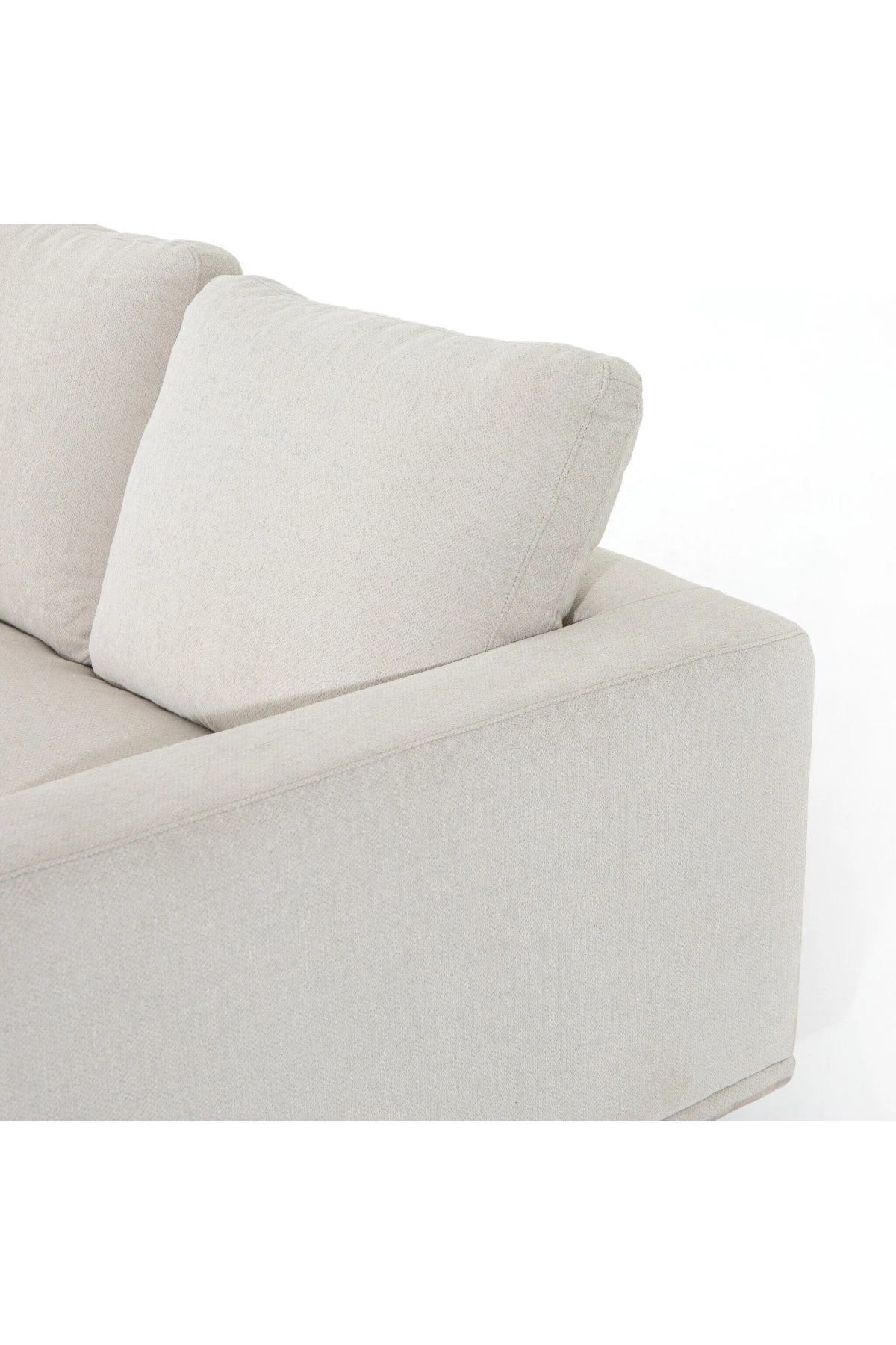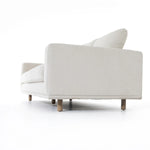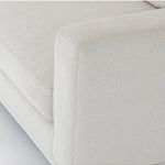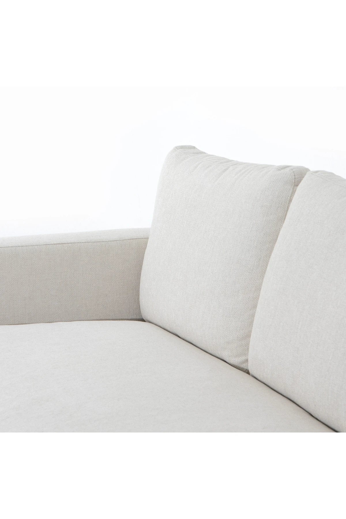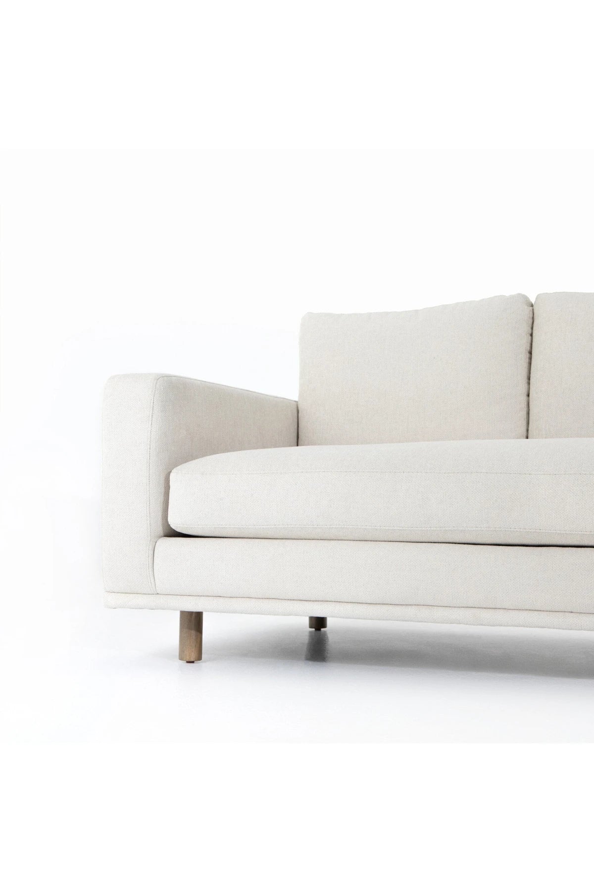 Meet the Dom Sofa. Performance-grade fabric brings surprising livability to a show-stopping silhouette. Pristinely tailored ivory upholstery exudes elegance, with clean track arms and loose feather-blend cushioning for total comfort.