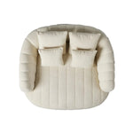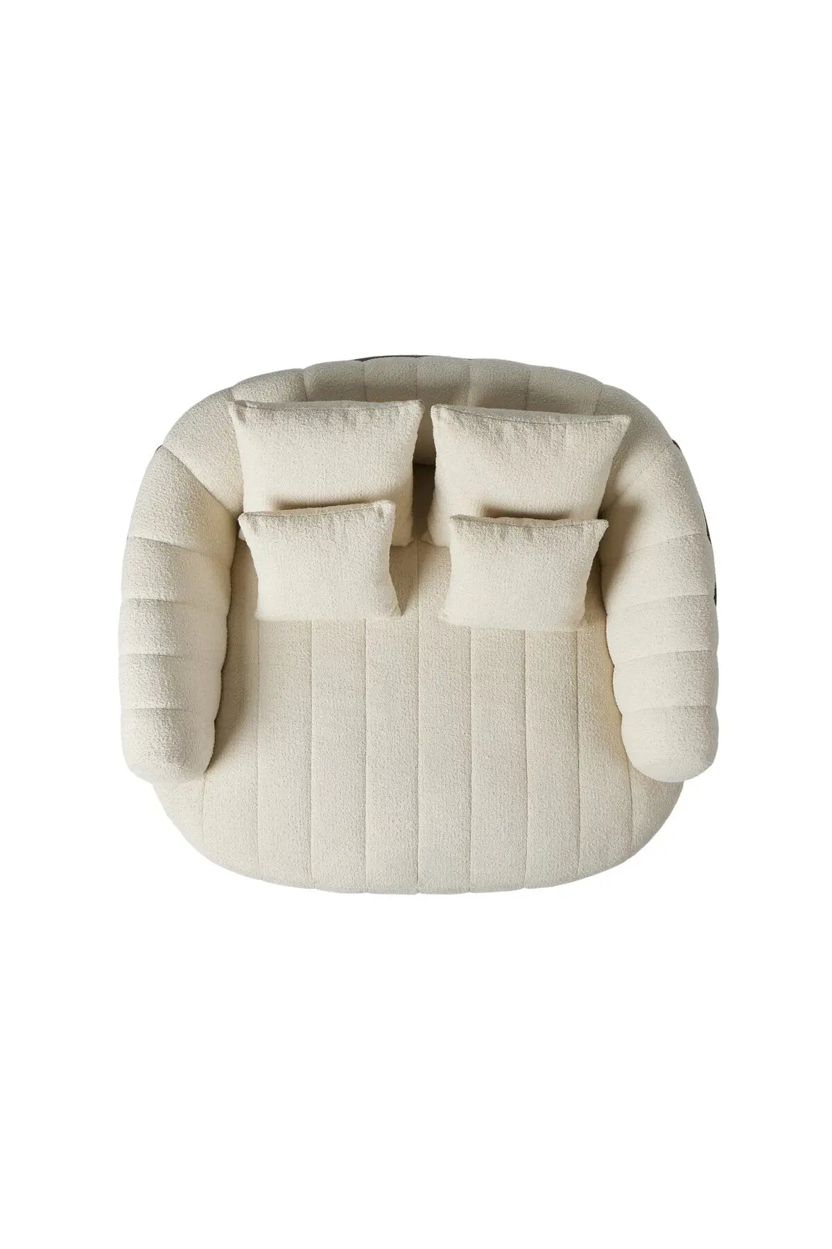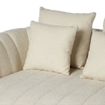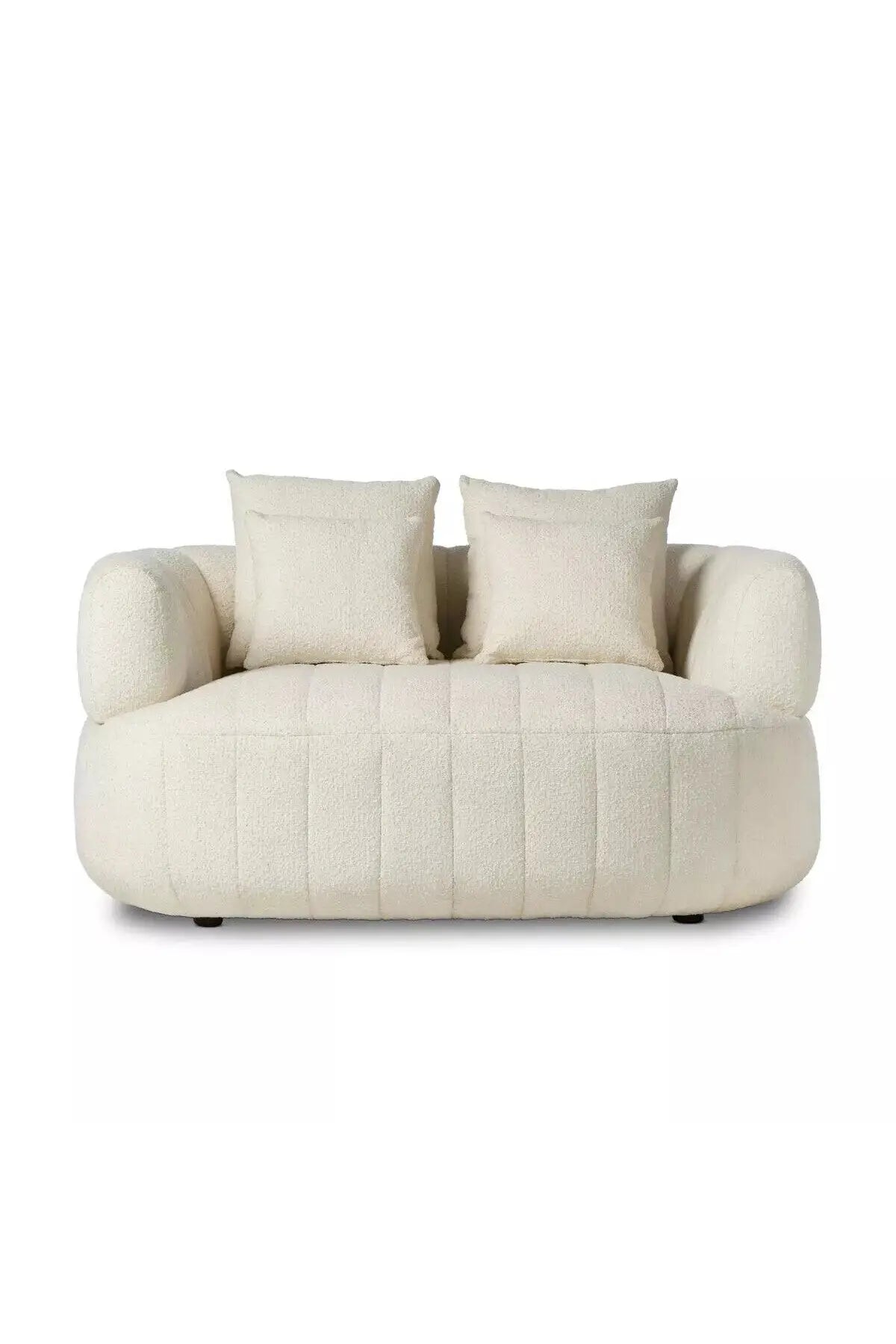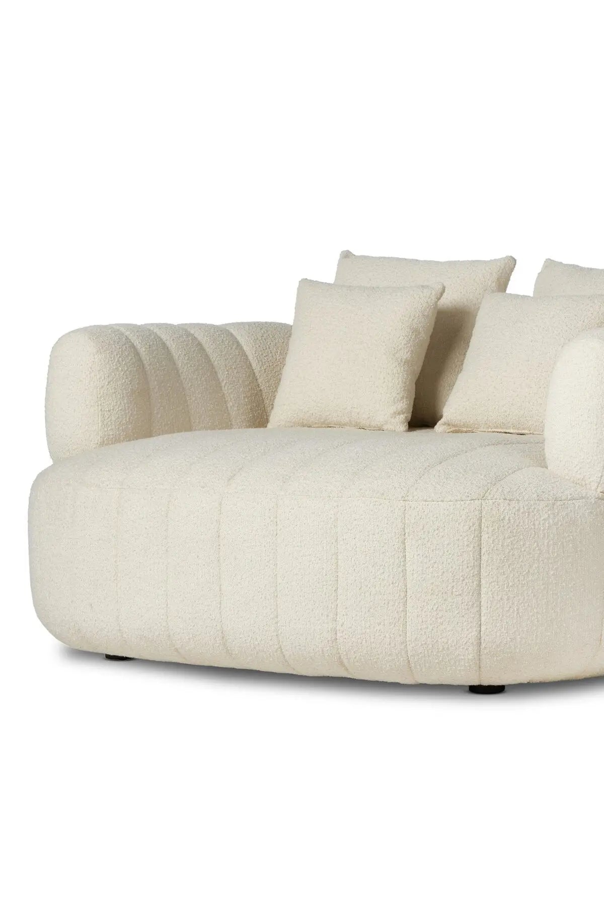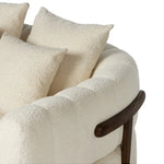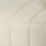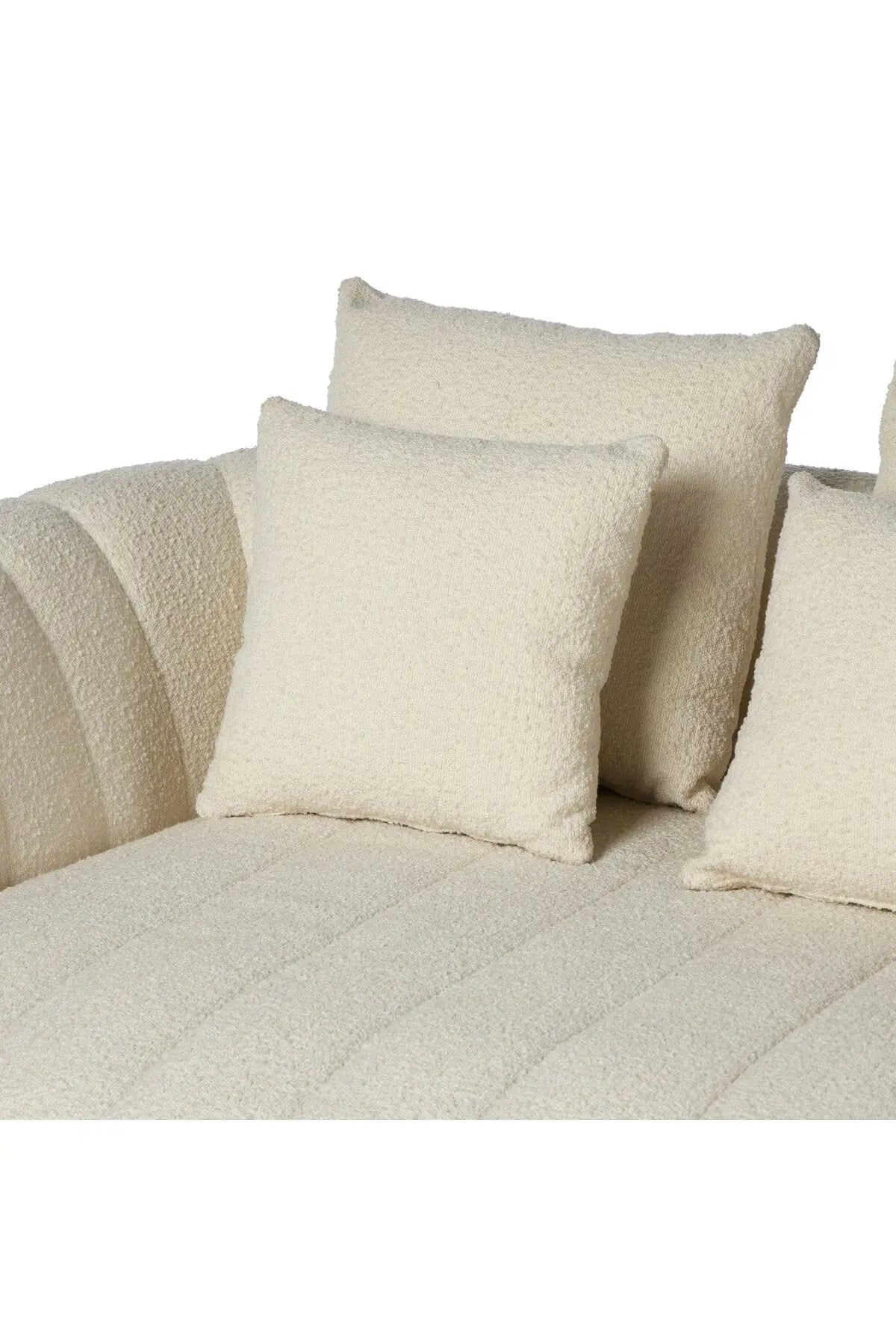 Framed in oak, the Doss Media Lounger is constructed with two separate pieces — the seat and the back — and accompanied by four toss cushions. The lounger features evenly spaced spring suspension and a heavy boucle upholstery stitched into 5.5-inch channels for stylish comfort.