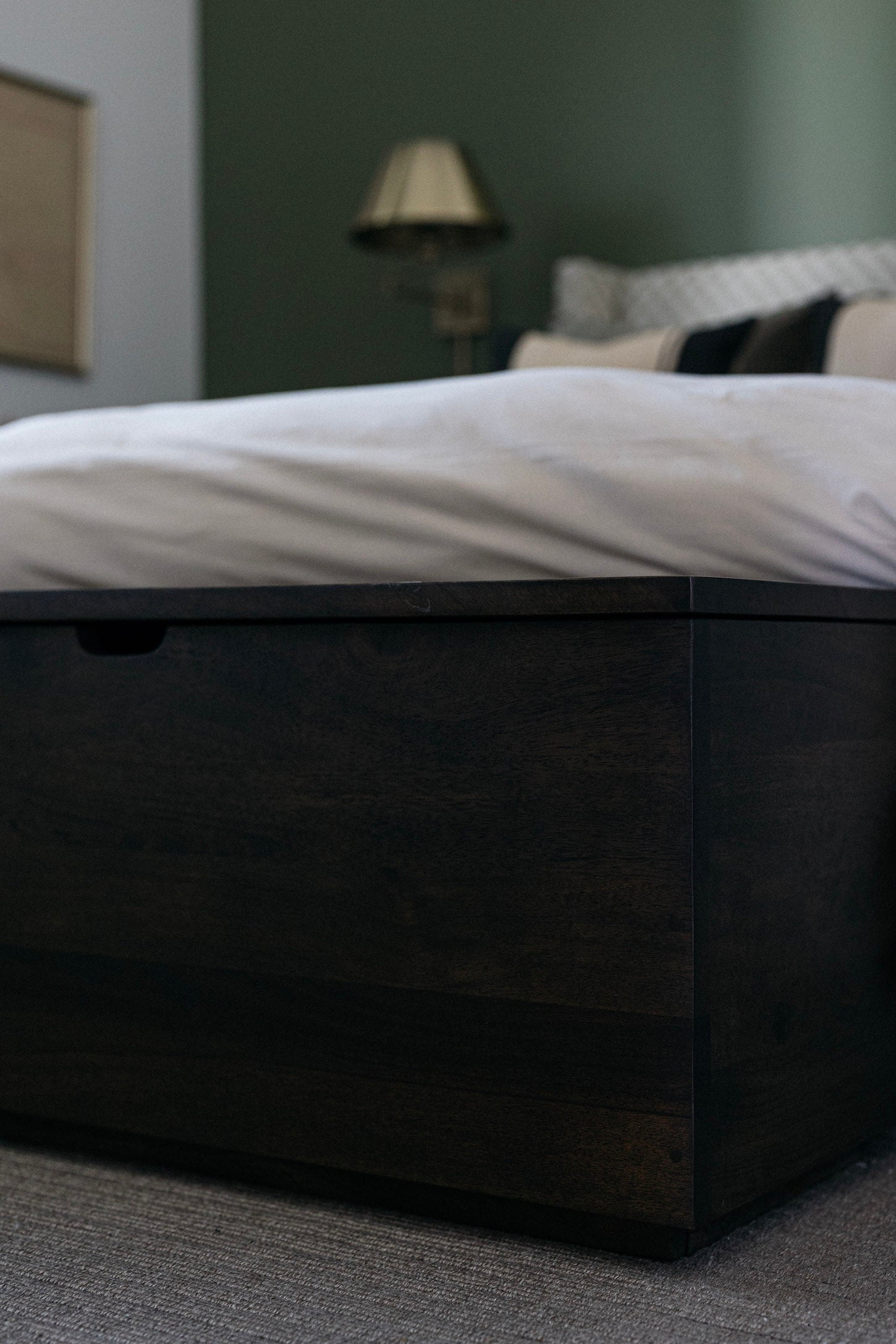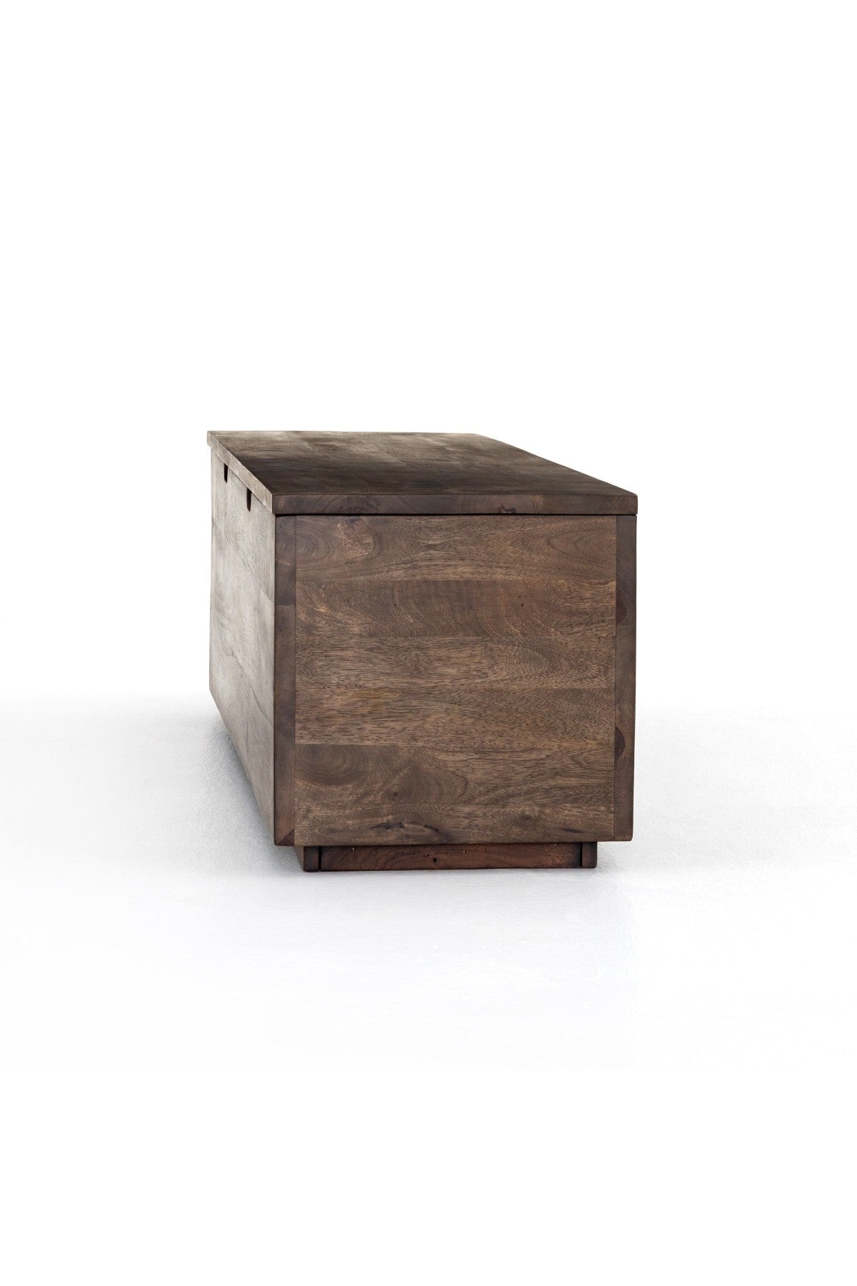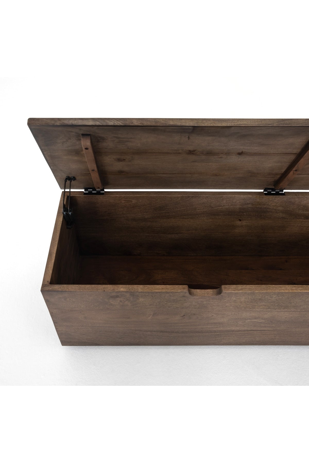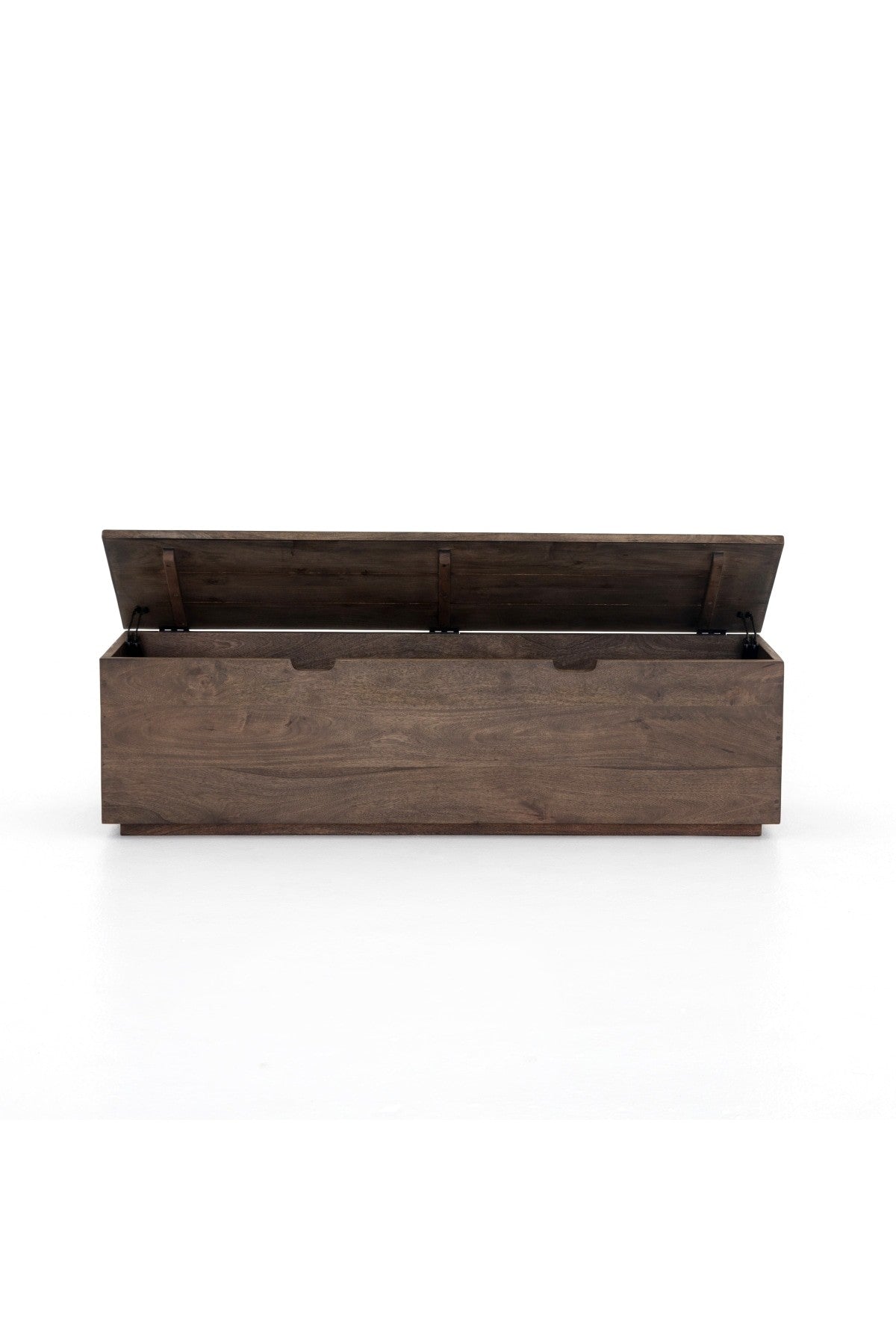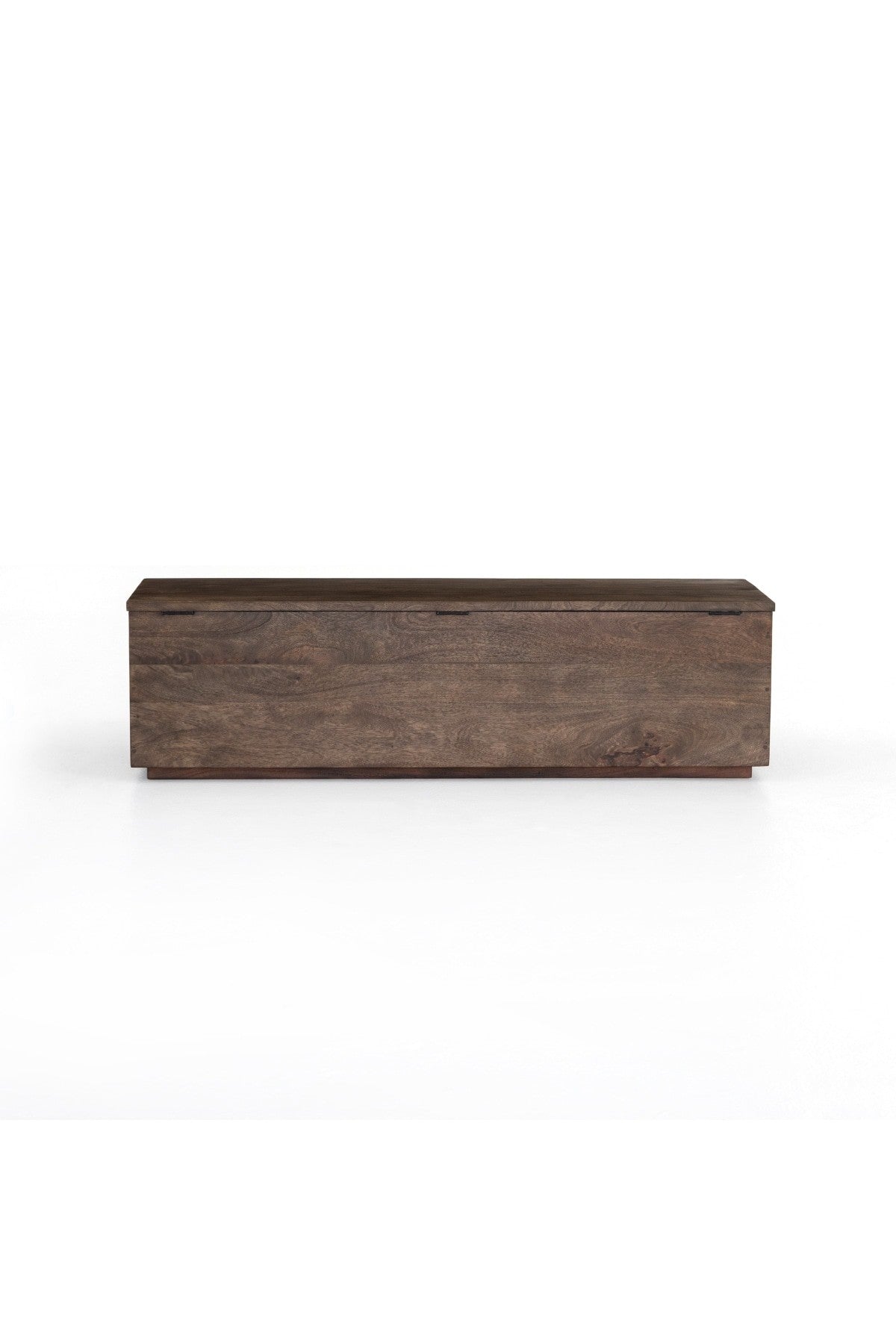 Meet the Duncan Trunk. Rich, reclaimed woods deliver depth beyond streamlined shaping. Aged brown tones reveal natural knots and graining for a distinctively found feel. Spacious trunk space perfect in entryway or at the foot of the bed. Plinth base adds a modern touch.