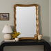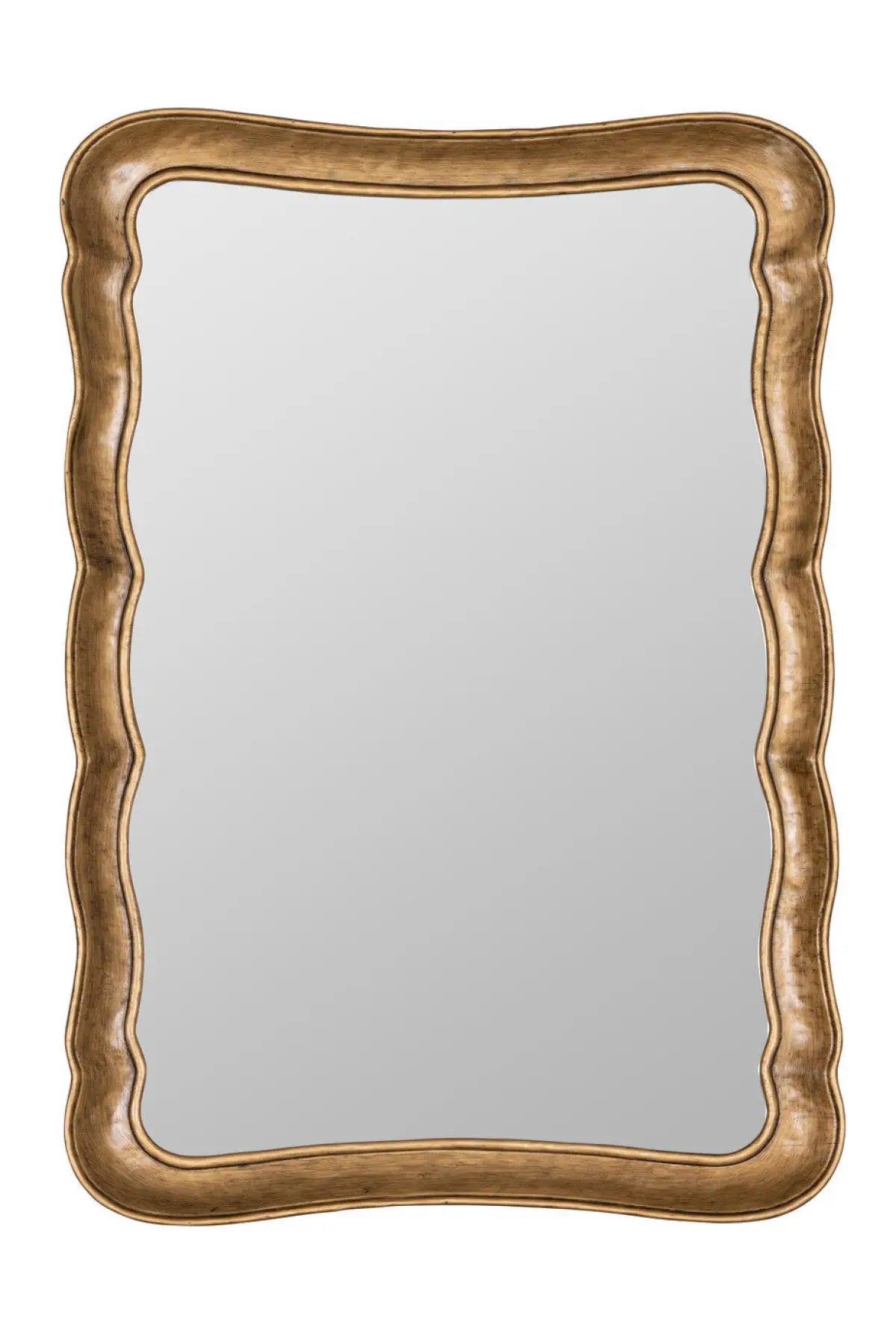 This lavish Elligton Wall Mirror boasts a sleek, wavy design with a luxurious gold trim. Masterfully crafted, it reflects beauty and sophistication in any room. Elevate your space with this elegant and timeless piece. Can be hung vertically or horizontally to suit your space. Wipe clean with a lint free, dry cloth. Hangs with D-Ring.