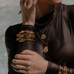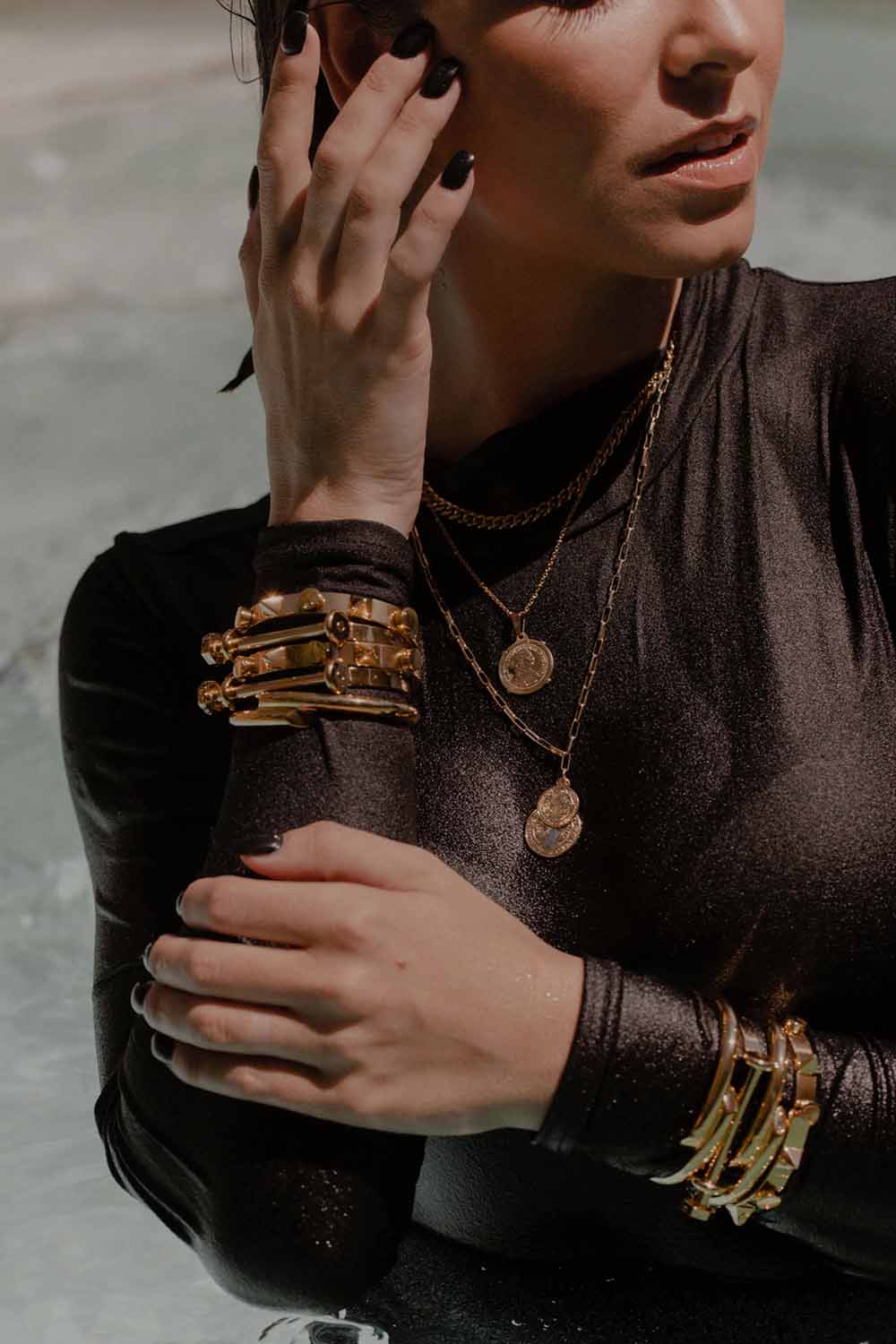 The Reserve Collection was designed by us and is made to last! Staple pieces that are hypoallergenic, water and tarnish resistant, ultra durable and 18K gold plated stainless steel. Intended to stack, elevate and stand the test of time.