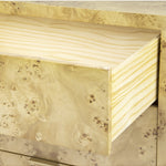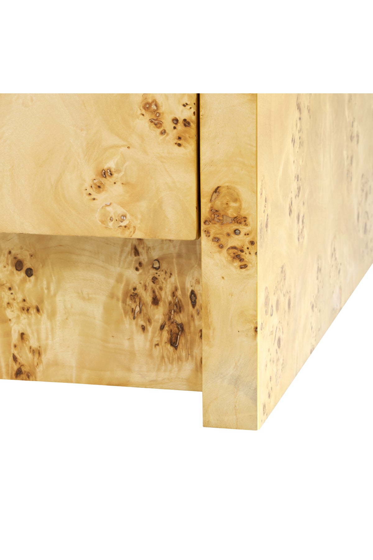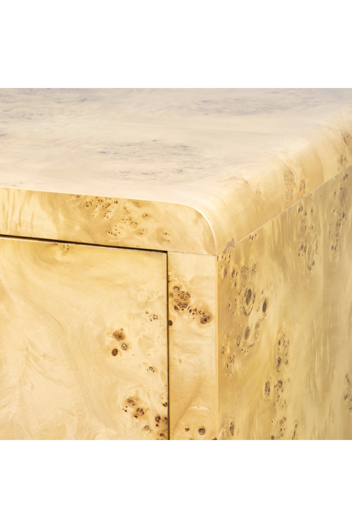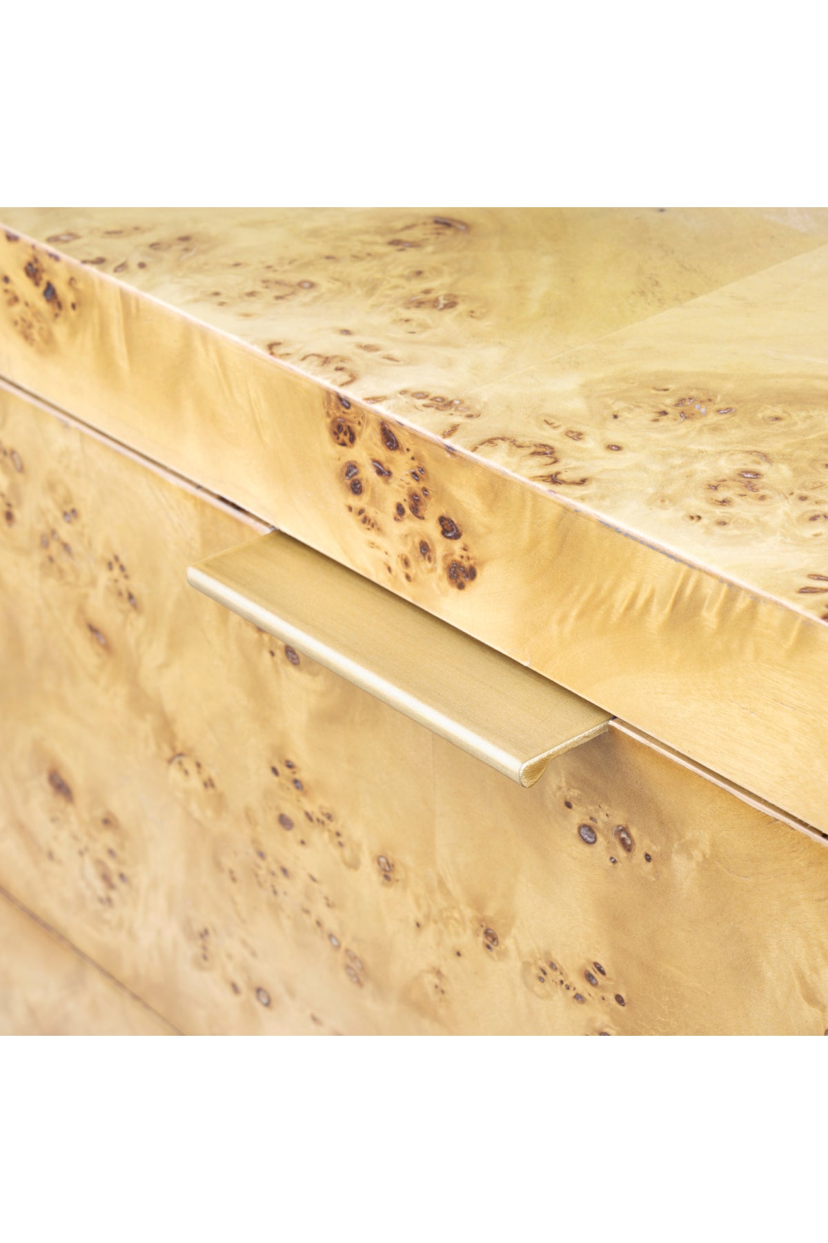 Meet the Emil 6-Drawer Dresser. The naturally vibrant patterns found in burl wood have a distinctively 1970s feel—all kaleidoscopic swirls with a bold sense of cool. The Emil Dresser epitomizes timeless chic. Its seamless, curved design pays homage to the beloved vintage waterfall table style, housing six spacious drawers adorned with brushed brass edge pulls.