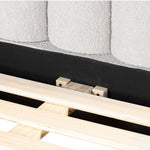 Channel surf on the Emma Bed. Parawood legs run the height of a heavily channeled headboard, for a lengthy look with textural depth. Performance fabrics are specially created to withstand spills, stains, high traffic and wear, ensuring long-term comfort and unmatched durability. Slats included.