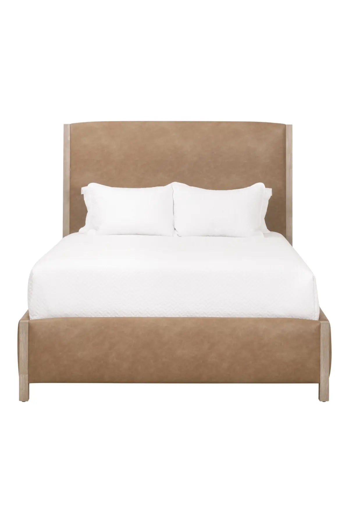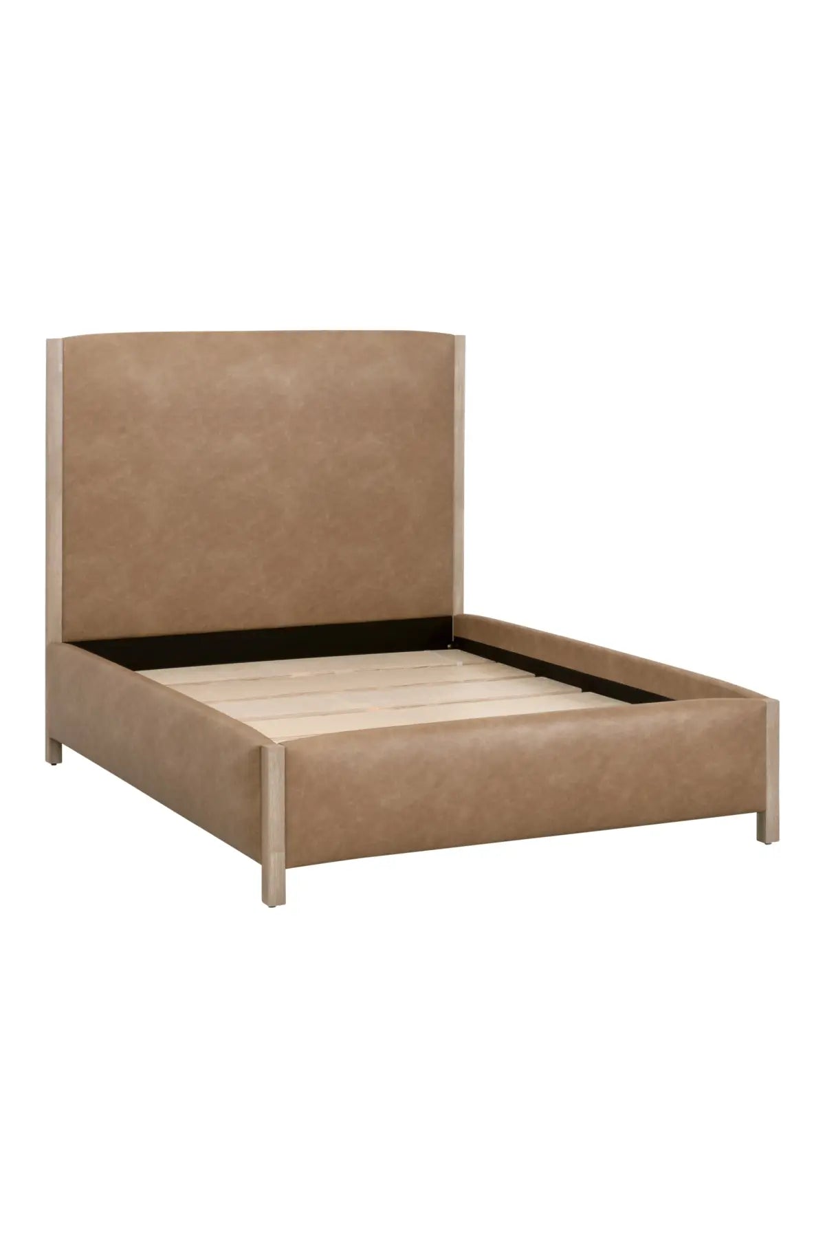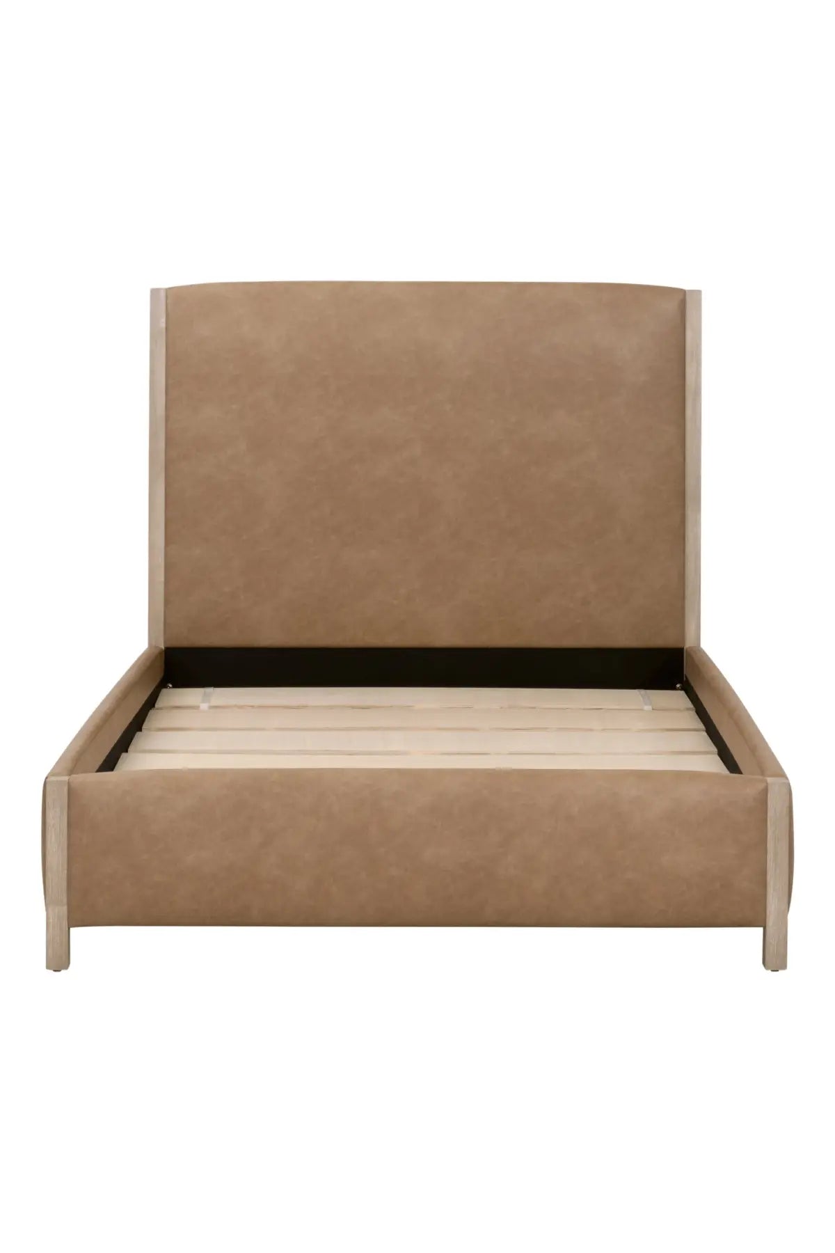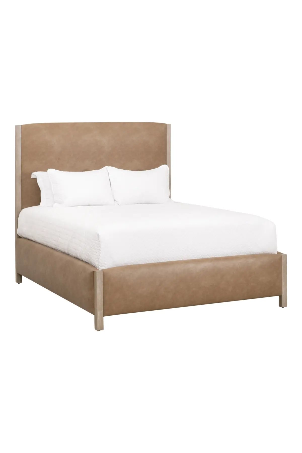 Meet the Emmett Bed. Transform your bedroom with this elegant bed, crafted with a sturdy frame. The headboard and rails are upholstered in durable high performance fabric or vegan leather. Comfortable foam cushioning provides exceptional support and timeless design. Slats included.