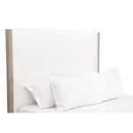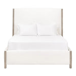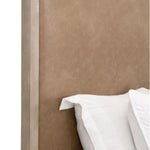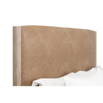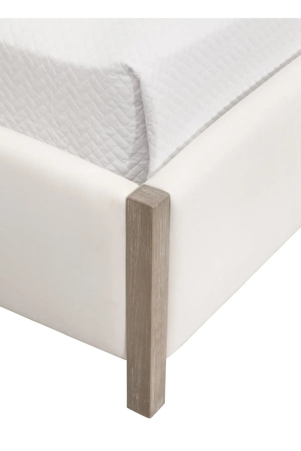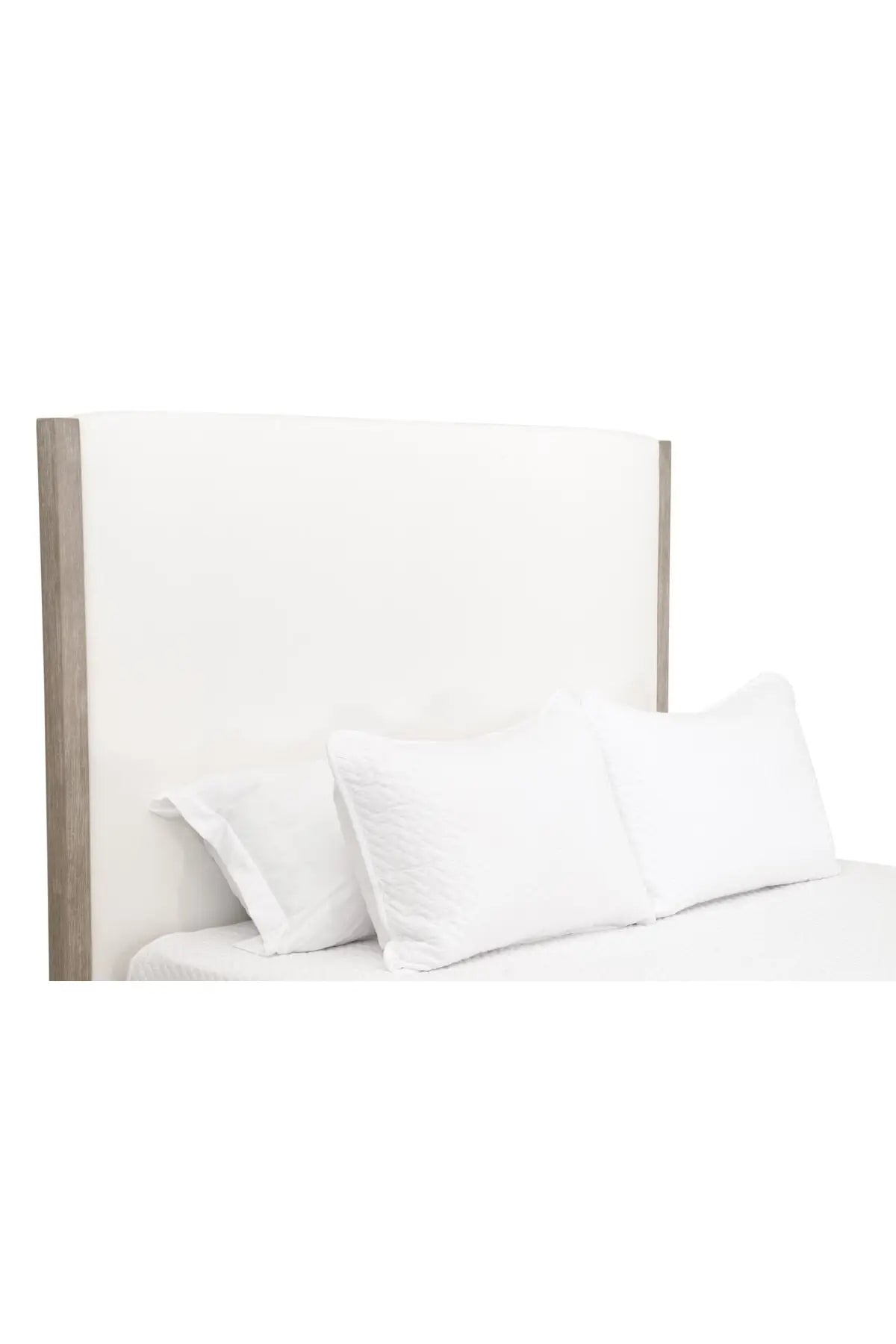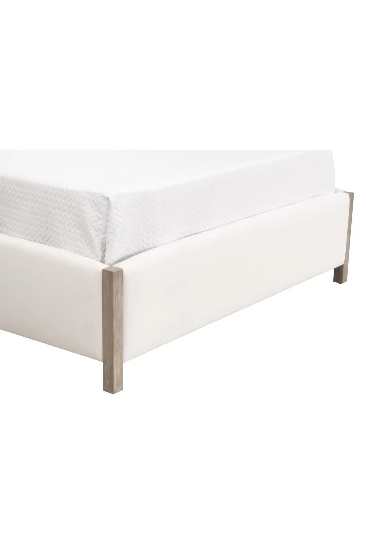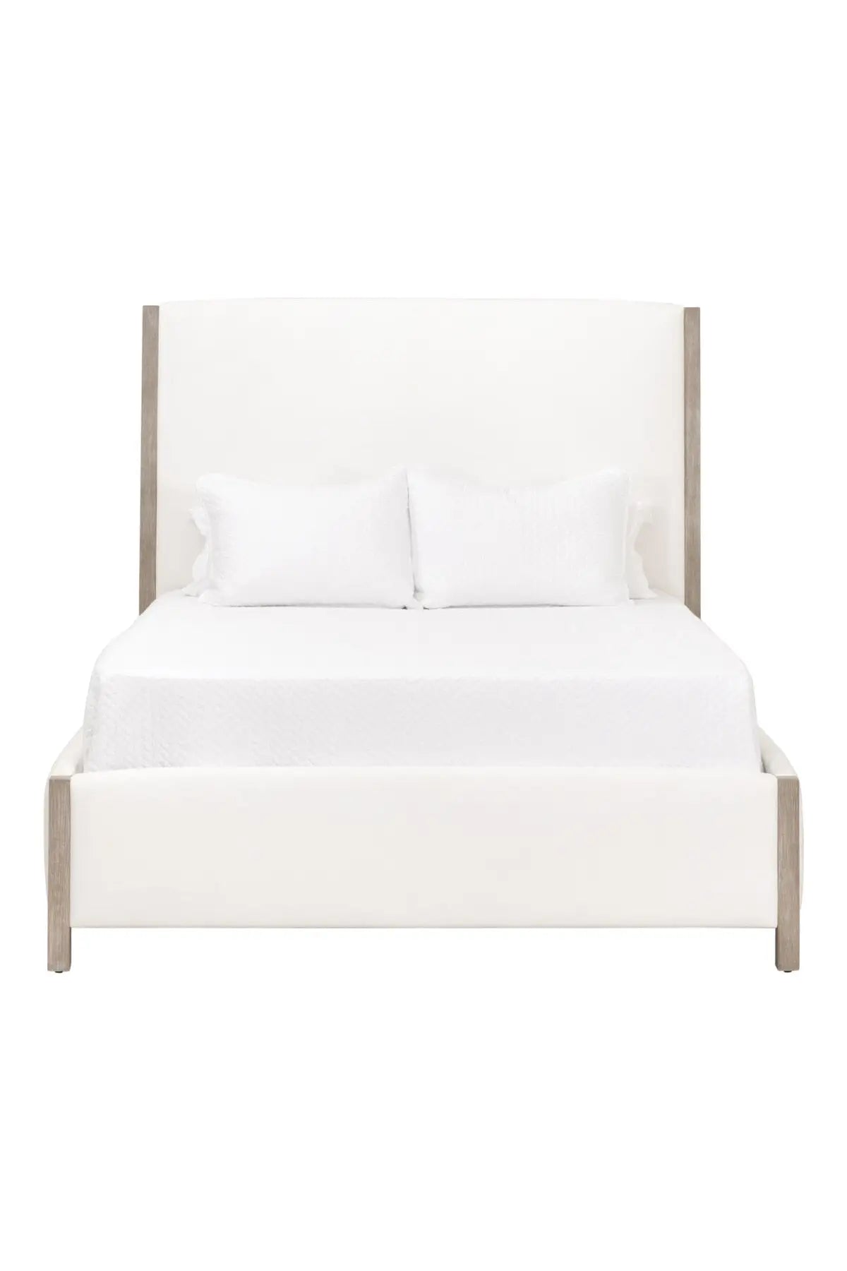 Meet the Emmett Bed. Transform your bedroom with this elegant bed, crafted with a sturdy frame. The headboard and rails are upholstered in durable high performance fabric or vegan leather. Comfortable foam cushioning provides exceptional support and timeless design. Slats included.