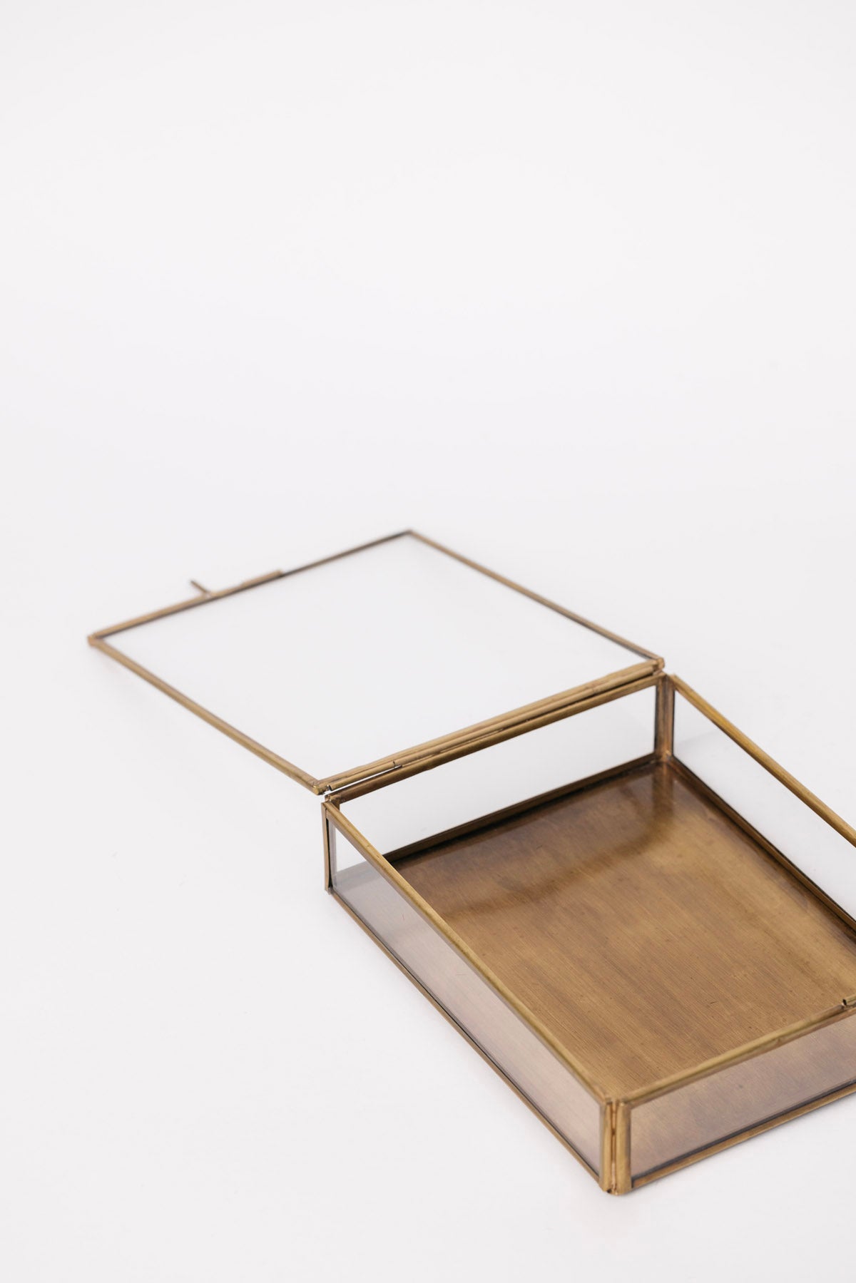 We love a display box + this beauty is a new favorite! Glass + gold for a subtle, but striking element. This is perfect for a nightstand, to hold your essentials, or styled atop a shelf for a luxurious addition.