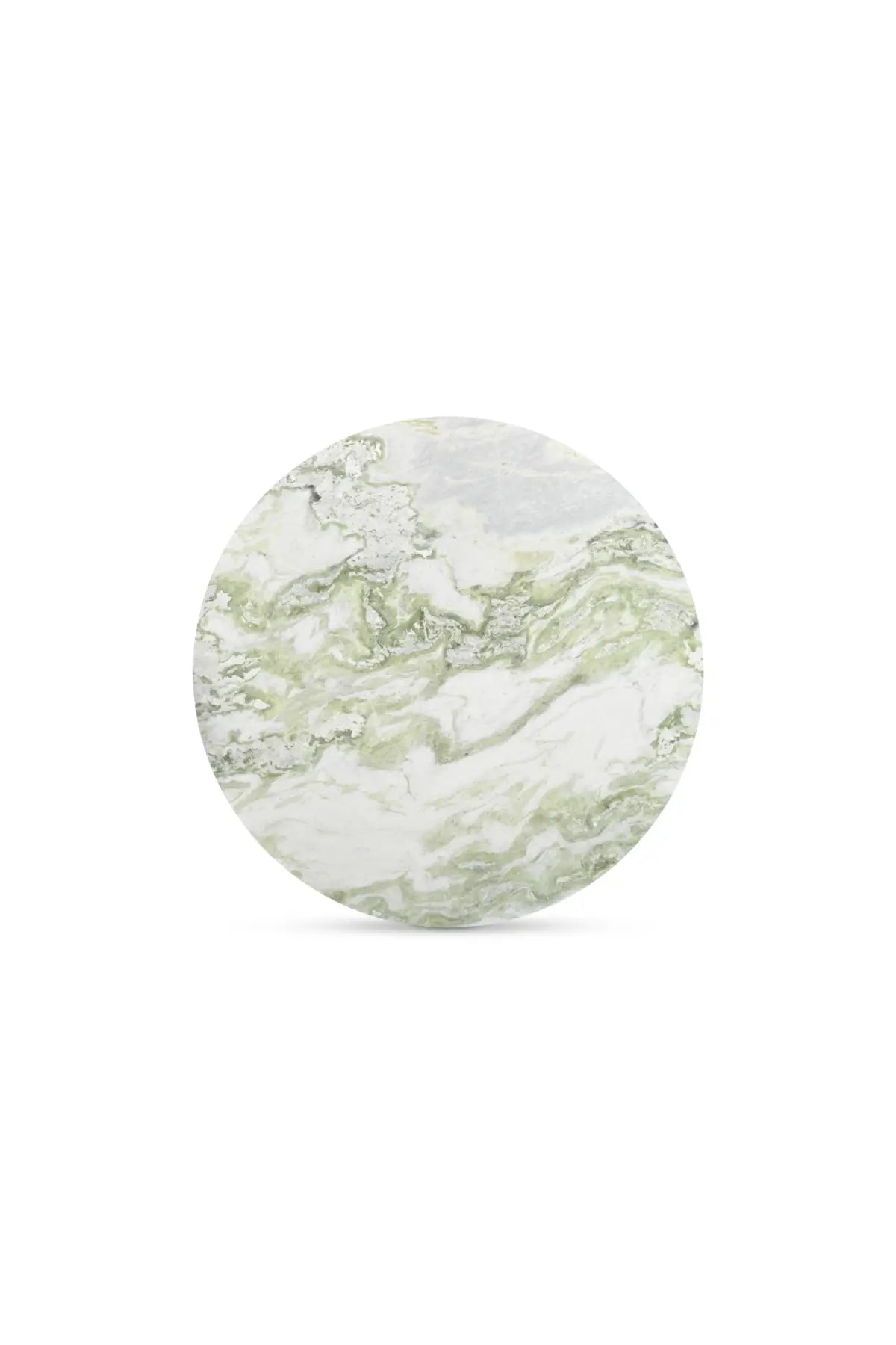 Dimensions: 20" W x 20" D x 20" HMaterials: Green Onyx Marble Top, Solid Oak Wood, MDF
