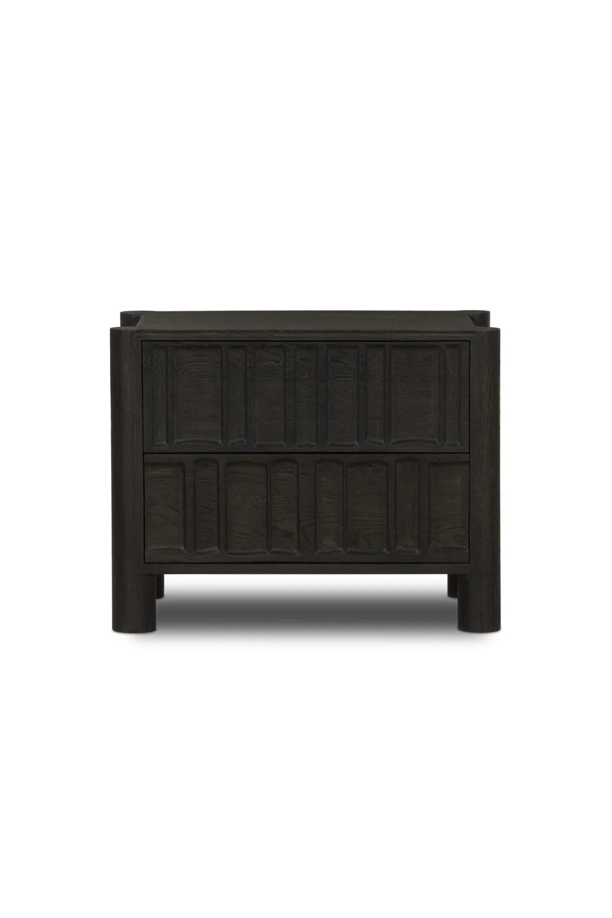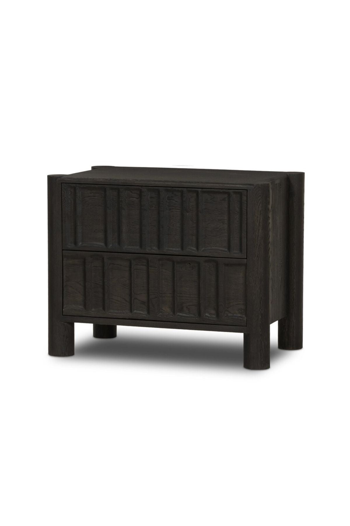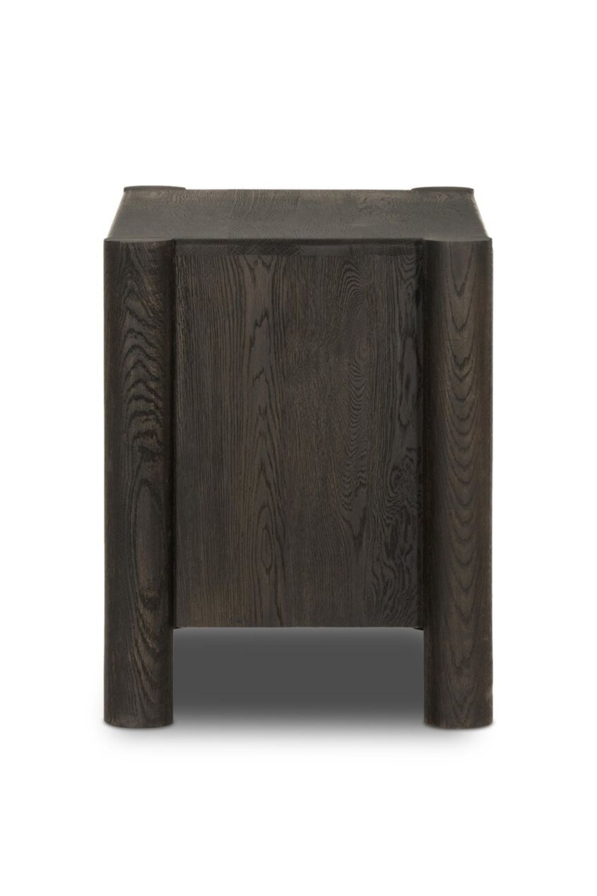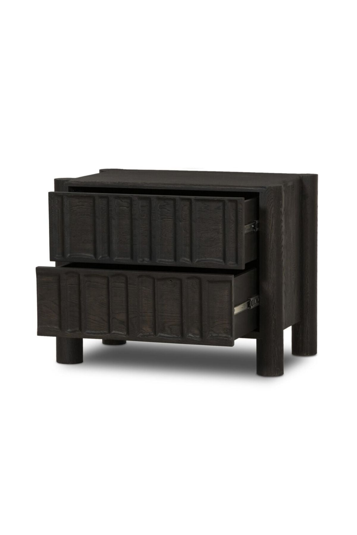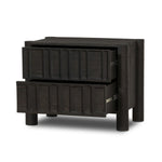 Meet the Ezri Nightstand. Solid acacia shapes a streamlined box-style nightstand, with lap joint corners for a detail-driven touch. Finished with smooth, push-latch drawer glides.