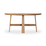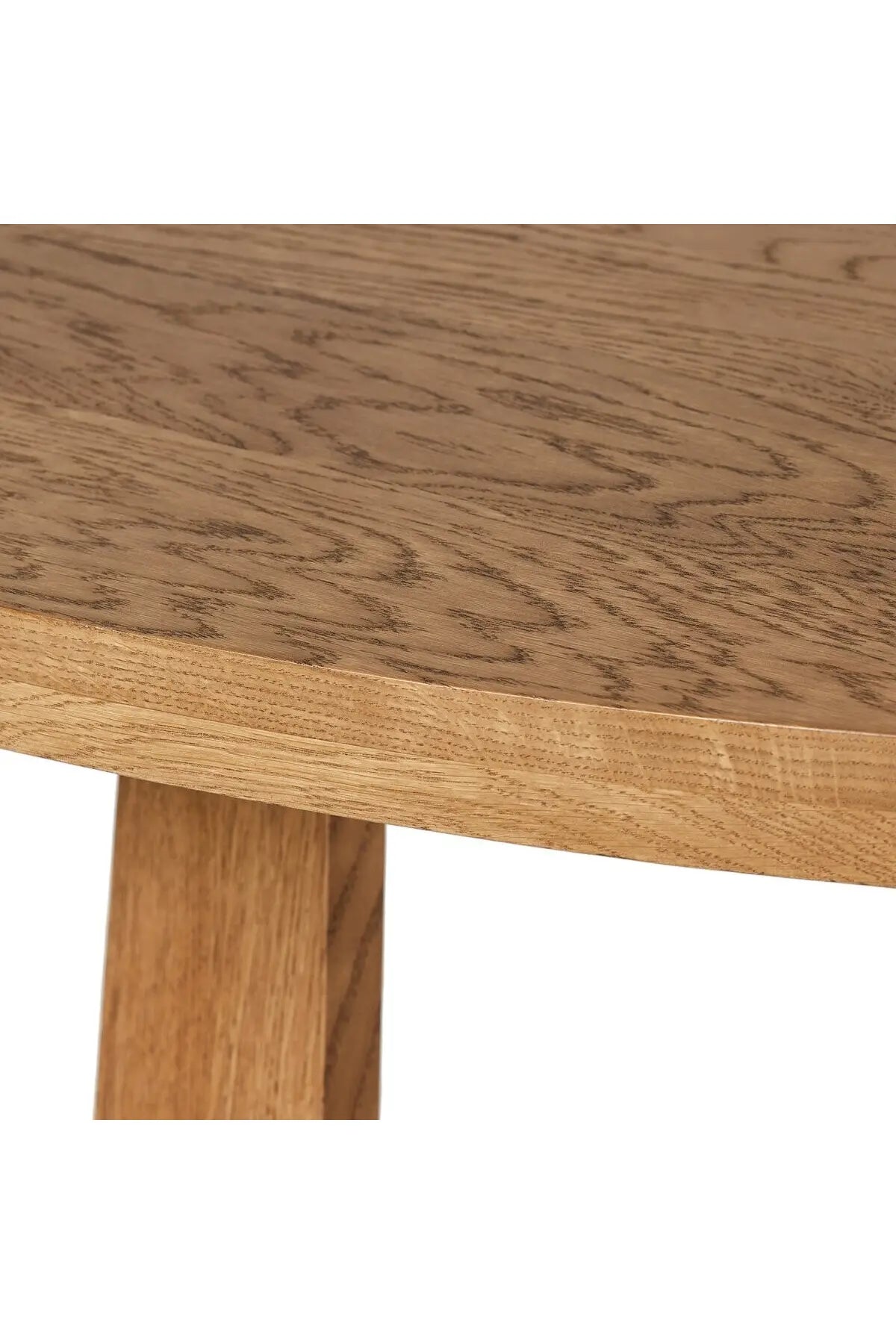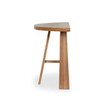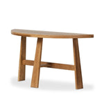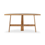 Meet the Fara Console TableMade from light brown oak, a tripod base supports a uniquely shaped tabletop for a look that feels both simple and artistic.