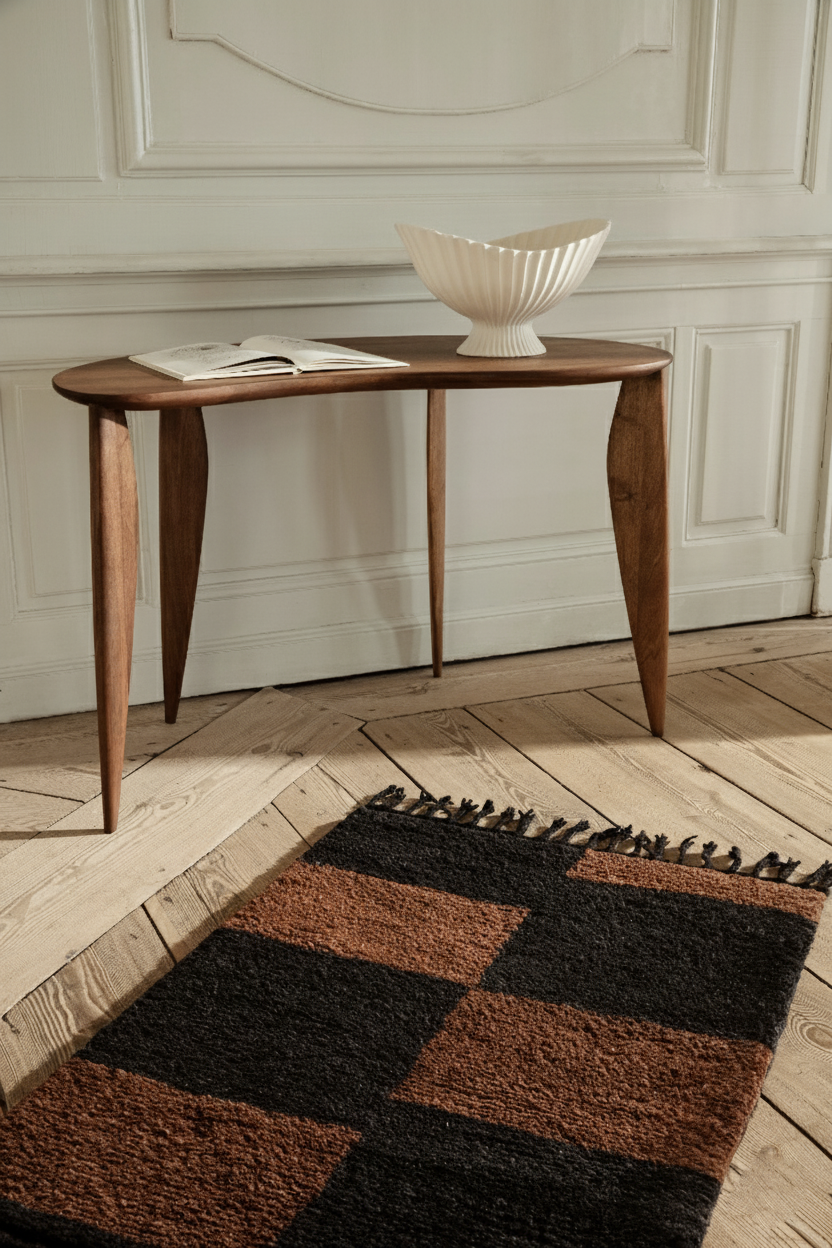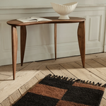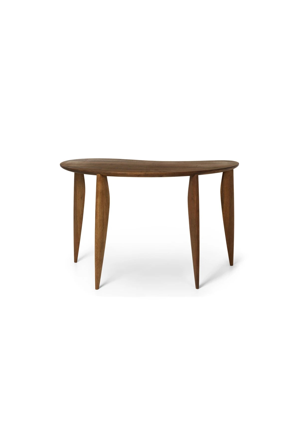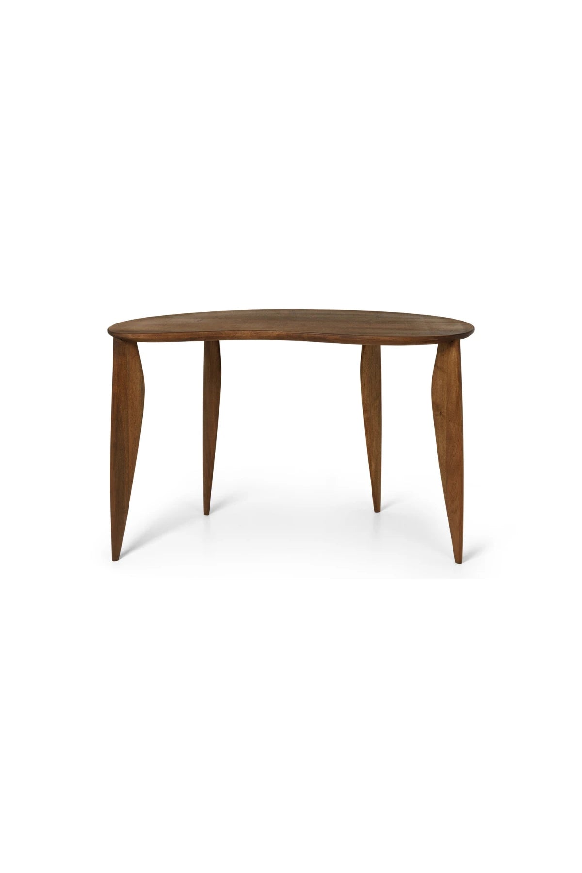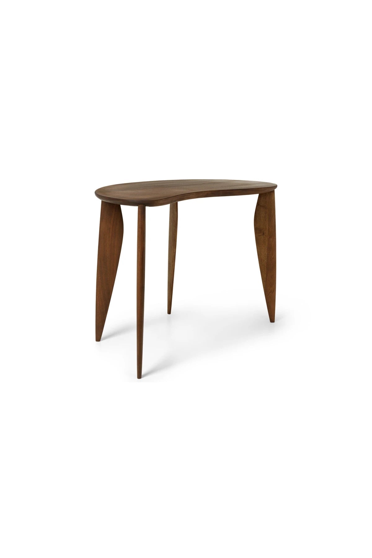 Meet the Feve Desk. Crafted from solid FSC™-certified European Walnut, the Feve Desk features smooth, bean-shaped legs that create an elegant and balanced design. Its delicate form adds a refined, feminine touch to any workspace.