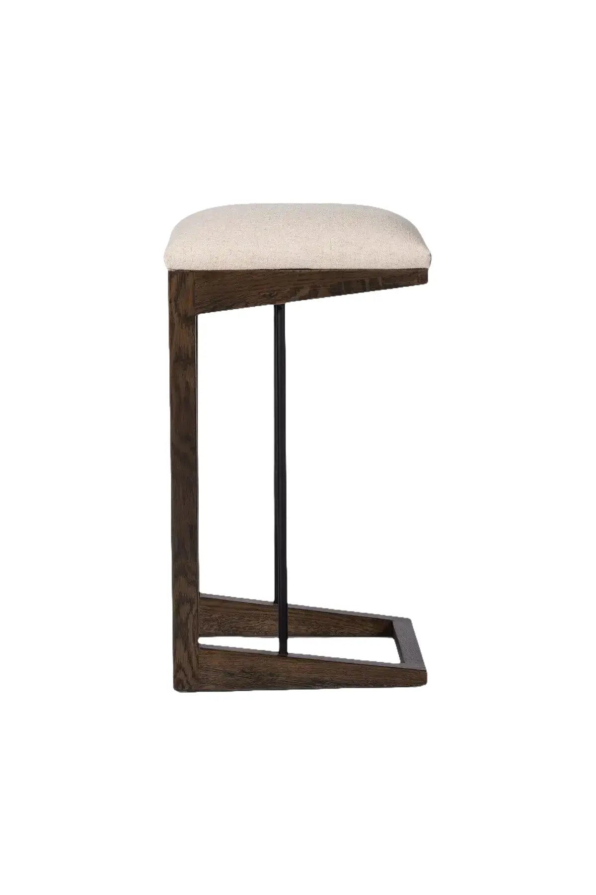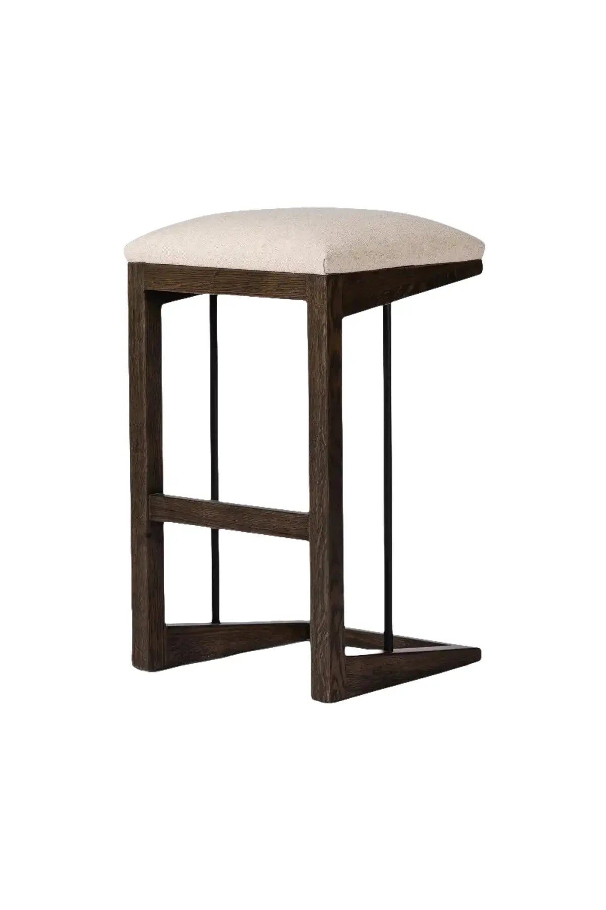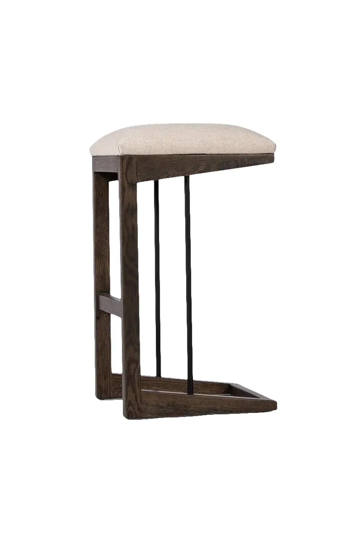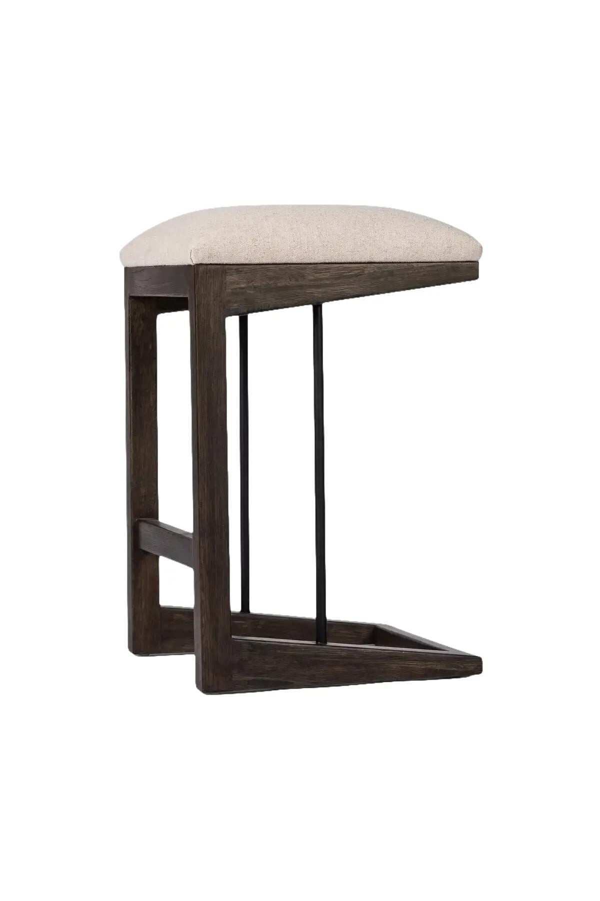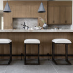 Meet the Finn Bar + Counter Stool. A stunner from every angle, this architecturally inspired stool features an angular base crafted from solid oak with two iron rods for added support + visual interest. Seat is upholstered in a linen/cotton/poly blend performance fabric with subtle texture throughout. Performance fabrics are specially created to withstand spills, stains, high traffic and wear, ensuring long-term comfort + unmatched durability.