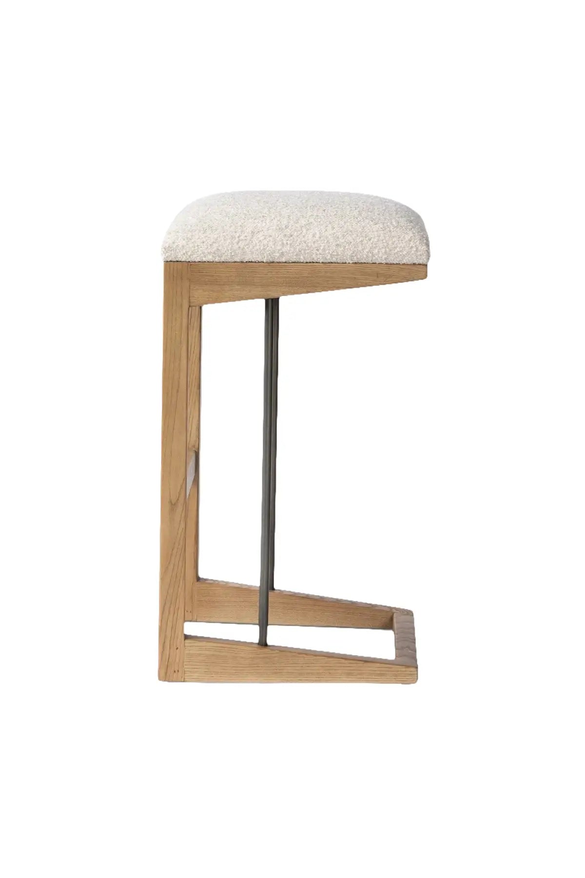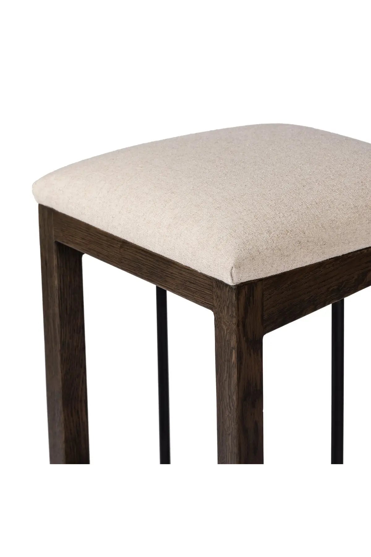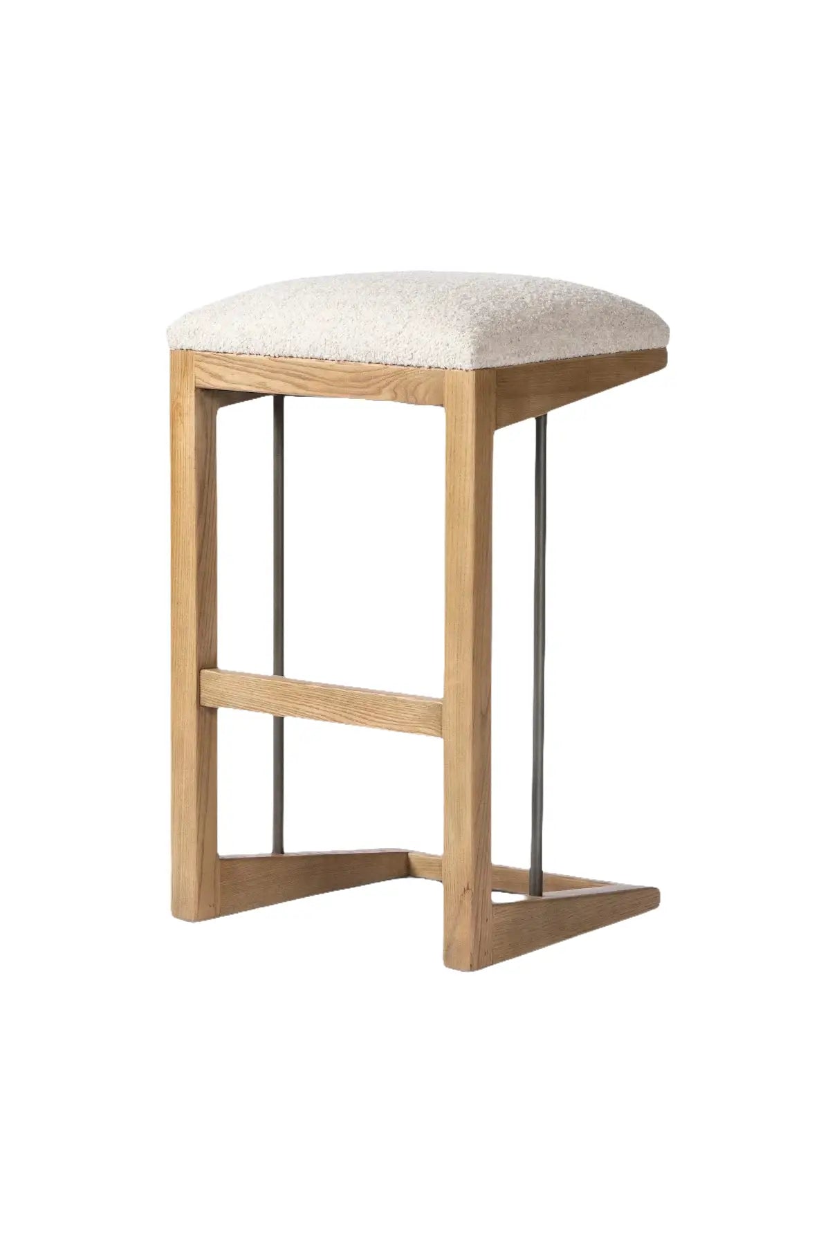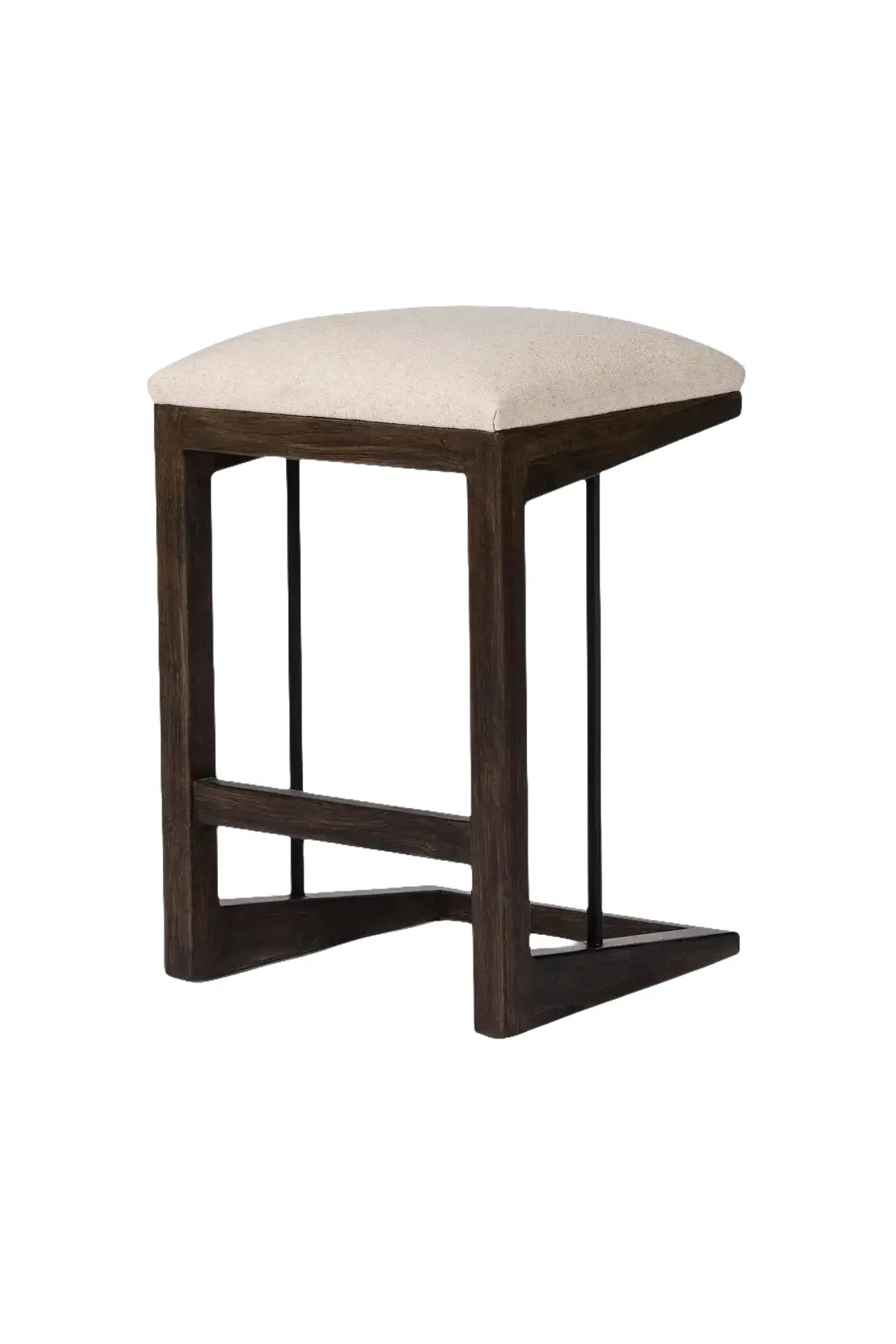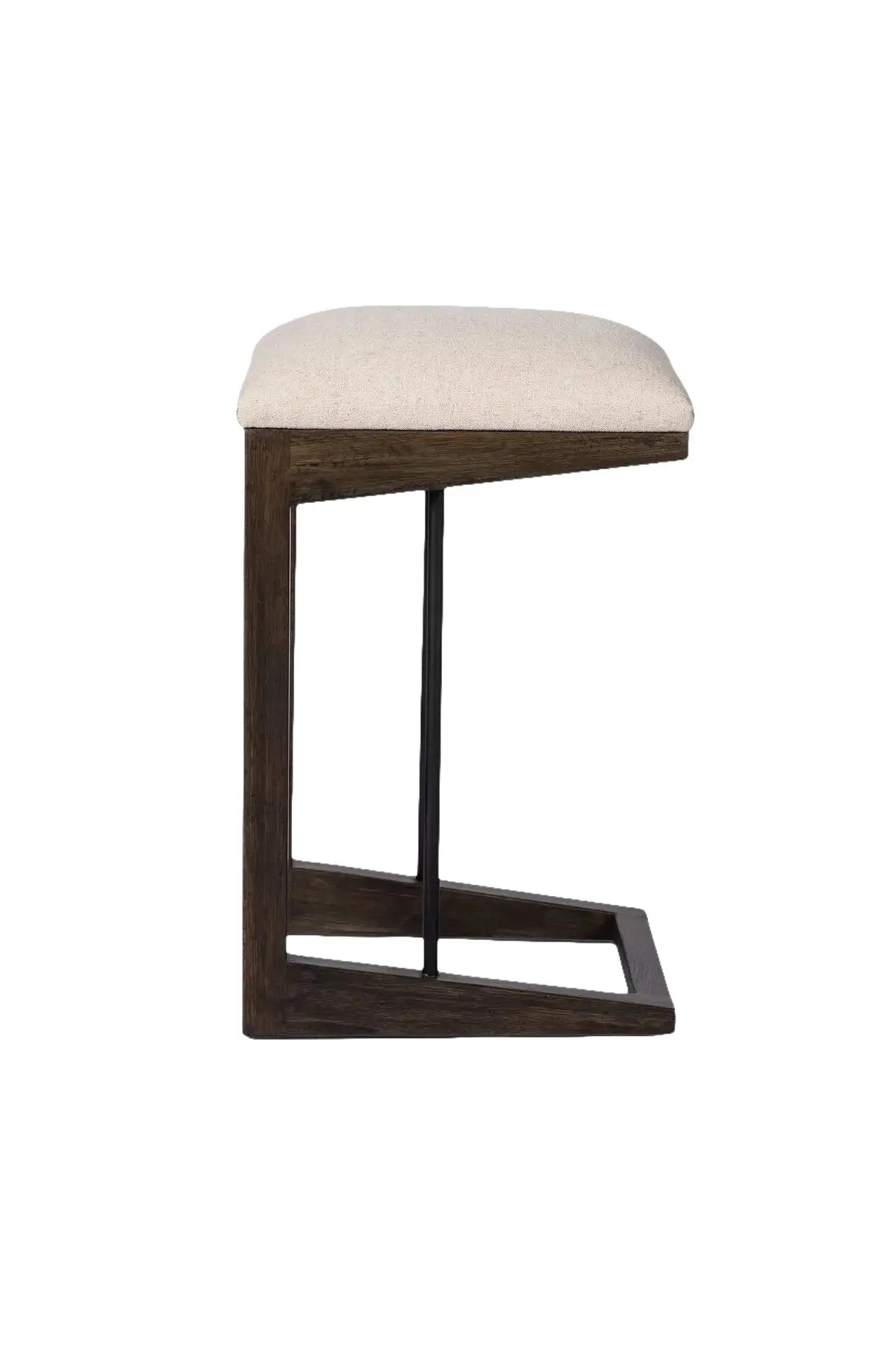 Meet the Finn Bar + Counter Stool. A stunner from every angle, this architecturally inspired stool features an angular base crafted from solid oak with two iron rods for added support + visual interest. Seat is upholstered in a linen/cotton/poly blend performance fabric with subtle texture throughout. Performance fabrics are specially created to withstand spills, stains, high traffic and wear, ensuring long-term comfort + unmatched durability.