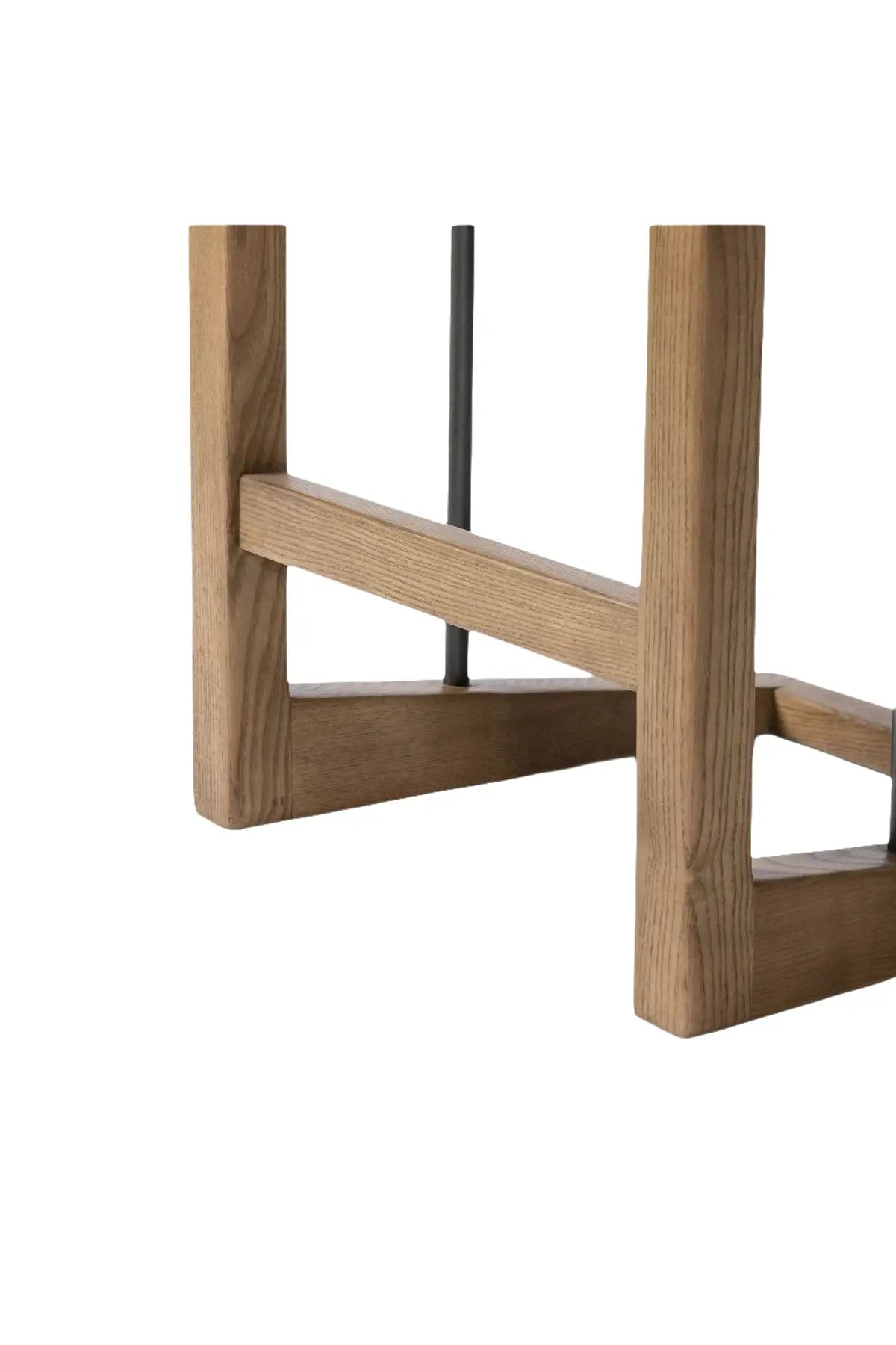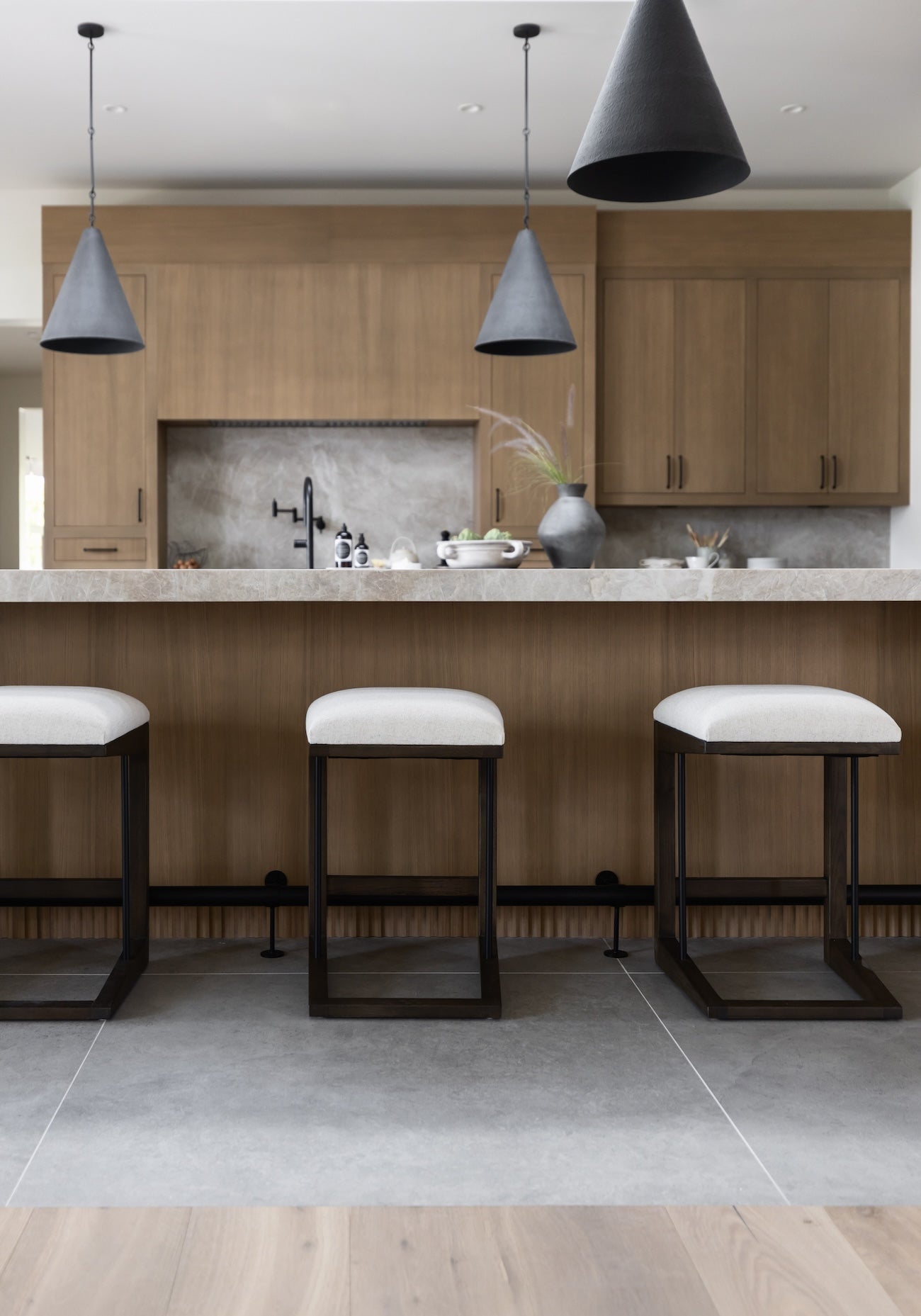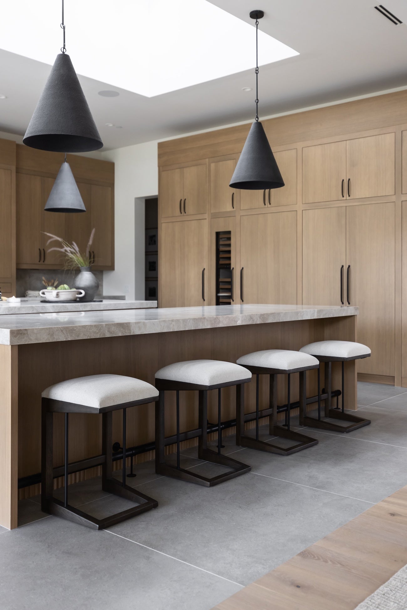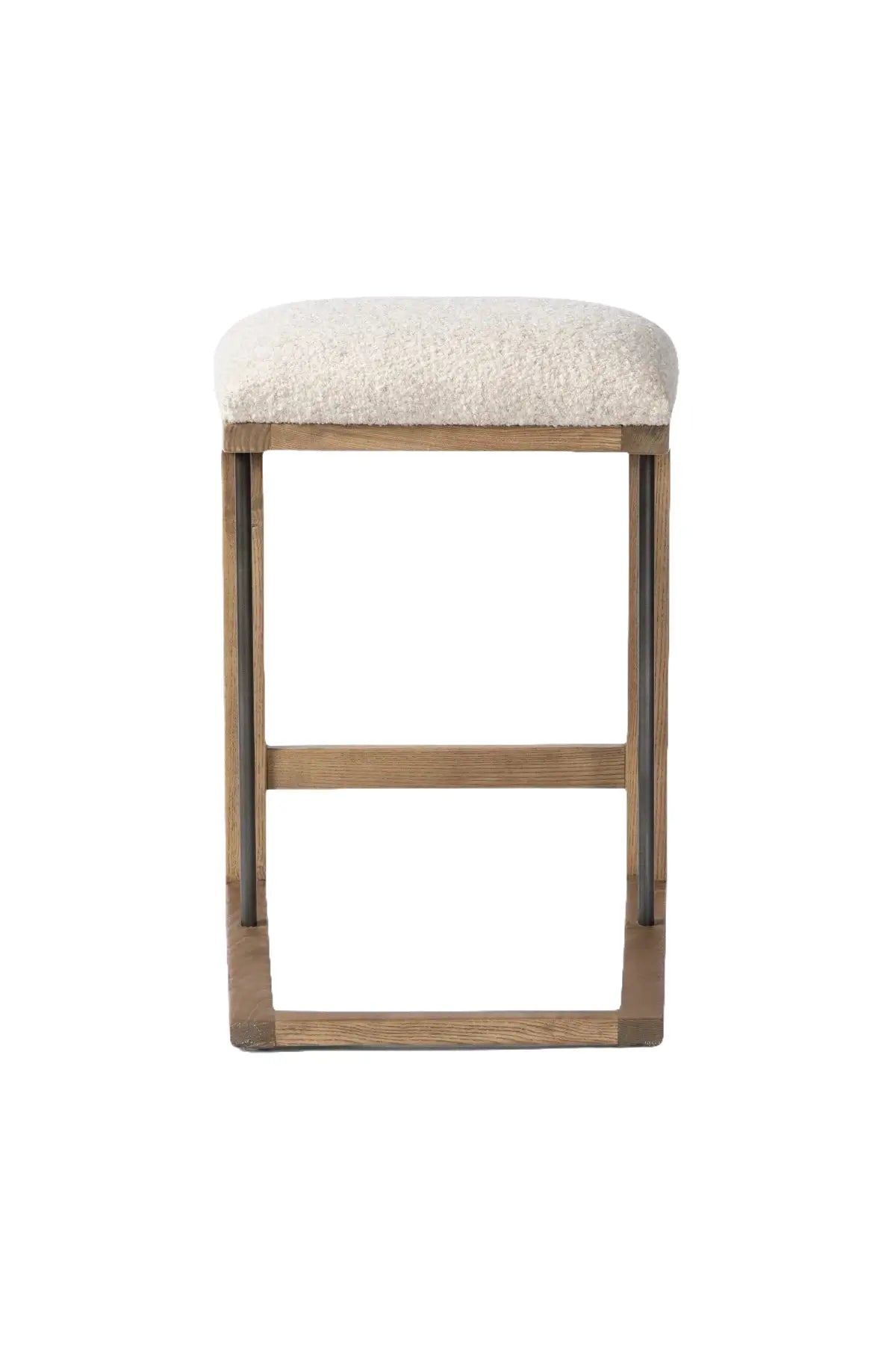 Meet the Finn Bar + Counter Stool. A stunner from every angle, this architecturally inspired stool features an angular base crafted from solid oak with two iron rods for added support + visual interest. Seat is upholstered in a linen/cotton/poly blend performance fabric with subtle texture throughout. Performance fabrics are specially created to withstand spills, stains, high traffic and wear, ensuring long-term comfort + unmatched durability.